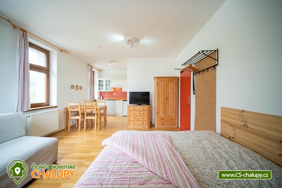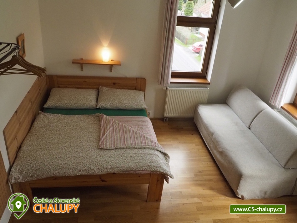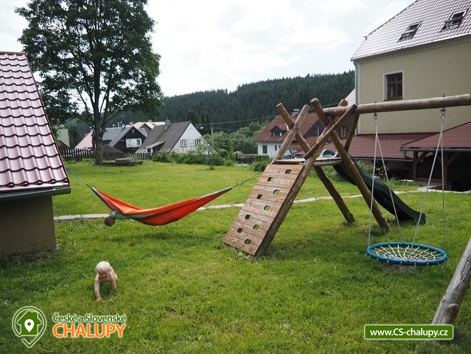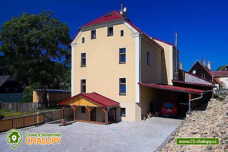 Rodinná chalupa se saunou nedaleko areálu Plešivec - Krušné hory. Chalupa s apartmány nabízí ubytování pro až 24 osob v 6 apartmánech s vlastní kuchyní a koupelnou. Objekt se pronajímá jako celek 1 skupině klientů, v případně menšího množství klientů je možnost pronájmu i jednotlivých apartmánů. V chalupě je celkem 6 apartmánů (každý pro 4 osoby), které jsou vybaveny: dvoulůžkem, rozkládacím dvoulůžkem, kuchyní s myčkou, mikrovlnkou, sklokeramickou varnou deskou, lednicí a nádobím, koupelnou s WC, TV/SAT a WiFi internetem. Možnost vaření na pokojích i ve společenské místnosti. V obci se nachází 4 restaurace. Ve společenské místnosti je k dispozici prostorná kuchyň s myčkou, troubou, mikrovlnou troubou, lednicí a nádobím pro 24 osob. Chalupa je vytápěna centrálním plynovým topením a kamny ve společenské místnosti. V objektu je celkem 6 sociálních zařízení na jednotlivých pokojích a WC ve společenské místnosti. Příjezd k objektu je z hlavní silnice, parkování je možné na oploceném parkovišti. Dále je k dispozici úschovna kol a lyžárna se sušákem na boty. U chalupy je prostorná zahrada s dětským hřištěm a pergolou s grilem. Sauna se nachází v přístavbě objektu a je možné ji pronajmout za poplatek. Sjezdovka je vzdálená 300 metrů od chaty, běžkařské stopy také 300 metrů. V bezprostřední blízkosti je Skiareál Plešivec a Klínovec. Po dni na lyžích, na kole nebo v některé z okolních UNESCO památek, můžete relaxovat v sauně nebo ve velké zahradě v houpací síti. V blízkosti chaty jsou štoly a muzea věnující se Krušným horám: výroba hraček, těžba apod.
