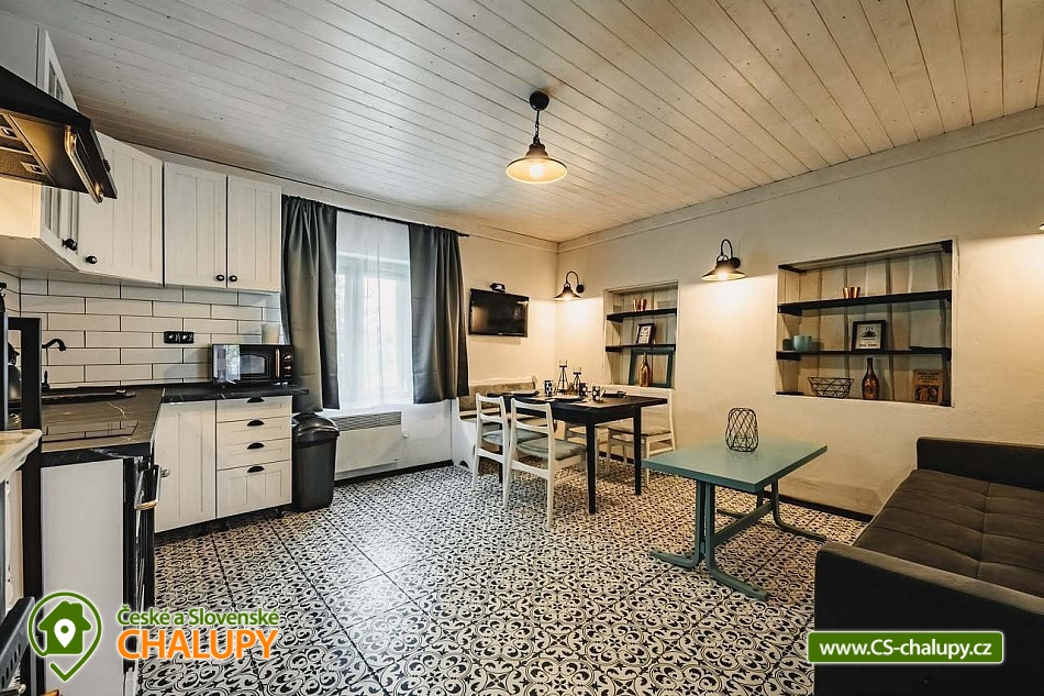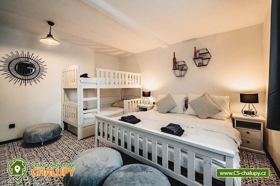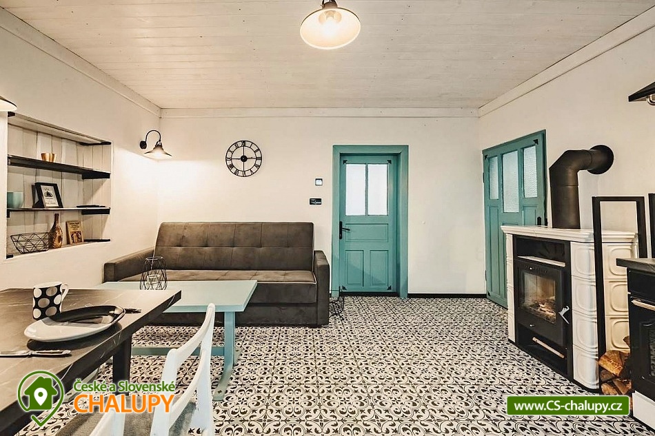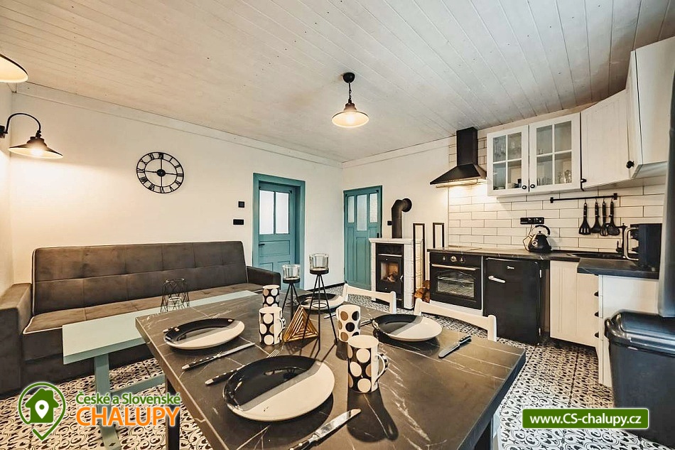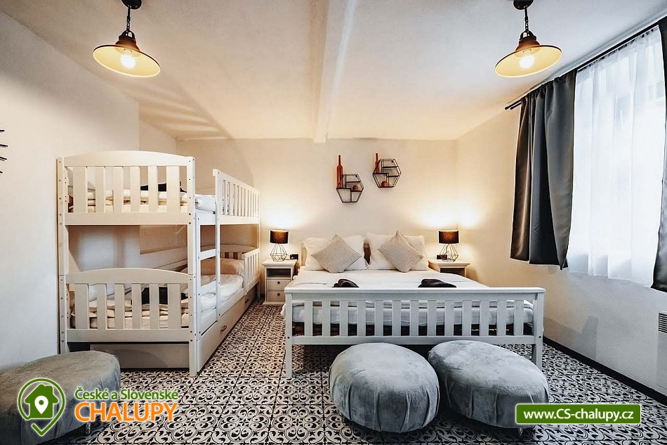 The renovated and stylishly furnished Cottage Na Kovárně 16 is located in the village of Sedlečko near Soběslav, 20 km from the town of Tábor. The cottage is an ideal place for relaxation and plenty of privacy, as well as a great base for trips around picturesque southern Bohemia, whether you travel on foot, by bike or by car. Cottage Na Kovárně 16 offers accommodation for 6 people in 2 bedrooms. There is one large four-bed bedroom with double and bunk beds and a TV, and one smaller double bedroom with a double bed. A living room with a fireplace, a sofa set and a TV and a dining table for 6 people is used for shared moments. The room also includes a fully equipped kitchen (hob, hood, oven, fridge and kettle). The social facilities include one bathroom with a bathtub and a toilet. Heating is provided by a fireplace in the living room and electric direct heaters located in each room. WIFI internet connection is available throughout the building. In the fenced garden you can spend free time on the terrace with seating. A grill is available. Children will appreciate the climbing frames. You can park directly at the building. In the vicinity of the building, hiking, cycling, swimming, mushroom picking and fishing are possible. There are tennis courts nearby. Swimming options include, for example: Soběslav swimming pool, Roudná sand pit, Roudná sand pit, Karvánky sand pit, Za Řekou swimming pool, Rytíř pond, Pohoda swimming pool, Vlkovské sand pits, Velký Řečický pond, Knížecí pond, Tábor swimming pool, Tábor pool, etc. For trips in the surroundings attract the historical center of Tábor and ZOO Tábor, Červená Lhota Castle, Choustník Castle Ruins, Čermákův vrch u Krátošice Lookout, Goat Castle Ruins, Stádleck Chain Bridge - Stádlec, Chýnovská Jeskyně - Chýnov, Jindřichův Hradec Narrow Gauge Railway - Jindřichův Hradec, Jindřichův Hradec Castle, Bechyně Castle and others. We look forward to seeing you here.