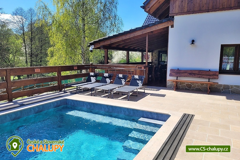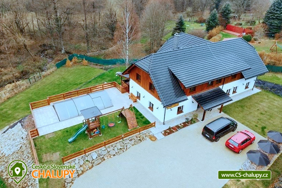 Rodinná wellness chalupa s bazénem se nachází v obci Červený Potok u města Králíky, nedaleko střediska Dolní Morava s adrenalinovými atrakcemi jako je bobová dráha, Dětský park Amálka, Mamutí horská dráha a Stezku korunami stromů.