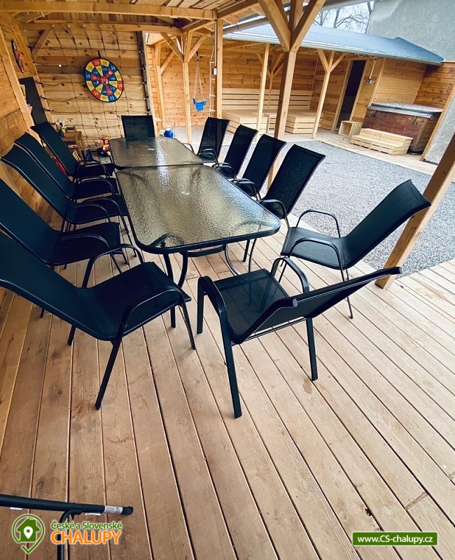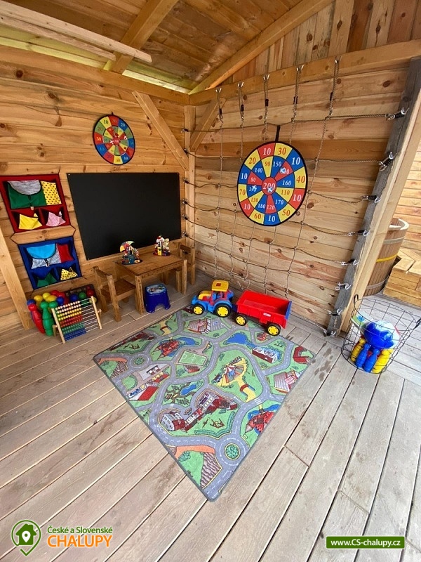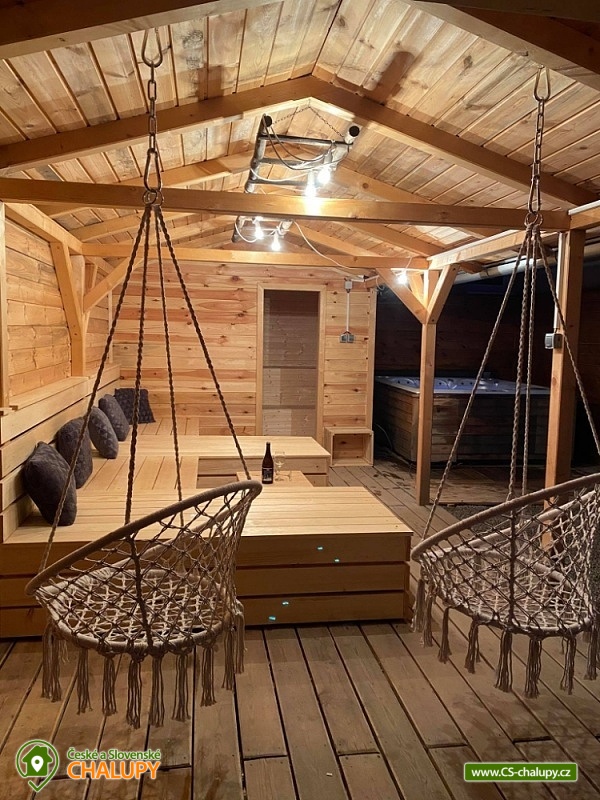 Rodinná Wellness chalupa s bazénem - Podorlicko (vířivka, sauna, koupací sud a venkovní bazén s možností vyhřívání). Hledáte aktivní dovolenou i wellness? Vše u nás najdete na jednou místě, ubytování je možné celoročně. Chalupa k pronájmu poskytuje ubytování pro až 14 osob ve 3 ložnicích a nachází v kopcovité oblasti Podorlické pahorkatiny. V prvním podlaží se nachází ložnice s pěti lůžky, koupelna a kuchyň s obývacím pokojem, který slouží jako společenská místnost. Kuchyň je vybavena lednicí s mrazákem, sporák se sklokeramickou deskou a troubou, myčka na nádobí, kávovar, mikrovlnná trouba, varná konvice a elektrický gril. Ve druhém podlaží se nachází koupelna, ložnice se čtyřmi lůžky a ložnice s pěti lůžka a dětskou postýlkou. K dispozici technická místnost a místnost na uložení kol, lyží atd. Přímo na objekt navazuje krásná terasa. V jedné části najdete masážní vířivku pro 5-6 osob, saunu pro 5 osob, mokrou saunu pro 4-5 osob (koupací dřevěná káď vyhřívaná dřevem - dřevo je zdarma), houpací křesla a dřevěné posezení. V druhé části najdete gril, posezení a dětský koutek. Na rozlehlé zahradě se nachází udírna, ohniště, venkovní bazén , lehátka, trampolína, dětský domeček se skluzavkou, houpačky, pískoviště, stolní tenis, fotbalové branky. Objekt je oplocen a je vhodný i pro pracovní pobyty. Aktivit, které nabízí přímo malebná vesnička je mnoho. Cykloturistika, turistika, golf, wellness, houbaření, inline bruslení, (led - zima), venkovní i halové sporty. Kousek od objektu (730m) se nachází osmnáctijamkové golfové hřiště, které je citlivě vsazené do krajiny a nerušící její ráz. Další devítijamkové hřiště se nachází na okraji vesnice (4 km). Při nepříznivém počasí je možné zapůjčit Víceúčelovou sportovní halu (1km), která je určena ke sportovnímu vyžití. Využít ji můžete pro florbal, tenis, volejbal, házená, basketbal, sálový fotbal a další halové sporty. Uprostřed sportovního areálu (1km) v Dolní Dobrouči se nachází fotbalové hřiště, tenisový areál skládající se z tří tenisových dvorců a tréninkové stěny. Na okraji obce vede cyklostezka a inline království (40km dlouhá inline stezka). Cyklotrasa vede hned od objektu, která Vás navede na cyklostezku a IN LINE stezku. V okolí je více jak 400km značených cyklostezek a hustá síť turistických tras.