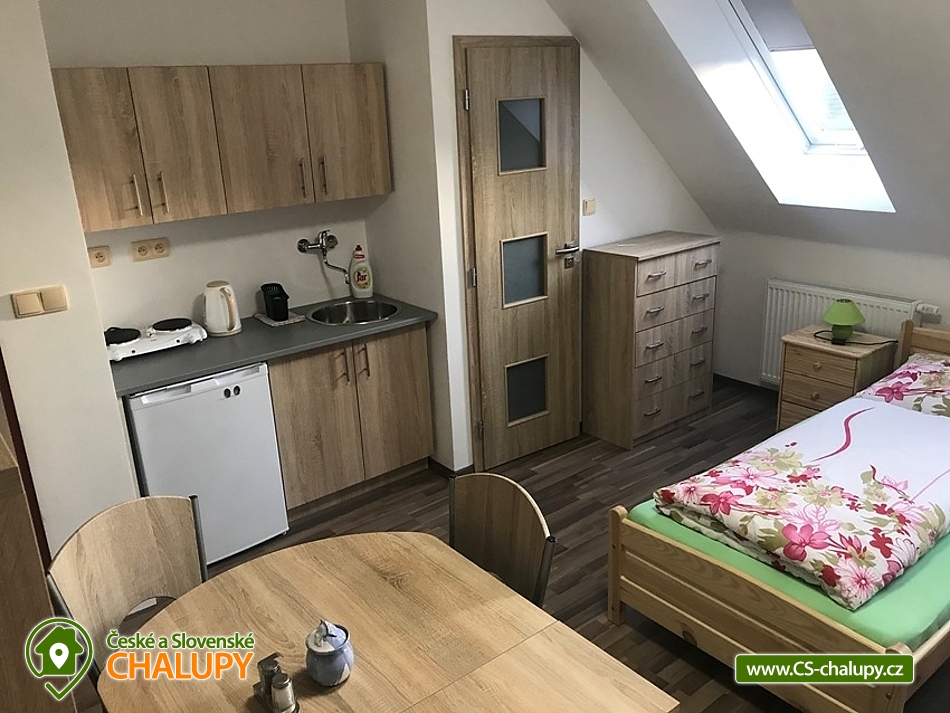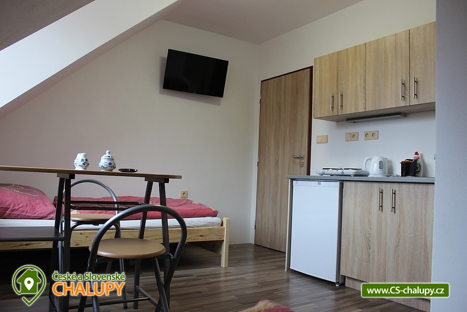 Rodinný penzion s bazénem nedaleko aquaparku Žamberk. Penzion Vám nabízí ubytování apartmánového typu s vlastním chodem (1 x apartmán a 4 x bytové studio, vše s vlastní kuchyňkou a vlastním sociálním zařízení na pokoji, odhlučněné pokoje), ubytování cca 2 km od města Žamberk v podhůří Orlických hor. K relaxaci a odpočinku můžete využít i finskou saunu, která je v provozu říjen až březen, nebo naopak parní lázeň přímo v objektu, venkovní posezení, zahradní prostory, rybaření v řece hned u penzionu. Zahrada penzionu nabízí sportovní vyžití, prolézačky, v letních měsících je k dispozici zahradní nadzemní bazén a na večer je možné si zapálit oheň a na gril hodit něco dobrého. POPIS UBYTOVÁNÍ: Apartmán (5 osob) - 2 obytné pokoje, vybavená kuchyňka s jídelnou, koupelna, WC, vlastní vchod, internet - WiFi. Bytové studio č.1 (6 osob) - obytný pokoj, vybavená kuchyňka s jídelnou, vlastní koupelna, WC, vlastní vchod, balkón s posezením, internet - WiFi. Bytové studio č.2 (2 osoby) - obytný pokoj, vybavená kuchyňka s jídelnou, vlastní koupelna, WC, vlastní vchod, internet - WiFi. Bytové studio č.3 (2 osoby) - obytný pokoj, vybavená kuchyňka s jídelnou, vlastní koupelna, WC, vlastní vchod, internet - WiFi. Bytové studio č.4 (3 osoby) - obytný pokoj, vybavená kuchyňka s jídelnou, vlastní koupelna, WC, vlastní vchod, internet - WiFi. Parkování Vašich vozidel je zajištěno přímo v areálu v penzionu. V okolí doporučujeme navštívit: kulturní památky - Zámek Častolovice, Hrad Potštejn, Zámek Letohrad, Hrad Litice. Dále aquapark v Žamberku nebo koupaliště v Písečné, tenisové kurty, či golfové odpaliště. Můžeme Vám domluvit jízdu na koních nebo vyhlídkový let nad krásným okolím s Pastvinskou přehradou. Těšíme se na Vás.