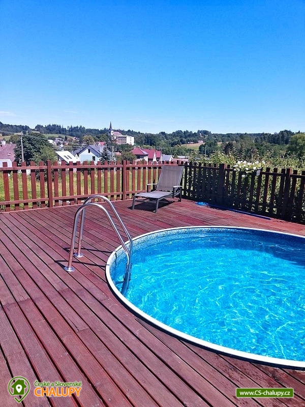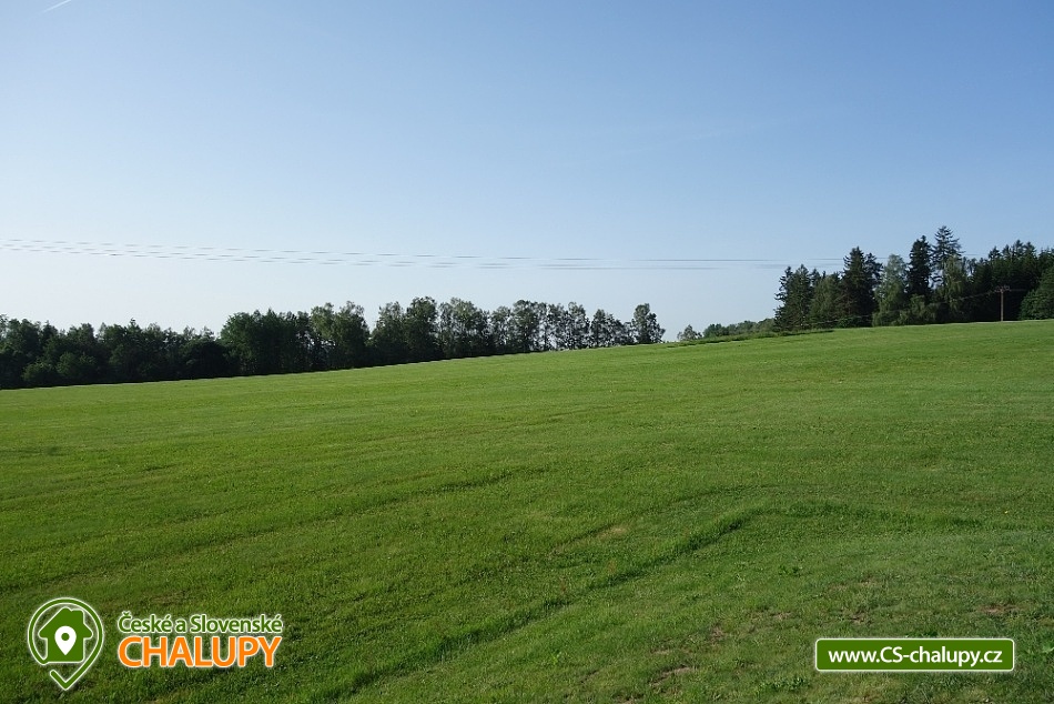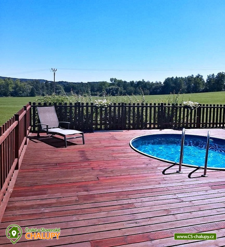 Cottage Trhovka - Trhová Kamenice - Iron Mountains - Highlands. New spacious and luxuriously furnished cottage is situated in the protected landscape area Železné hory on the edge of Trhová Kamenice. The cottage offers accommodation for 9 people in 3 bedrooms. 1 bedroom on the ground floor with three beds (this bedroom has a dressing room and bought with hydromassage bath), 2 bedrooms on the first floor - each for 3 people. Cot or extra bed is possible in each bedroom by agreement. Own kitchen - fully equipped with both electrical appliances (ceramic hob, oven, dishwasher, microwave, kettle, coffee maker). Large living dining room offers a pleasant sitting by the fireplace or TV. This room has access to a spacious sunny terrace with a seating area and beautiful views of the surrounding countryside. Upstairs is the second living room with billiards. The surrounding plot is partially fenced with grass. For the youngest you can use a sandpit or swing. The bathroom on the ground floor is a walk-through from the bedroom (shower, hydromassage bath, sink, toilet, bidet, underfloor heating), in the corridor 2nd toilet with sink. Upstairs is 2nd bathroom (shower, sink, toilet, floor heating). Electric heating, floor heating - ground floor, bathrooms. Fireplace - heats the whole cottage. The cottage can be reached on a year-round road in the direction of Hluboká. Parking directly at the cottage for 5 cars. The driveway is maintained in winter. Our cottage is an ideal place for those who want to spend an active holiday with every comfort. The surrounding area offers many leisure activities. Such as hiking (mushroom picking in the nearby forest, open-air museum Veselý kopec), cycling (many cycling paths for the less advanced), golf (Golf & Country Club Svobodné Hamry 2 km, Golf Club Svratka 21 km), ski (Trhová Kamenice 200 m, Hluboká 2 km, Hlinsko 6 km) or swimming (natural flooded quarries 2 km, Upper Bradlo - swimming pool 4 km, Hlinsko - swimming area 6 km).