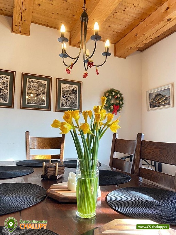 Roubená chalupa Krkonoše pro až 10 osob se nachází v klidné části Podhůří - Vrchlabí s výhledem na panoramata Krkonoš, pole a lesy. Má velkou zahradu (cca 1.600 m2) s terasou a zahradním nábytkem. K dispozici je Vám i gril. Jedná se o typické Krkonošské ubytování, které Vám poskytne absolutní soukromí. V přízemí se nachází obývací pokoj s Tv a krbem, plnohodnotně vybavená kuchyň s jídelnou. Ložnice s koupelnou s vanou, sprchou, WC a pračkou. Kuchyně je vybavena myčkou, troubou, mikrovlnnou troubou, lednicí / mrazničkou, kávovarem, rychlovarnou konvicí. V prvním patře jsou dvě dvoulůžkové, jedna jednolůžková a třílůžková ložnice. Koupelna s vanou a sprchou , samostatné WC. V ceně ubytování je zahrnuto ložní prádlo. Malebné horské město Vrchlabí je právem nazýváno „Bránou Krkonoš“. Nachází se v nadmořské výšce 477 metrů a je ideálním východiskem do nejvyšších českých hor. V zimě je tu pro Vás nachystané množství upravených sjezdových a běžeckých tratí, v létě cyklotras a turistických cest. Do nejatraktivnějších míst Krkonoš vás snadno dopraví Krkonošské cyklobusy. Za krásami Vrchlabí se vydejte nenáročnou naučnou stezkou. Po 2 km dlouhé stezce projdete srdcem města kolem nejstaršího Vrchlabského domu se sedmi štíty, řeky Labe, Kulturního domu Střelnice známého díky filmu „Hoří, má panenko“, kostela sv. Vavřince, kláštera, klášterní zahradou k zámku a zámeckým parkem zpět k radnici. Pokud ze stezky odbočíte, můžete navštívit nejstarší kamennou rozhlednu v Krkonoších - Žalý, zastavit se u staré kovárny či na dětském hřišti. Vydejte se na prohlídku Vrchlabských památek. Během letních prázdnin je veřejnosti otevřen klášterní kostel sv. Augustina. Jste-li dobrodružnější povahy, pak doporučujeme vyzkoušet zorbing, umělou horolezeckou stěnu, sjezd na terénních koloběžkách ze Žalého, zažít vyhlídkový let nad městem, nebo se malebnou přírodou projet v koňském sedle. Využijte Krkonošské cyklobusy, jejichž hlavním přestupním místem je právě Vrchlabí. Nejezděte do kopce na kole! Vyjeďte si nahoru lanovkou či cyklobusem a užívejte si dlouhé sjezdy až do Vrchlabí. V blízkém Vrchlabí se nalézá koupaliště („Vejsplachy“) či letiště, odkud můžete vystoupat na nádherný letecký výlet nad hřebeny Krkonoš.