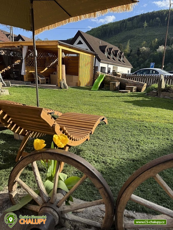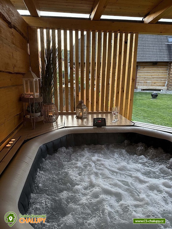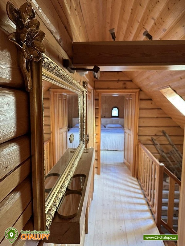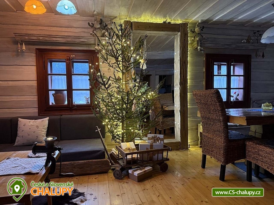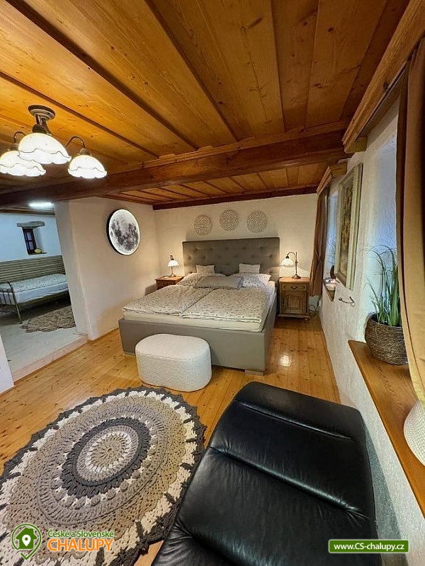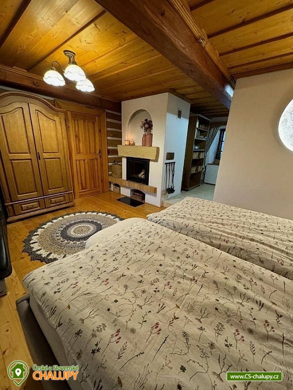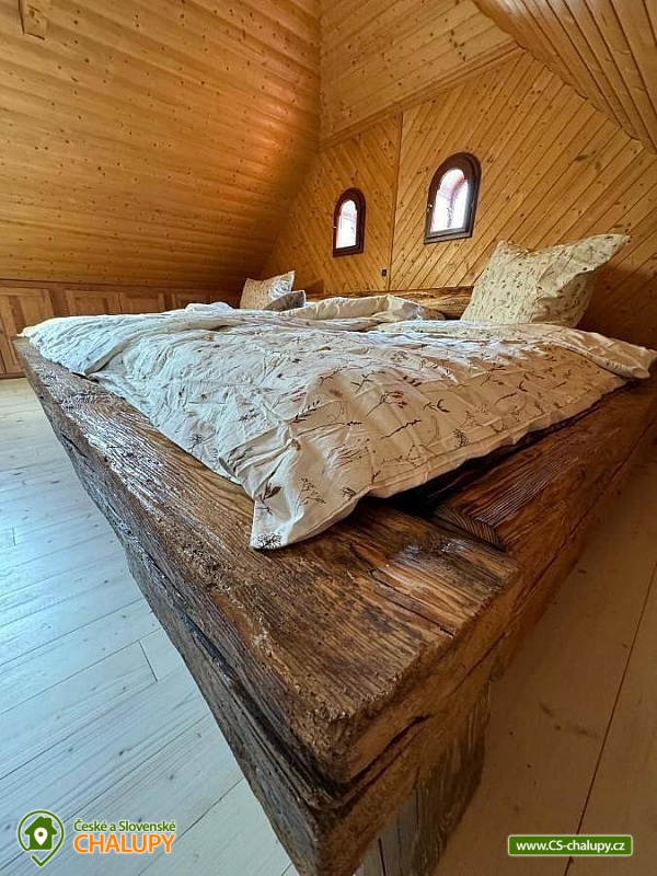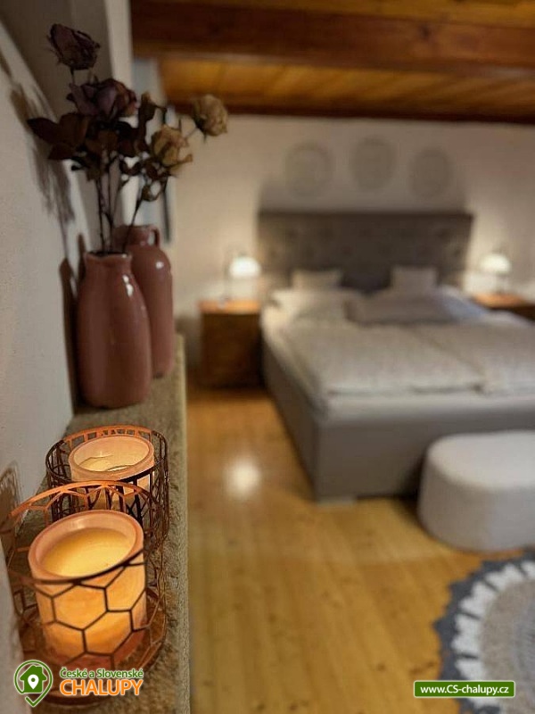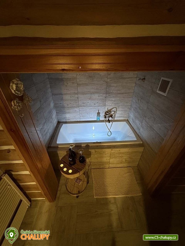 A cozy log cabin, combining historical character with modern comfort, is located in the picturesque valley of the Svratka River, just outside Brno. This place will offer you absolute privacy and peace and create a perfect oasis for relaxation and recharging your batteries. You can look forward to a Finnish sauna with an outdoor shower or a saltwater jacuzzi for outdoor relaxation. The cottage provides accommodation for 9 people in three bedrooms. On the ground floor you will find a 3-bed bedroom (1x double bed, 1x separate single bed) with a fireplace, in the attic a 2-bed bedroom (1x double bed) with a fireplace and a 4-bed bedroom (1x extra large bed for 4 people). A cot is also available (for a small fee). On the ground floor there is also a main living room with a large dining table connected to a fully equipped kitchen (fridge with freezer, microwave, toaster, coffee maker, electric kettle, thermomix with recipe book, dishwasher, hob and dishes). A stylish tiled stove with stove creates the unmistakable charm of a log cabin. There is a TV and hi-fi equipment with a wireless Bluetooth music receiver. The sanitary facilities include a large bathroom on the ground floor with a toilet and a whirlpool bath with light therapy with a view of the electric fireplace. Upstairs there is a separate toilet and a separate bathroom with a bath. Heating is provided by a gas boiler with comfortable underfloor heating. To complete the atmosphere, there is the option of heating in a tiled stove. The cottage also has two electric fireplaces (bathroom, bedroom). On the ground floor in the bedroom you will also find a classic solid fuel fireplace. Free Wi-Fi internet access is available throughout the property. Possibility of storing bicycles/skis. Parking is free and is right next to the property (max. 4 cars). The cottage is located on a fenced plot with a grassy garden. In the garden you will find a pergola with seating and a grill. You can also use the fireplace. There is also an outdoor terrace heater for sitting in the winter months. There is also a wine cellar, which completes the atmosphere of comfort and relaxation. Wellness lovers will appreciate the Finnish sauna, which is complemented by an outdoor shower. In the winter months, a large, unconventional oval barrel is used to cool down. You can also use the outdoor hot tub with salt water under the pergola, which is operated seasonally from March to October. The little ones will certainly appreciate the children's slide. In the vicinity of the property there is the possibility of hiking, cycling, swimming, mushroom picking, cross-country skiing and skiing. For the more adventurous, there are via ferratas. The Svratka River is frequently visited by fishermen looking for quality trout waters. Swimming options include: Olešnice Swimming Pool, Bystřice nad Pernštejnem Swimming Pool or the Nové Město na Moravě City Spa. In winter, nearby ski resorts are an advantage, for example: Nové Město na Moravě - Ski snowpark Harusův kopec or Skiareál Olešnice na Moravě. Trips in the surrounding area are attractive: Vír reservoir, ruins of the Pyšolec, Zubštejn, Aušperk castles or the biathlon area in Nové Město na Moravě. Possibility to arrange a horse-drawn carriage ride (reservation required in advance). For children, there is fun in the form of searching for lost treasure with a sweet reward, while adults can look forward to a bottle of sparkling wine or prosecco as a welcome gift. We look forward to seeing you.