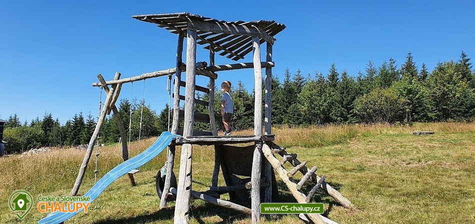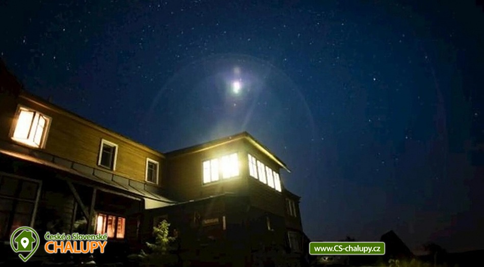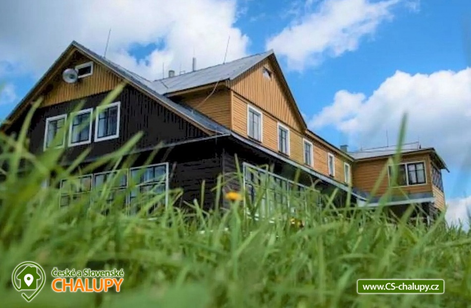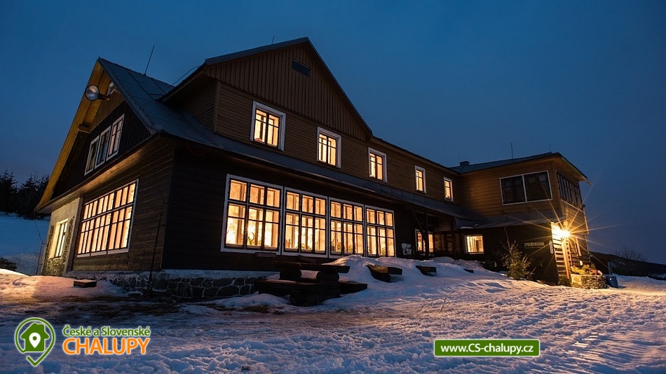 A cozy log cabin with a sauna, which will provide you with a unique view of the wide surroundings (up to 150 km), is located in the KRNAP protected area near the Malá Labe river and the village of Strážné. In summer, visitors will appreciate the large meadow below the cabin, where sheep or horses graze. In winter, the hill is used for bobsleighing, sledding, basic skiing or snowboarding, or building igloos. A renovated cross-country ski trail runs around the cabin, and you can also use the 700 m distant Friesova bouda area with a ski lift. The accommodation is suitable for families with children, larger and smaller groups of people with the possibility of organizing corporate events, seminars or courses. The cabin provides accommodation for 28 people in 12 bedrooms: 1x four-bed room, 9x double room and 2x triple room. The sanitary facilities include 2x shared bathrooms with showers and sinks and 7x shared toilets, separate for ladies and gentlemen. If you are interested, there is a laundry service. The property has a common room with a dining area, a fireplace, satellite TV and a children's corner with toys. The accommodation has a buffet where breakfast and dinner are provided, and on request for larger groups (schools and kindergartens in nature, ski training) lunches including snacks and drinks. You can look forward to a sauna for 6 people or a massage machine. There is a storage room for bicycles or skis. The cottage is heated by gas heating, in the dining room by a fireplace. The property offers free WI-FI internet access. The cottage is surrounded by a grassy plot with parking directly at the property (max. 10 cars) in the summer months. In winter, you need to park at the paid parking lot Strážné - lom, from where you can get to the accommodation by snowmobile at a pre-arranged time. There is a seating area, a grill and table tennis on the plot. The little ones will certainly appreciate the trampoline, jungle gym or swing. In the vicinity of the cottage there are opportunities for hiking, cycling, swimming, skiing, cross-country skiing, sledding or mushroom picking. Swimming options include, for example: the aqua center in Vrchlabí, Vejsplachy pond, the Elbe Dam or the aqua park in Špindlerův Mlýn. In winter, nearby ski resorts are an advantage, for example: the Strážné ski center, the Špindlerův Mlýn ski center or the Vrchlabí ski center. Trips in the area include: the climb to Sněžka, the Špindlerův Mlýn summer bobsleigh track, the Dvůr Králové Zoo, the Krkonoše Museum in Vrchlabí or the Treetop Trail in Janské Lázně. We look forward to seeing you there.