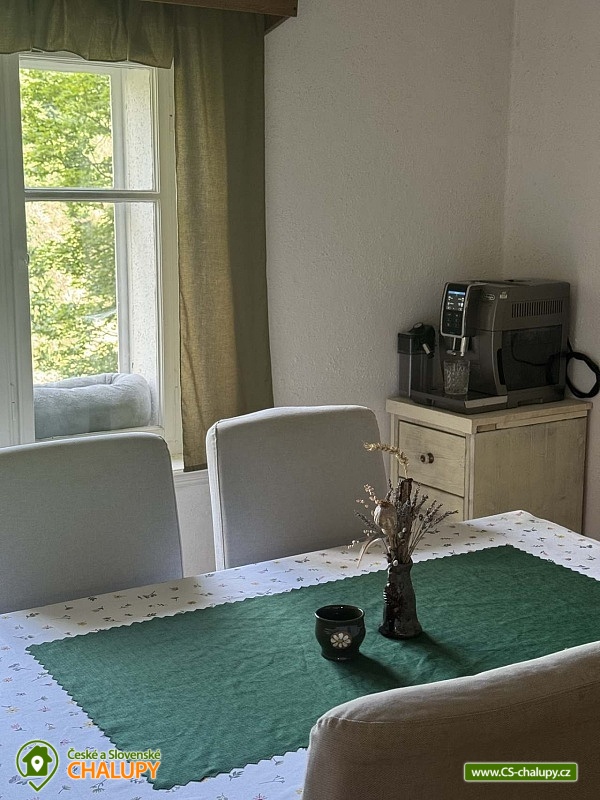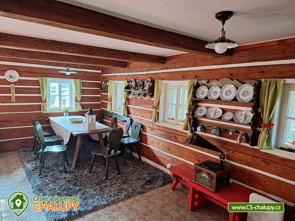 Útulná Roubenka Broumovsko s vinným sklípkem a pecí se nachází v klidné a malebné vesnici Javor nedaleko města Teplice nad Metují. V blízkém okolí láká krásné přírodní prostředí turisticky vyhledávaných Adrpasko-Teplických skal. Roubenka ve venkovském stylu nabízí ubytování pro 8 osob ve třech podkrovních lonicích. Celkem jsou k dispozici dvě dvoulůkové lonice (1x manelská postel a 2x jednolůko) a jedna čtyřlůková lonice (4x jednolůko). K zapůjčení je dětská postýlka. Příjemné chvíle lze trávit v prostorné společenské místnosti s krásnými, velkými kachlovými kamny s prostornou pecí, na které lze i relaxovat. Dále je k dispozici sedací souprava, TV, společenské hry a jídelní stůl se idlemi. Na místnost navazuje plně vybavená kuchyň (lednice, mrazák, mikrovlnná trouba, rychlovarná konvice, kávovar a jídelní sezení). Součástí roubenky je útulný vinný sklípek s posezením, ve kterém si lze vychutnat sklenku dobrého vína nebo se v něm ochladit v teplých letních dnech. Sociální zařízení zahrnuje jednu koupelnu se sprchovým koutem a WC. Vytápění je řeeno krbovými kamny. pro děti je k zapůjčení velká dětská idle. V celém objektu je k dispozici WIFI připojení na internet. Venku lze posedět na terase. K dispozici je gril a ohnitě. Parkovat lze přímo u roubenky. K dispozici jsou 3 parkovací místa. V okolí objektu monost turistiky, cykloturistiky, koupání, houbaření, lyování a běkování. V blízkosti jsou tenisové kurty, bowling a fotbalové hřitě. Mezi monosti koupání patří např.: Koupalitě Teplice nad Metují, Koupalitě Police nad Metují, Rybník Buchák, Jezero Kuprovka, Aquapark Kudowa Zdroj, Koupalitě Náchod, atd. K dispozici jsou blízká lyařská střediska: Kamenec - Teplice nad Metují, Na Nebíčku, Machov a dalí. K výletům v okolí láká Zřícenina hradu Skály, Broumovské stěny, Broumovský kláter, Rozhledna Čáp s úchvatným výhledem, historický Hrad Strmen, Police nad Metují - Muzeum papírových modelů a Muzeum stavebnice Merkur, dále Vyhlídka Vysoký kámen nebo Zámek Náchod. Těíme se na Vás u nás.