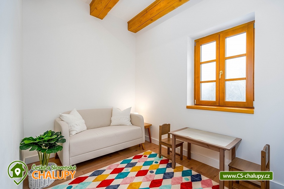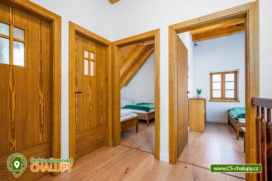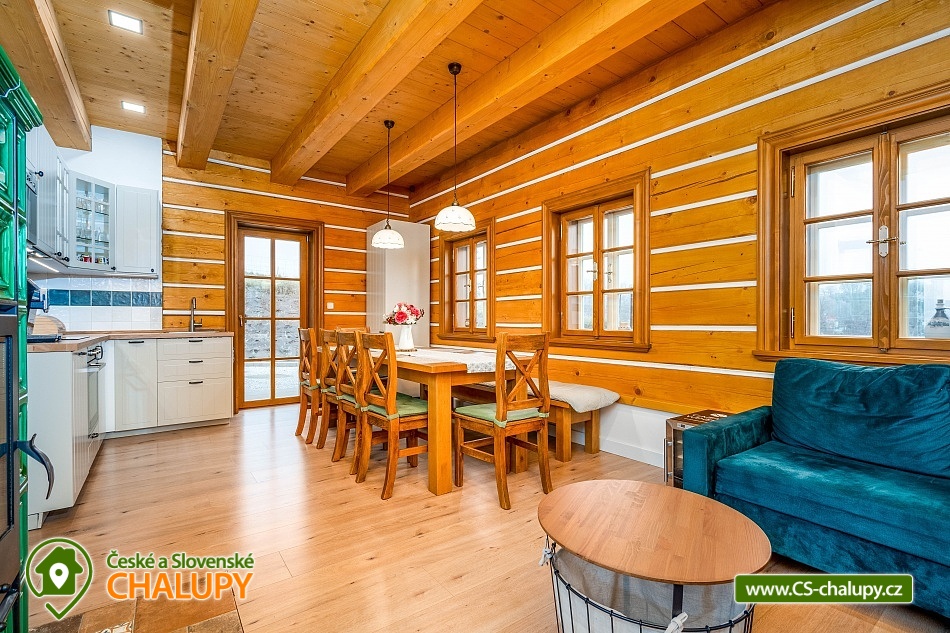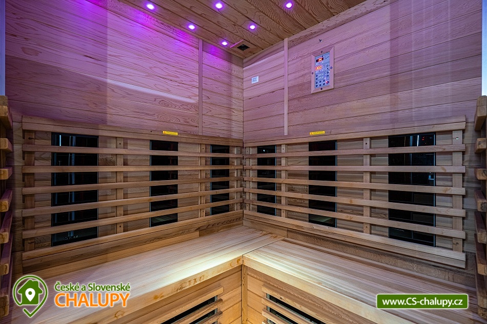 Roubená chalupa s bazénem a saunou v Krkonoších v obci Rudník - z lehátka na zahradě si užijete nádherný výhled na Černou horu a to v zimě i v létě. Kdo má rád hory, přírodu, klid a čerstvý vzduch, ten si přijde na své. Roubenka disponuje komfortním ubytováním, infrasaunou Premium line a venkovním bazénem o rozměru 7x3,5 m. K tomu lukrativní poloha blízko horských středisek a čistý vzduch, co víc k pohodové dovolené třeba? Celoročně Vás ubytujeme s celkovou kapacitou až 11 lůžek. V přízemí se nachází obývací pokoj propojený s kuchyní. V obýváku najdete TV, hifi soundbar, v kuchyni vše potřebné pro pohodlné vaření, jako je indukční varná deska, myčka na nádobí, mikrovlnná a pečící trouba, rychlovarná konvice a lednice s mrazákem. Nádobí je samozřejmostí. Je tu také prostorná koupelna s toaletou a infrasaunou Premium line pro 4 osoby. Z koupelny rovnou vyjdete do luxusní zateplené zimní zahrady, kde je sezení, až pro 10 osob. Do zimní zahrady je vstup i z venkovní terasy. V prvním patře se nachází dva třílůžkové pokoje a jeden pokoj s pěti lůžky. Dále koupelna se sprchovým koutem a samostatnou toaletou. Dům je vytápěn elektrickým teplovodním podlahovým topením. K dispozici je u nás i venkovní posezení, gril. Děti se zabaví na trampolíně. Poskytujeme prostory na odložení lyží i prostor na odložení kol. Parkování je možné přímo u chalupy, v zimě v případě většího množství sněhu doporučujeme použití sněhových řetězů. Samozřejmostí je WiFi připojení na internet. Jako na dlani u nás máte Národní park Krkonoše a celou okolní přírodu, což ocení každý turista. Určitě navštivte Stezku korunami stromů Krkonoše, Černohorské rašeliniště, Modré kameny a Rozhlednu Hnědý vrch. Zajímavá je i prohlídka Muzea Podzemní Krkonoš a Muzea Vápenka. V zimě si zalyžujete ve Skiareálu Černý Důl, Černá hora - Janské Lázně, nebo Skiareálu Mladé Buky. Navštivte také horské města Vrchlabí, Pec pod Sněžkou, či Špindlerův Mlýn. S dětmi zkuste Lanový park v Janských Lázních, Farmapark Muchomůrka i Stezku korunami stromů Krkonoše. Navštívit můžete také Lanový park ve Dvoře Králové, který je součástí areálu ZOO. Přijeďte si k nám odpočinout, nadýchat se čerstvého horského vzduchu a zapomenout na všechny starosti běžných dní. Těšíme se na Vás v Roubence.