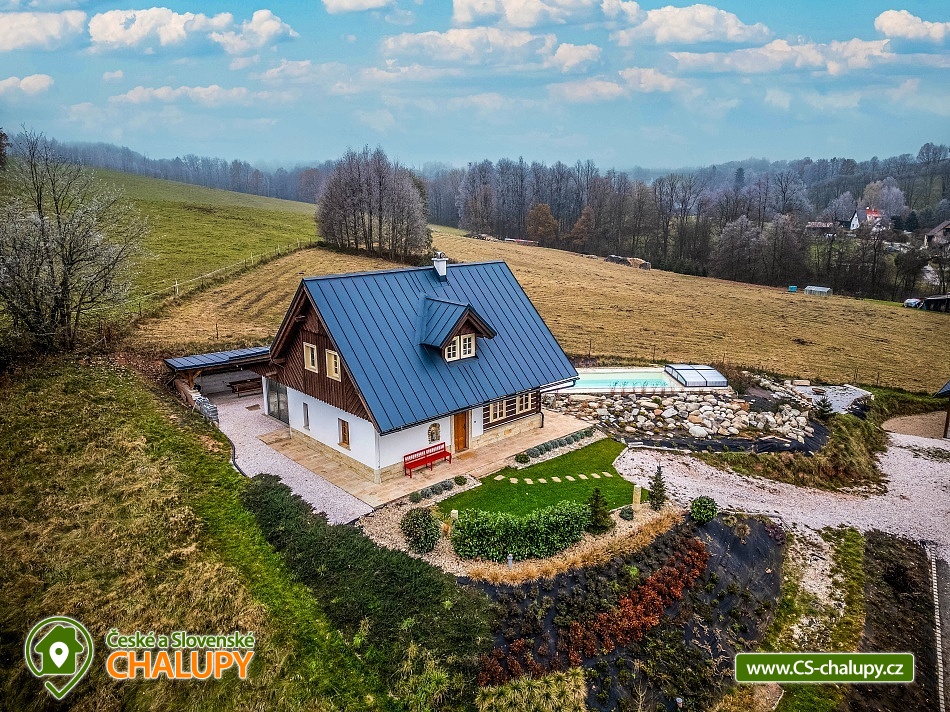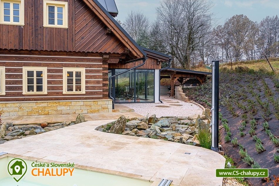 „Roubená chalupa - bazén a sauna - Krkonoše - výhled na Černou horu“