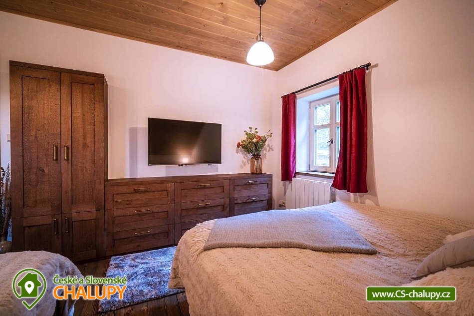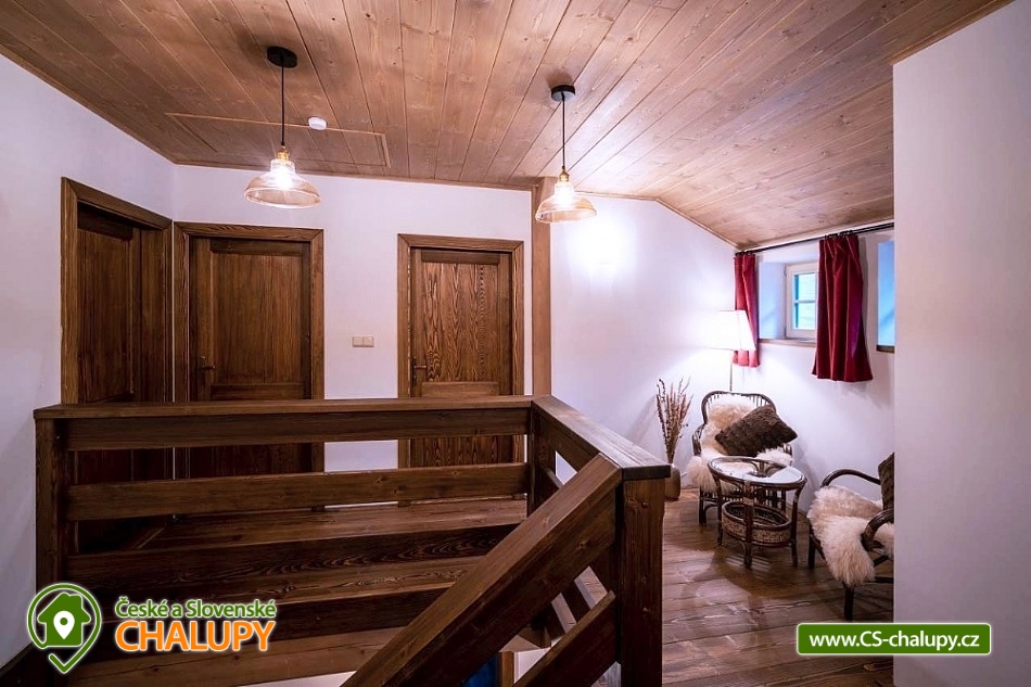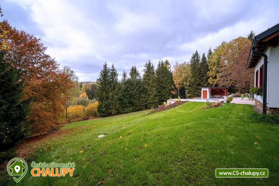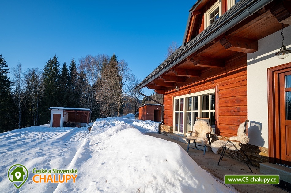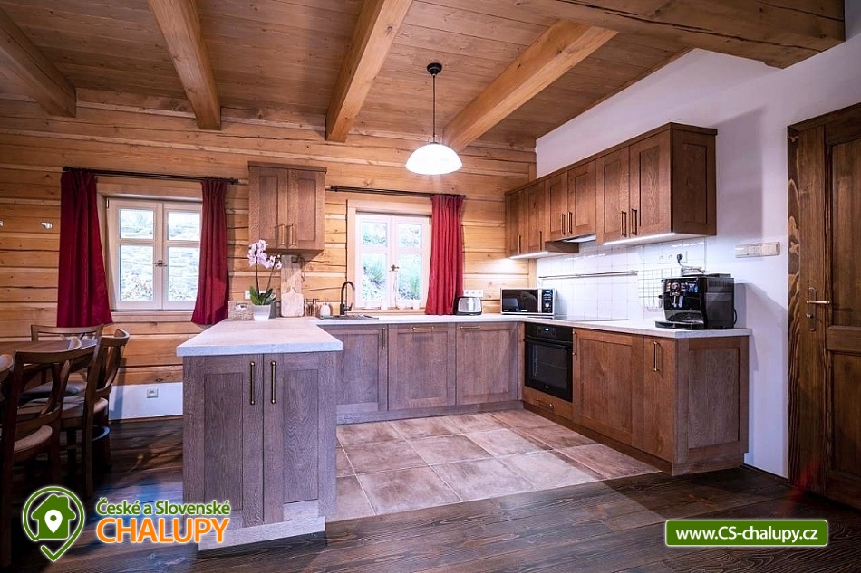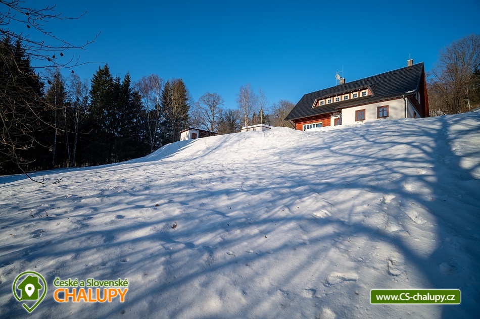 Komfortní roubenka se saunou a venkovním bazénem na rozhraní Krkonoš, Jizerských hor a Českého ráje v obci Helkovice u Vysoké nad Jizerou. Roubenka na kraji obce na pozemku o rozloze cca 4000 m2, kde je absolutní klid a soukromí. U roubenky je venkovní zapuštěný bazén a uvnitř finská sauna. Roubenka k pronájmu poskytuje ubytování pro až 10 osob ve 4 ložnicích. POPIS: V přízemí se nachází velká obytná místnost s kuchyňským koutem, jídelním stolem a posezením s TV. Dále finská sauna se sprchou, komora se sušákem na boty a pračkou, sušící skříň na oblečení a technická místnost s kotlem a prostorem pro uložení a přípravu lyží. Plně vybavená kuchyň: sporák, trouba, lednice, myčka, mikrovlnka, varná konvice, toaster, topinkovač, kávovar. V komoře je druhá velká lednice s mrazákem. V podkroví jsou 4 ložnice, WC a koupelna s vanou a sprchou. Dvě ložnice mají manželskou postel, vlastní WC a sprchu. Další ložnice je čtyřlůžková (dvakrát dvojpostel), bez vlastního WC. Poslední je malá ložnice s dvojpostelí opět bez vlastního WC. Ložnice mají klimatizace, takže se v létě není nutno obávat horka. Sociální zařízení: V objektu je v přízemí WC. V horním patře je ve dvou ložnicích vlastní WC a sprcha. Dále je pak nahoře velká koupelna, s vanou, sprchou a dvěma umyvadly a samostatné WC. Objekt je vytápěn kotlem na pelety, kterým se i celoročně ohřívá voda. V obytné místnosti jsou krbová kamna na dřevo. Parkování u chalupy. Před roubenkou je dlážděná terasa, zapuštěný bazén se slanou vodou a venkovní kryté posezení. Kola lze ukládat do samostatného zamykatelného objektu, kde je možnost nabíjení elektrokol. V roubence je wifi připojení. Léto: V okolí si každý najde svoje. Kousek od chalupy je rozhledna U borovice, ze které uvidíte polovinu Čech. Dále je možné podnikat túry po Krkonoších, po Jizerských horách, ale i po Českém ráji. Zima: Pro vyznavače sjezdového lyžování je v nedaleko několik areálů. Nejbližší je ve Vysokém nad Jizerou - 6 km, kde je i večerní lyžování. Dále je možno lyžovat v Rokytnici, popřípadě v Harrachově, kde jsou velké skiareály. Co se týče běžek, tak ve Vysokém nad Jizerou je lyžařský stadion, a nedaleko jsou polské Jakuszyce, kde je lyžování na běžkách úžasné. V neposlední řadě je u chalupy na zahradě svah, kde je možno pořádat mistrovství v jízdě na čemkoliv, což ocení zejména děti. Těšíme se na Vás u nás.