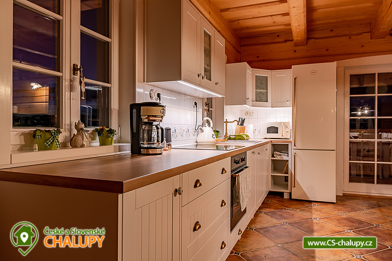 Wellness roubenka s bazénem u Sobotína v CHKO Jeseníky (wellness - finská sauna a vířivka). Dominantou chalupy jsou kachlová kamna s ležením a wellness místnost s vířivkou a finskou saunou. Chalupa k pronájmu poskytuje ubytování pro až 10 osob ve 3 ložnicích. POPIS: Světnice v přízemí s plně vybavenou kuchyní (lednice s mrazákem, myčka, elektrická trouba, kachlová kamna s ležením (na kterých si můžete uvařit jako za starých časů nebo si odpočnout). Dále prostorná sedačka s křeslem ušákem a TV se SAT. V patře se nachází 3 stylově zařízené ložnice (1x dvoulůžko a 2x třílůžková ložnice). Herní koutek pro děti se šipkami a spoustou her. Wellness místnost je vybavena vířivkou pro 5 osob a finskou saunou s hvězdným nebem. V přízemí je jedno WC a sprcha ve wellness místnosti. V patře je také jedno WC a vybavená koupelna s masážním sprchovým boxem a vanou. Chalupa se vytápí kachlovými kamny a podlahovým topením, které je po celém přízemí i v patře v koupelně. V každém pokoji jsou přímotopy ve stylu kachlových kamen. Zahrada je vybavená venkovním posezením, pergolou s plynovým grilem, bazén s tepelným čerpadlem, dětské hřiště s pískovištěm a kolárnou. V okolí doporučujeme: Turistika: rozhledna Praděd, rozhledna Bukovka, vodní elektrárna Dlouhé stráně, Petrovy kameny, Skřítek, Rešovské vodopády, Stezka v oblacích Dolní Morava, Lesní bar Lipová lázně. Cykloturistika: Na Dlouhé stráně, Lipovské stezky, Hřebenovka (Bike park Kouty), Čarodějnická cyklotrasa. Hrady a zámky: Zámek Velké Losiny, Kostel svatého Michaela Maršíkov, Zámek Kolštejn, Hrad Bouzov, Hrad Sovinec, Zámek Loučná nad Desnou, Zámek a lovecké muzeum Úsov, Zřícenina hradu Brníčko, Hrad a zámek Kolštejn. V zimě pak: Lyžařská střediska: Oaza Loučná nad Desnou ( 5km), Kareš Loučná nad Desnou ( 8km), Přemyslov ( 9km), Kouty nad Desnou ( 10Km), Červenohorské sedlo ( 19km), Klepáčov ( 12km), Dolní Morava ( 42km). Běžkařské trasy: Kouty nad Desnou, Ovčárna, Červenohorské sedlo, Praděd, Skřítek, Vrbno pod Pradědem, Přemyslov. Snowparky: snowpark Červenohorské sedlo, snowpark Kraličák, snowpark Paprsek, snowpark Kouty nad Desnou, Flowpark Dolní Morava. Těšíme se na Vás u nás.