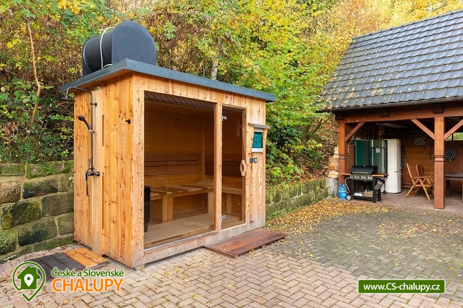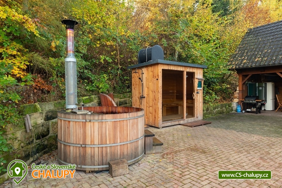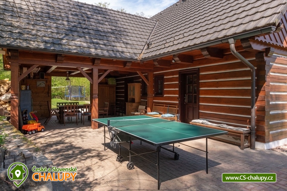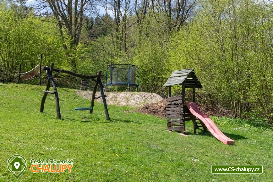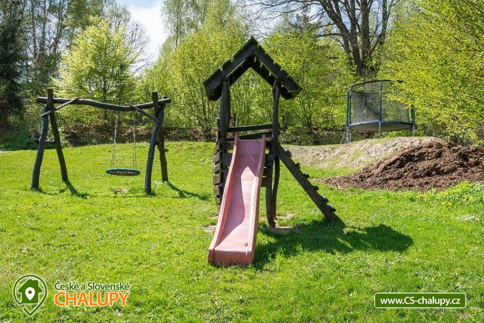 Roubenka na Rovince - Pelesany - Turnov - accommodation Bohemian Paradise. Timbered cottage with two separate comfortably furnished apartments on the outskirts of Turnov in the heart of Bohemian Paradise. In the summer season the building is rented only as a whole to 1 group of clients, outside the summer it is possible to rent both apartments for 5 and 6 people separately. The cottage is located near the forest, 2 km from Turnov under the castle Valdštějn. The chalet stands on a large (2000 m2) fenced plot with parking. Apartment No. 1: living kitchen, bathroom and 2 bedrooms with a capacity of 6 beds. Ground floor: Common hall, from which is the entrance to both apartments. Large kitchen connected to the living room, where there is a dining table with a corner bench and chairs. The kitchen is equipped with utensils, microwave, hob with two cookers, kettle, remoska and refrigerator with freezer. From the kitchen there is access to the garden, where you can sit, this area is equipped with garden furniture and barbecue. Heating is by a fireplace. On the ground floor there is a bathroom with shower, sink and toilet, there is underfloor heating and a bathroom ladder. 1st floor: 2 separate 3-bed rooms. 1st room: 1x sofa bed for two people + 1x single bed. 2nd room: 1 double bed + 1 single bed. Apartment No. 2: living kitchen, bathroom and 1 bedroom with a capacity of 5 beds. Ground floor: Common hall, from which is the entrance to both apartments. Large kitchen connected to the living room, where there is a dining table with a corner bench and chairs, TV. The kitchen is equipped with kitchenware, a microwave, a hob and a fridge-freezer, as well as a children's high chair. From the kitchen there is access to the garden, where you can sit, this area is equipped with garden furniture and barbecue. Heating is by a fireplace. From the kitchen there is access to the garden. On the ground floor there is a bathroom with shower, sink and toilet, there is underfloor heating and a bathroom ladder. 1st floor: 1 bedroom - 1 double bed (180 x 200 cm - for children can be used as a triple bed), 1 double bed (160 x 200 cm), 1 extra bed. At the cottage there is outdoor seating, fireplace, slide, swing, ping pong, badminton net and ball games. In the vicinity of the log cabin there are cycle paths, possible mushroom picking, hiking, rock town, castles, chateaux, the natural swimming pool Sedmihorky and in Turnov there is also an indoor swimming pool. The building is located in the heart of the Bohemian Paradise, countless opportunities for both tourist and cultural and sports. Less than a kilometer from the castle Valdštejn, Hruboskalské rock town. Dominant of the Bohemian Paradise castle Trosky. Nearby ski resorts: Turnov - Struhy, Koberovy - Hamštejn, Kozákov or Líšný.