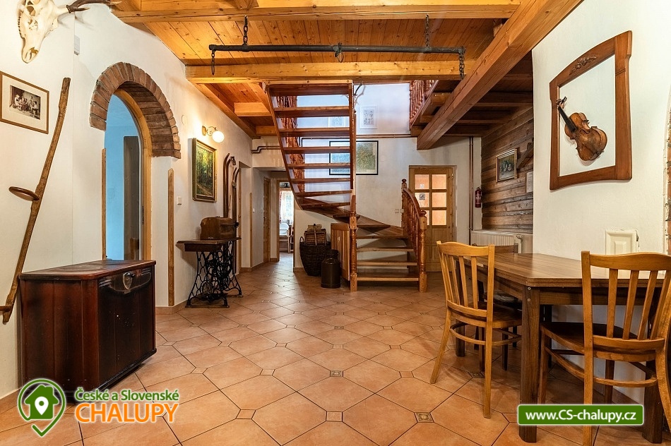 Roubenka Homole s letním bazénem a vyhřívaným koupacím sudem pod vrchem Homole v Krkonoších. Tradiční roubená chalupa má kapacitu až 25 osob v 7 ložnicích. Je ideální pro rodinnou dovolenou, firemní akce, či k víkendovému odpočinku během celého roku. V blízkosti chalupy se nachází místní koupaliště, lyžařský vlek a muzeum krkonošských řemesel. Zajímavostí je i ruční výroba vánočních ozdůbek, která je vyhlášená po celé České republice. Chalupa k pronajmutí poskytuje ubytování v 7 ložnicích: 3 čtyřlůžkové, 3 třílůžkové, 1 dvojlůžkový, možnost přistýlky a dětské postýlky. Sociální zařízení zahrnuje 3 koupelny, k dispozici pračka a 4x WC. Dvě plně vybavené kuchyně, k dispozici 2×sporák, 3× lednička, 2× myčka, rychlovarné konvice, mikrovlnná trouba a funkční kachlová kamna. Světnice tvoří jídelní stůl pro dvanáct osob, další pro šest a v druhé kuchyni třetí stůl pro šest osob, televizor se satelitem a kožená křesla. V každém pokoji se nachází skříně s úložným prostorem pro oblečení. V přízemí se nachází lyžárna nebo úložiště pro horská kola. Vytápění zajišťuje elektrokotel a kachlová kamna. Přímo k objektu vede příjezdová cesta, 8 parkovacích míst přímo u chalupy. Okolí - Plavecký bazén je v Jilemnici, která je vzdálena 6km, v Jilemnici jsou i tenisové kurty. V Semilech golf, v Bozkově dolomitové jeskyně. V okolí jsou běžkařské dráhy, jedna přímo před chalupou, sjezdařské tratě - Vítkovice Aldrov, Vítkovice Vurmovka, Vysoké nad Jizerou - Šachty, Jablonec nad Jizerou - Kamenec, Rokytnice nad Jizerou - Lysá hora, Benecko, Jilemnice - Kozinec. Koupaliště 300 m od chalupy, plavecký bazén v Jilemnici, dětské hřiště u školy, která je vzdálená cca 200 m od chalupy. Těšíme se na Vás u nás.