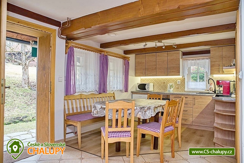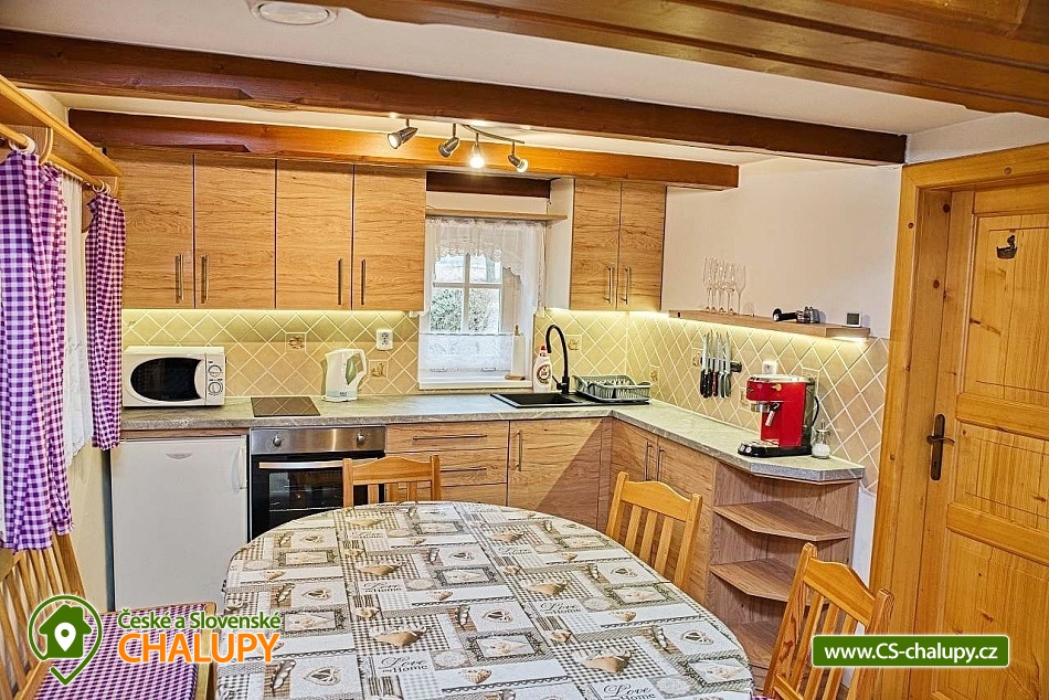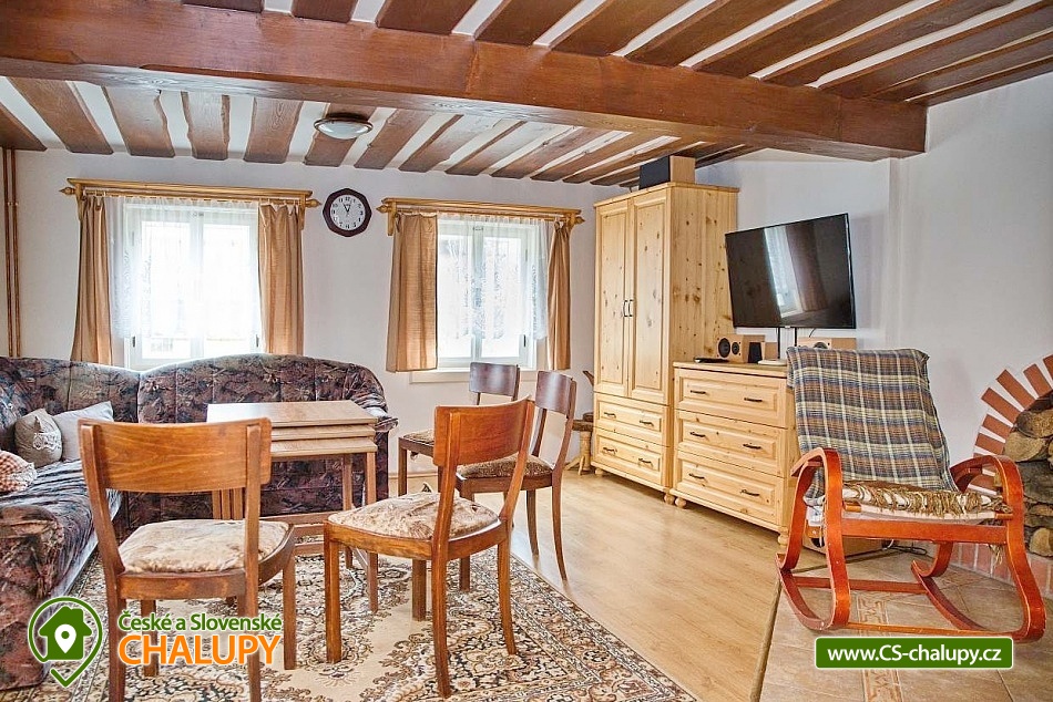 A traditional timbered cottage with a tiled stove is located near the mountain town of Vysoké nad Jizerou in the picturesque village of Roprachtice, famous for example in the films Krakonoš and Skiers or The Forgotten Light. You can look forward to various cultural and sporting events here. The cottage offers accommodation for 11 people in 2 separate attic bedrooms. There is a 5-bed bedroom (1 double bed, 3 single beds) and a 4-bed bedroom (1 double bed, 2 single beds). In the spaces between the bedrooms it is possible to place 2 separate single beds. A travel cot is also available for rent. For moments spent together, there is a spacious living room on the ground floor equipped with a comfortable couch, chairs, a folding table, a rocking chair, a TV and a fireplace stove, which underline the overall atmosphere of the cottage. On the ground floor you will also find a fully equipped kitchen (oven, refrigerator, induction hob, electric kettle, microwave, coffee maker and dishes) connected to the dining area. The sanitary facilities include a bathroom with a bathtub, washing machine, toilet and sink. There is a Wifi internet connection available throughout the property. Heating is provided by a fireplace stove. Behind the cottage there is an outdoor seating area with a retractable awning. There is also a grill and a fireplace. Parking is possible directly at the property (max. 3 parking spaces). In the vicinity of the cottage there is the possibility of hiking, cycling, swimming, mushroom picking, skiing and cross-country skiing. There is a 2.5 km long nature trail "The Wolf That Doesn't Bite" right in the village. Swimming options include: Mříčná swimming pool, Poniklá - Homole v Dolý swimming pool, Jablonec nad Jizerou swimming pool, Jilemnice swimming pool, Zlatá Olešnice swimming pool, Jilemnice swimming pool, Jílové quarry near Držkova, Kruh swimming pool, Valteřice swimming pool, Vrchlabí aquacentre, etc. Nearby ski resorts are available, for example: Šachty, Větrov Ski Resort - Vysoké nad Jizerou, Sklenařice Ski Resort, Kamenec - Jablonec nad Jizerou, Sklenařice Ski Resort, Vurmovka, Aldrov - Vítkovice v Krkonoších, Nad Nádražím - Semily, Zlatá Olešnice, Paseky nad Jizerou Ski Resort, Janova Hora, Benecko, etc. Excursions in the area are attractive, for example: the nearby U Borovice lookout tower, Bohemian Paradise (Prachovské rocks, Pecka, Trosky, Nová Paka, Lomnice nad Popelkou), Bozkovské dolomite caves, the Giant Mountains, the Jizera Mountains or the Treetop Trail in Jánské Lázně. We look forward to seeing you here.