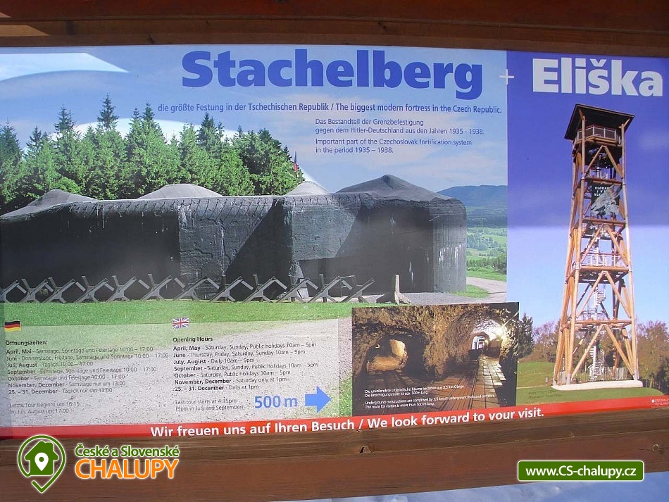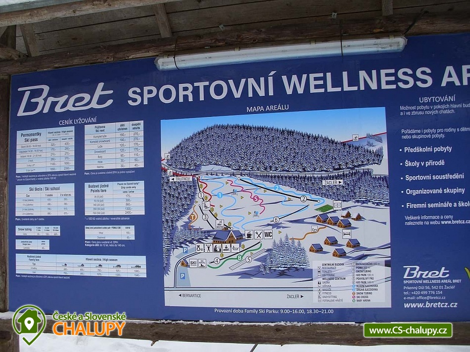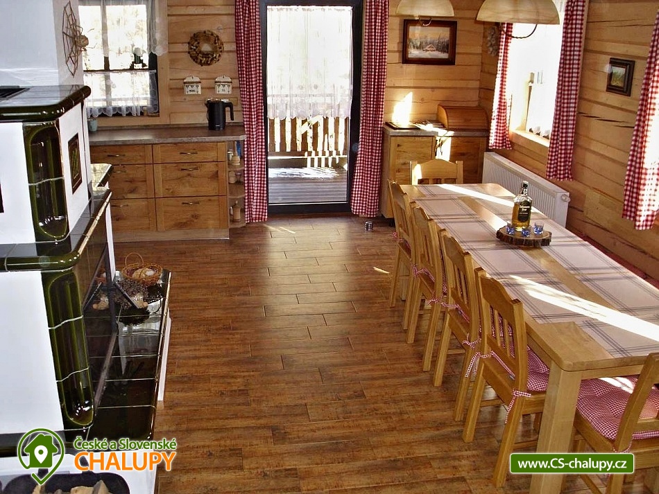 Roubenka Krkonoše s kachlovými kamny v dosahu krásné přírody - Rýchorský prales, pevnost Stachelberk a rozhledna Eliškou. Roubenka k pronajmutí v obci Prkenný Důl poskytuje ubytování pro až 12 osob ve 3 ložnicích. Pokoj č.1: dvě dvoulůžka a 2 plnohodnotné přistýlky. Pokoj č.2: jedno dvoulůžko a 1 velká (140x200cm) plnohodnotná přistýlka. Pokoj č.3: jedno dvoulůžko a 2 plnohodnotné přistýlky. Plnohodnotné přistýlky znamenají, že mají normální rozměr lůžka 80x200 cm, síla matrace 14 cm. Přistýlky jsou umístěné na hambálkách to jest v patře každé ložnice ve špici roubenky u každého pokoje, jsou to místnůstky které jsou vhodná pro děti od 5 let (přístup po schodech na patro). Pro děti je to jasná volba nocování, mají tam svůj klid pro svá tajemství. Každý pokoj má své sociální zařízení. Pokoje jsou v prvním patře. Je zde je také možnost připojení WiFi. Pokoje č.1 a č.3 mají koupeny jako součást pokoje, pokoj č.2 má svou koupelnu a WC v přízemí. K dispozici je také společenská místnost (světnice) s krbovými kachlovými kamny, sedací soupravou a velkým stolem. Součástí světnice je kuchyň pro společné vaření (kuchyň je vybavena - lednice, mikrovlnná trouba, varná deska, el. trouba, varná konvice a nádobí). Dále televize a satelit. Roubenka je vytápěna elektrokotlem a ve společenské místnosti jsou navíc krbová kamna na dřevo (jsou určena k příjemnému večernímu posezení, ne k vytápění celé chalupy). Parkování aut přímo u chaty, vlastní parkoviště (neoploceno) pro 3 - 4 auta. Plnohodnotné přistýlky mají rozměr lůžka 80x200 cm, síla matrace 14 cm. Přistýlky jsou umístěné na hambálkách to jest v patře každé ložnice ve špici roubenky u každého pokoje, jsou to místnůstky které jsou vhodné pro děti od 5 let (přístup po schodech). Roubenka leží v kouzelné krajině Rýchor, které jsou východní branou Krkonoš s nejčistším ovzduším v Krkonoších. Nad naším údolím se rozprostírá přírodní rezervace Dvorský les neboli Rýchorský prales. Malá osada Prkenný Důl přináleží pohraničnímu městečku Žacléř (1,5km) - můžete si zde zahrát bowling, dát si saunu nebo se objednat na rehabilitační kůry a masáže, navštívit fitness nebo kino. V zimním období kousek od chaty (dostupné chůzí) jsou dvě lyžařská střediska. Areál Arakis nabízí návštěvníkům sjezdovky všech typů obtížnosti - modrá, červená i černá. Je zde i snowboardpark. Sjezdovky jsou technicky zasněžovány na ploše přibližně 8 hektarů. K dispozici je automatický odbavovací systém, půjčovna lyží a ski servis, restaurace a kiosky Arakis je vzdálen od chaty cca 400m. Areál Bret je vzdálen cca 250m. Tento areál je vhodný pro rodiny s dětmi. Je zde lyžařská školička pojízdný pás pro nejmenší, ale i pohyblivé lano. dále je zde sedačková lanovka a večerní lyžování, které uspokojí neúnavné lyžaře. V areálu je nová restaurace fitcentrum, sauna masáže. Těšíme se na Vás u nás.
