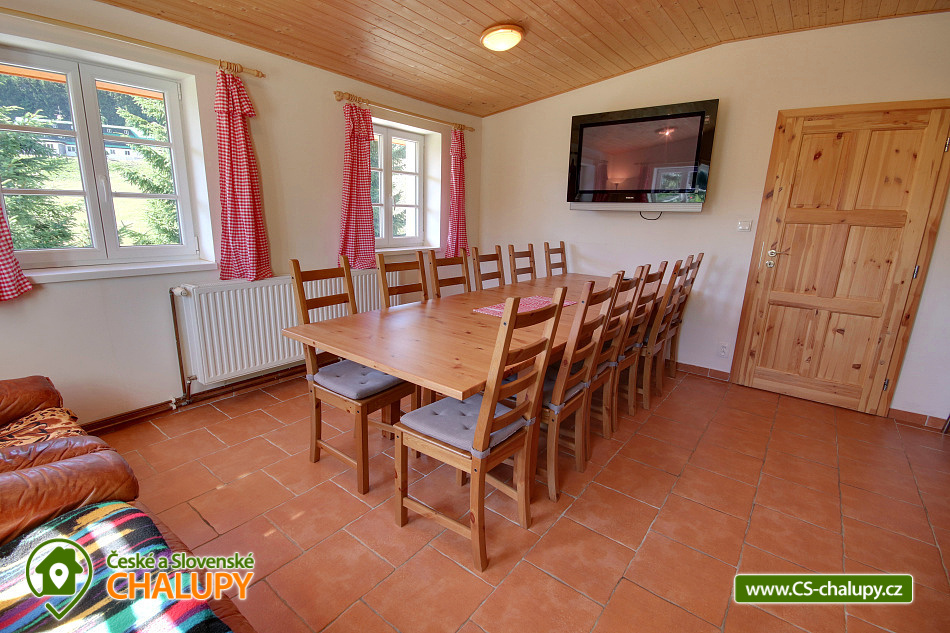 Roubenka U Studánky is located directly on the Černá voda ski slope in the village of Horní Malá Úpa. On skis you can reach the entrance door of the log cabin. In summer, on the other hand, you can enjoy your moment of relaxation with friends and family on the outdoor terrace, where there is a new wooden seating area with the possibility of grilling. Malá Úpa is the starting point for many hiking and cycling trails. No matter what time of year you visit us, you can look forward to a wide selection of activities that Malá Úpa can offer you. DESCRIPTION: Roubenka provides accommodation for 24 people in 7 bedrooms and can only be rented as a whole, not by individual rooms. Bedrooms and rooms - The rooms are equipped with new solid pine furniture and also new mattresses. On the ground floor there are 2 four-bed rooms and 1 double room, in the attic there are 3 three-bed rooms, 1 five-bed room and also a children's corner. On the ground floor you will also find a common kitchen equipped with a dishwasher, a stove with an electric oven, a microwave oven, a kettle, 3 fridges with freezers and other common equipment. There is also a common room with a sitting area, TV and fireplace. Sanitary facilities: Roubenka is equipped with 2 sanitary facilities with 3 showers and 2 toilets on the ground floor and 1 toilet with a sink in the attic. Heating - The building is heated by an electric boiler. However, heating can also be done in the fireplace stove in the common room. (Firewood is available in front of the log cabin). Parking: - In the summer months, we can offer you parking right next to the building. Parking in the winter season – provided in municipal parking lots (approx. 150 CZK/day). Transport of luggage and guests from the parking lot to the cottage and back in the winter months - the possibility of using the so-called "Snow transport" to transport luggage and people (charged upon agreement). Other equipment of the cottage: Internet connection via the Wi-Fi network works throughout the building. Smoking is not allowed in the indoor areas, an outdoor ashtray is used for these purposes. There are several options in the vicinity of U Studánky cottage: Wellness and fitness in Bouda Malá Úpa, sauna in SkiMU Sport center. We also recommend an excursion to the local microbrewery Trautenberk. But it is also worth a visit "just" to sit in the brewery's restaurant. We recommend a trip to Černá Hora, Aichelburg Castle in Horní Maršov, Kuks Castle, Stachelberg Fortress or ZOO in Dvůr Králové nad Labem. We look forward to seeing you here.