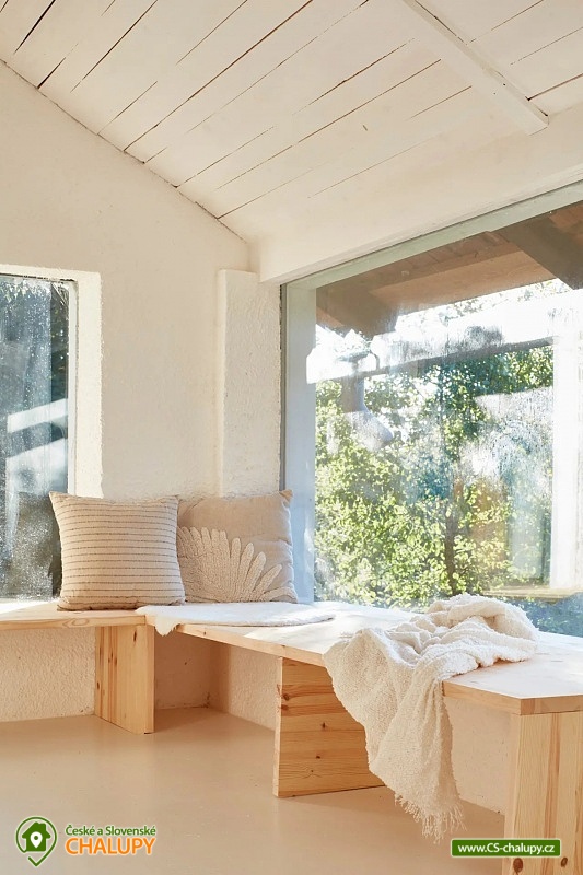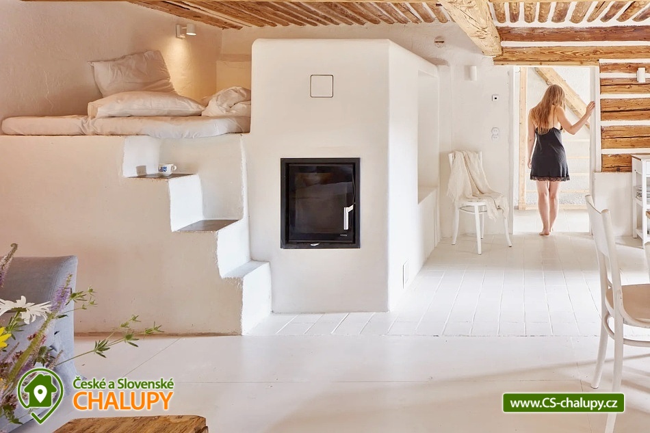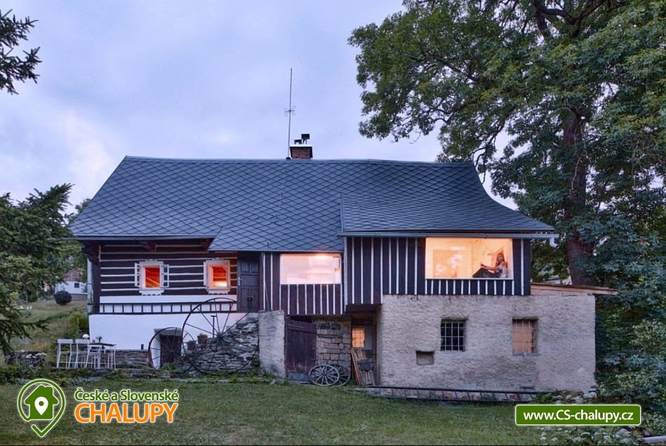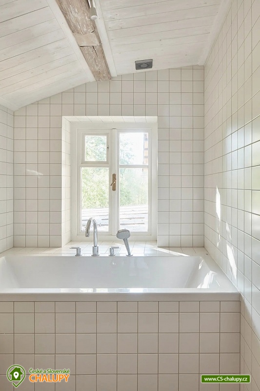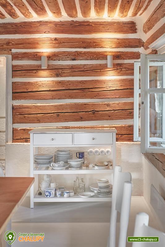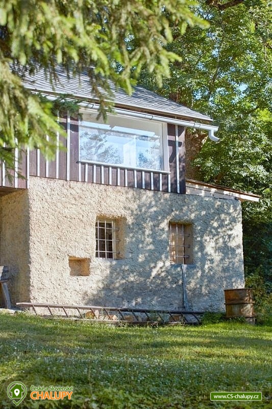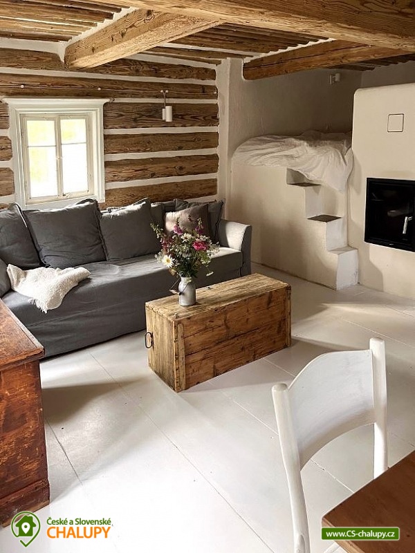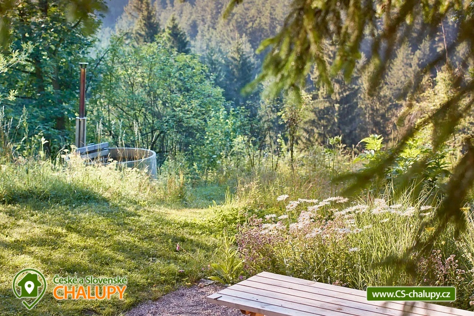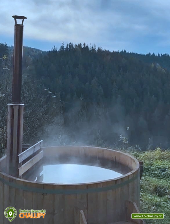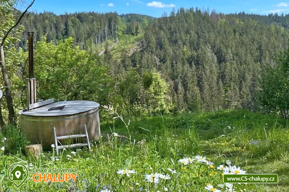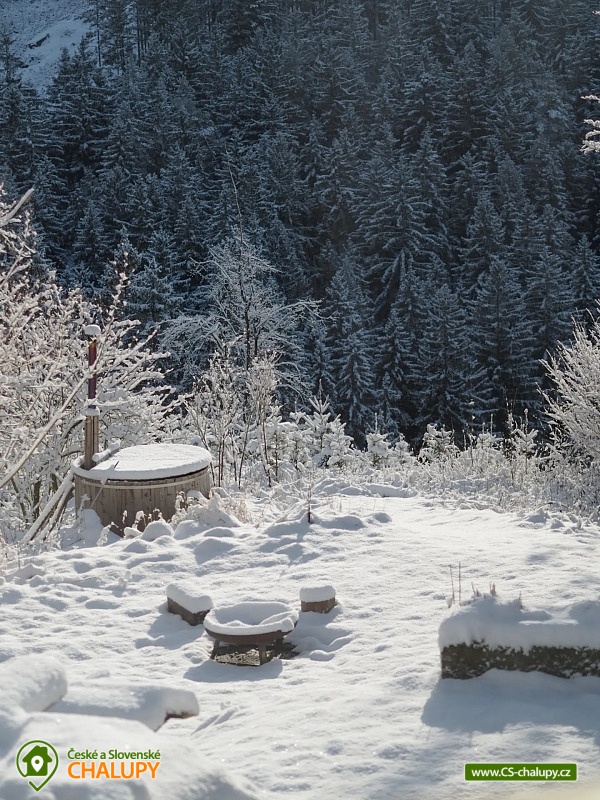 Roubenka Lesní ráj - kamna s pecí a koupací sud Jizera Mountains