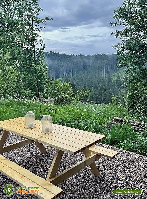 The Lesní ráj log cabin with a heated hot tub - a historic design gem with a stove and lying on the stove is located on the border of two Czech mountain ranges - the Jizera Mountains and the Krkonoše Mountains, in the middle of a forest paradise that will absorb every guest. The capacity of the cottage is up to 6 people. The dominant feature of the entire log cabin is the historic stove with a fireplace built into the living room, which can comfortably sleep two people. The cozy living room also includes a sofa bed for 2 people and a large dining table. There is also one double bedroom with a 180x200 cm bed and a dressing room hidden behind the head of the bed. In the front of the bedroom there is a panoramic window with a comfortable seating sill, thanks to which you can enjoy the views of the forested valley in peace. For cooking, there is a fully equipped kitchen with a historic wood-burning stove, but also modern equipment - induction, dishwasher, electric kettle, coffee grinder, filter set, capsule coffee machine, dishes and basic cooking equipment. There is a fridge with freezer in the hallway. The sanitary facilities include two bathrooms, one with a bathtub and the other with a shower. Both bathrooms have a toilet. Shower gel, shampoo, cleaning products and a hairdryer are available. Heating is provided by a fireplace stove and underfloor heating. There is also WIFI internet access. A grassy garden spreads around the log cabin. At its very end, directly above the forest and valley, there is a bathing barrel in which you can heat wood. There are two terraces with seating. One stone one right next to the house, just a few steps from the kitchen. The second one in the lower part of the garden next to a flower bed and a fireplace with a grill. Parking is possible directly at the log cabin. There are 2 parking spaces available. In the vicinity of the property there is the possibility of hiking, cycling, swimming, skiing, cross-country skiing, fishing and mushroom picking. There are tennis courts nearby. The village of Zlatá Olešnice has a bike park, a ski area and a swimming pool. Other swimming options include: Jablonec nad Jizerou Swimming Pool, Jesenny - Bumbálka Swimming Pool, Tanvald Swimming Pool, Harrachov - Zákoutí Swimming Pool, Jablonec nad Nisou Swimming Pool, Špindlerův Mlýn Aquapark, etc. There are nearby ski resorts: Zlatá Olešnice Ski Area, Rejdice Ski Area, Paseky nad Jizerou Ski Area, Šachty - Vysoké nad Jizerou Ski Area and others. The ruins of the Návarov Castle, the Držkovské Waterfalls, the Birthplace of Antal Stašek, the Jára Cimrman Museum and the Lighthouse (Příchovice), the Štěpánka Lookout Tower - the oldest lookout tower in the Jizera Mountains on the Hvězda peak, the Bozkov Dolomite Caves or the Mumlavské Waterfalls in Harrachov are all attractive places to visit. We look forward to seeing you there.