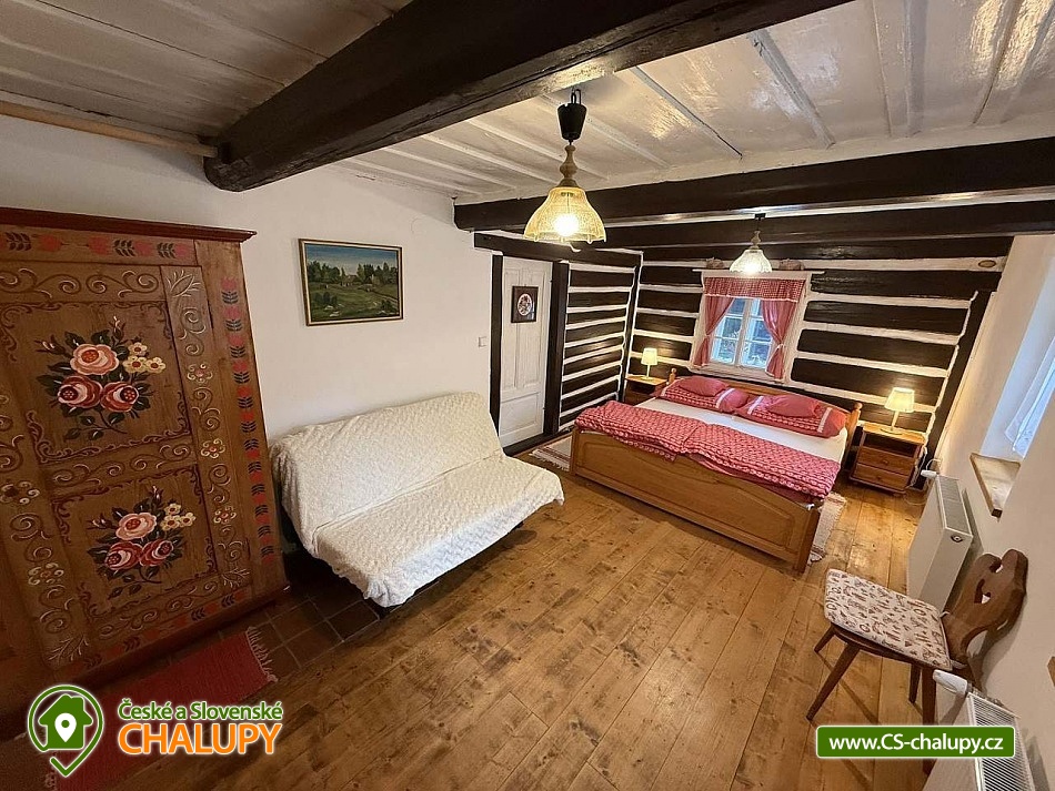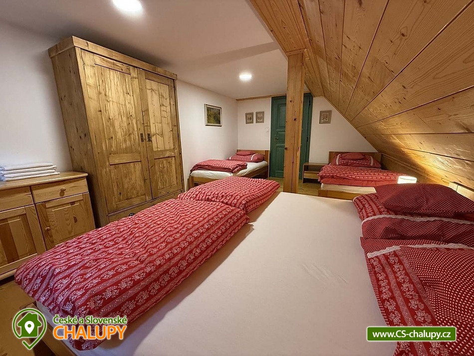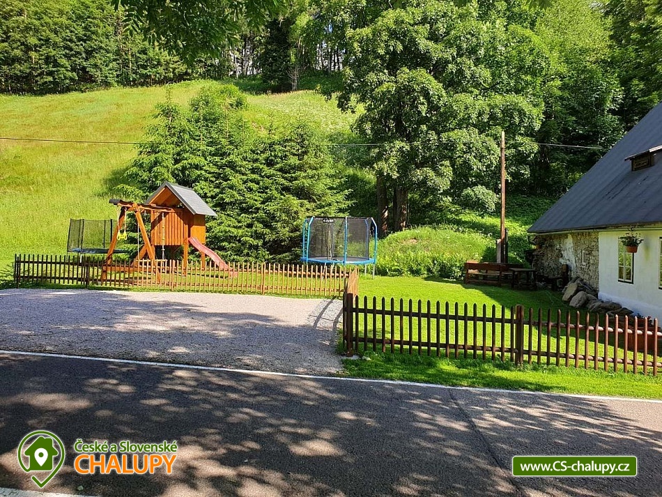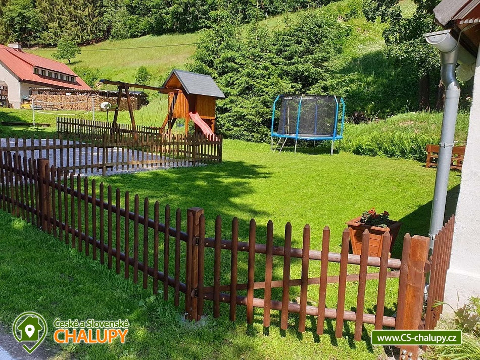 Malá Labe log cabin - Krkonoše - Strážné. We invite you to our log cabin Nikolka, which will breathe a pleasant atmosphere, coziness and cozy rooms. The cottage is located in the picturesque village of Dolní Dvůr in the Krkonoše National Park. It is a great starting point for summer hiking, cycling, but also winter skiing. The cottage for rent provides accommodation for up to 16 people in 4 bedrooms. Bedroom no. 1 on the ground floor - double bed + sofa bed for max. 2 people. Upstairs is bedroom no. 2 - double bed, 2 x single bed. Bedroom no. 3 - double bed, 2 x single bed. Bedroom no. 4 - double bed. You will not miss anything in the equipment of the cottage, from kitchen equipment to a dryer and washing machine. For coffee lovers, there is a coffee maker. The cottage has an original room that serves as a living room, next to it is a separate bedroom, kitchen and bathroom with shower and toilet. Upstairs are newly built cozy rooms in wood and a romantic bathroom. In the attic there is a relaxation room with a really large mattress 3 x 3m, with a TV and a corner full of toys. The best hideout not only for children! We are ready for small visitors - there is a high chair, a cot and other equipment available. Even in bad weather, you will not be bored with us - board games, cards, coloring books, toys, wifi and TV are ready. You can also relax by the tiled stove with a book in hand. There is also a lockable shed where there is a place to store skis or bicycles. Not far from the log cabin, the Malá Elbe murmurs beautifully and those who are attentive and quiet will see or hear a variety of forest animals. You will find many hiking and cycling trails in the area. Dolní Dvůr is also a good starting point for exploring the beauties of the Krkonoše Mountains. Nice trails for exploring the mountains are also adapted for children. There is a bus stop in the village, from where you can get closer to your destinations. Attractive destinations in the area - Sněžka, Chata Výrovka, Luční bouda, Pec pod Sněžkou 11 km, Tetřeví Boudy. A nice trip is also to Černá Hora, 14 km away, there is a cable car going up and you can go down on scooters. Janské Lázně is also nearby, where the Treetop Trail attracts you. The town of Vrchlabí, 8 km away, offers sports facilities and other activities, in nearby Jilemnice there is an indoor swimming pool. Aquapark in Špindlerův Mlýn 20 km. In the winter season, ski slopes are within reach. Just take your skis on your shoulders - 300 m from the cottage there is a ski slope at the Luisiino údolí Ski Resort, less than 2 km away there is the Family Ski Resort with a rental shop and ski school. Both ski slopes are suitable for beginners. There are great ski slopes in Strážné (4 km), and the Herlíkovice Ski Resort will satisfy even experienced skiers. In less than half an hour you can ski down the slopes in Špindlerův Mlýn. We look forward to seeing you there.