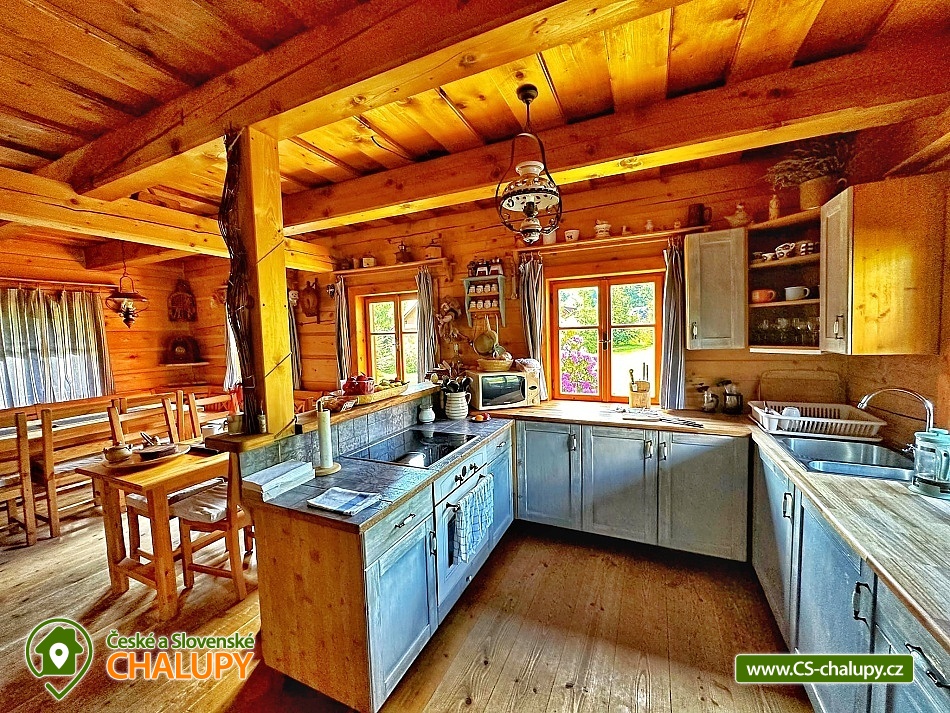 Stylová roubenka u říčky zvané Říčka a nedaleko vrchu Zakletý v CHKO Orlické hory, poloha na okraji obce Říčky v Orlických horách. Chalupa k pronájmu poskytuje ubytování pro až 12 osob ve 3 ložnicích. Interiér chalupy je celý v dřevěném provedení a tak návštěvníky přivítá vůně dřeva a starodávný charakter. Dostupnost a poloha místa je oázou klidu a pohody. POPIS: nabízíme 3 čtyřlůžkové pokoje v patře. Při vstupu malá hospodářská místnost s kotelnou pro uložení lyží, kol atd. V přízemí světnice (3x sedačka, 2x stůl, 8x židle, rohová lavice, palanda, kuchyň - varná deska, konvice, mikrovlnka, horkovzdušná trouba, 2x lednička, veškeré nádobí, Tv + satelit). Dolní čtyřlůžkový pokoj (standardně nenabízíme), koupelna (sprchový kout, WC). Horní patro 3 čtyřlůžkové a pokoje s regálovým úložným prostorem a horní koupelna (WC, vana a dvojité umyvadlo). K dispozici venkovní posezení, malá travnatá plocha a ohniště. U objektu jsou 4 parkovací místa. Možnosti turistického vyžití v zimě i v létě jsou veliké. V zimě sjezdové a běžecké lyžování (Říčky, Deštná, Zdobnice, Rokytnice). Ski centrum Říčky - nová šestimístná sedačka s bublinou. V létě tenis, fotbal, lanové centrum a cyklo či pěší turistika. V pozdním létě houbaření a sběr borůvek nebo pro rybáře lov pstruhů a lipanů. Pro regeneraci a odpočinek je možné navštívit celoročně restauraci a wellness na Apartmánech Říčky, kde je vnitřní bazének, sauna a masáže (asi 500m od chalupy). Těšíme se na Vás u nás.