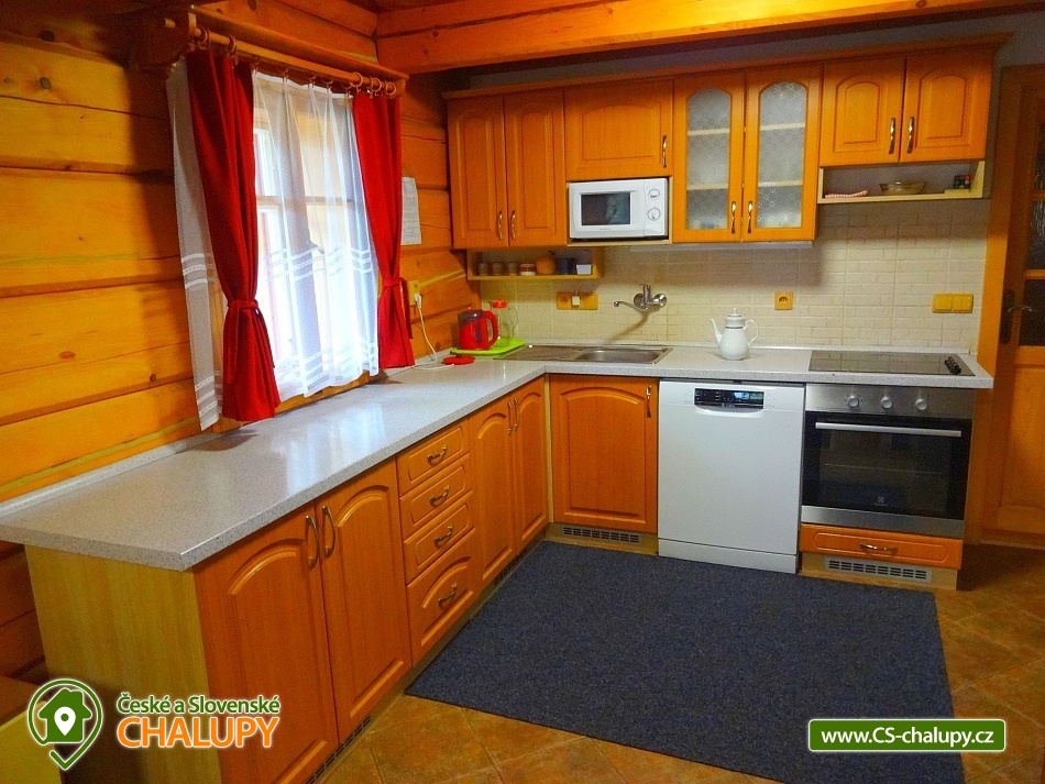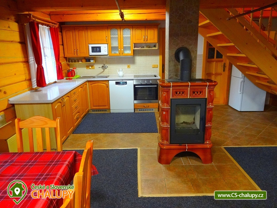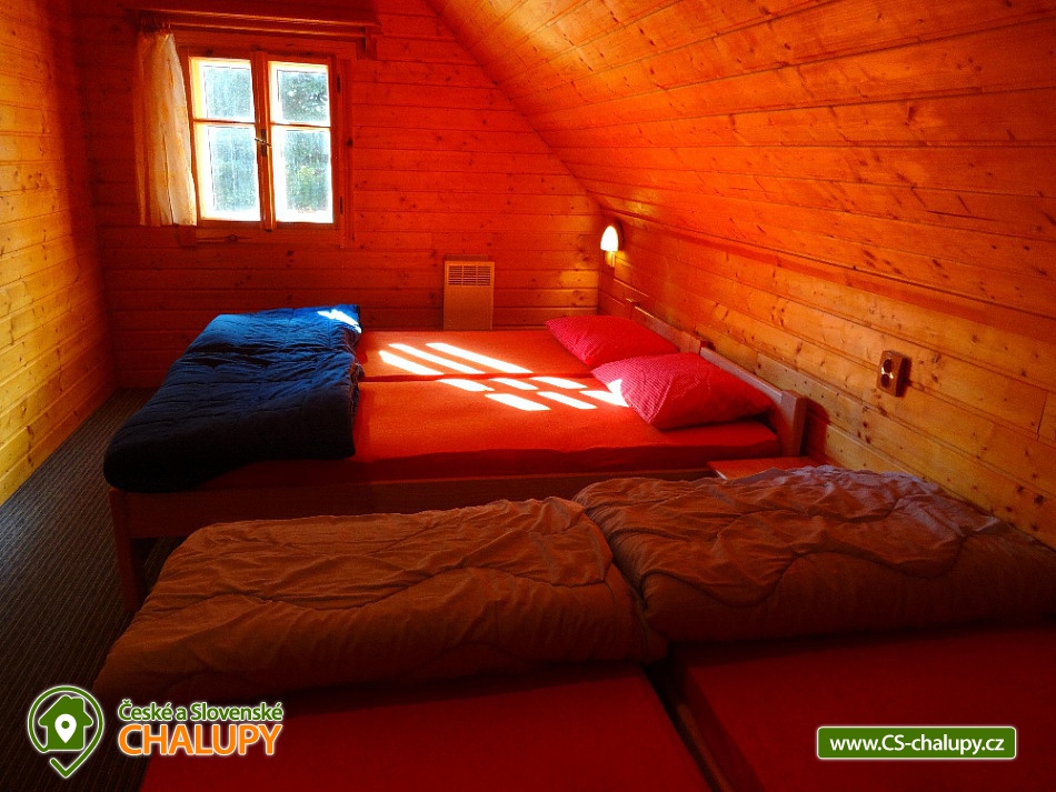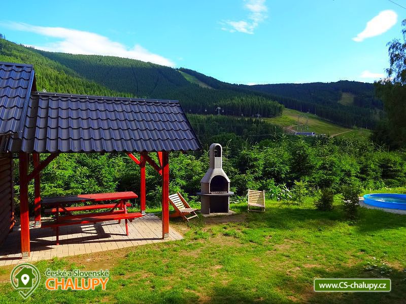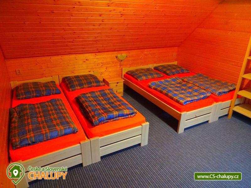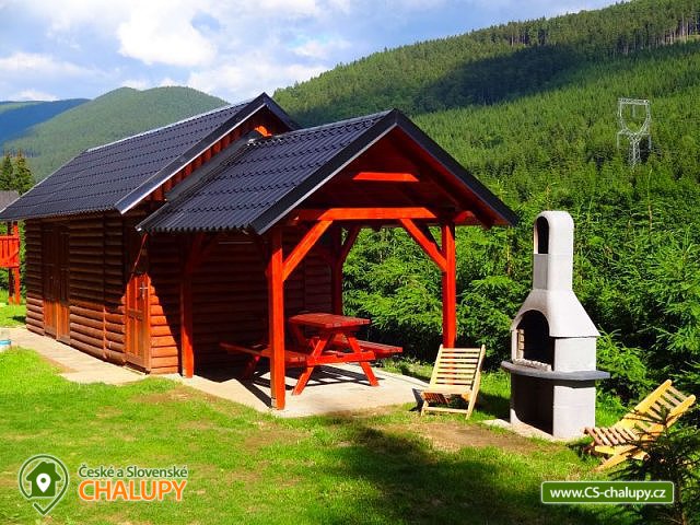 Roubenka se saunou, hernou a letním bazénem nedaleko Termálního parku Velké Losiny. Tradiční roubená chata s kapacitou 2x11 osob (sauna, herna, dětský bazén) se nachází na jednom z nejpěknějších míst v atraktivní části Hrubého Jeseníku. K dispozici jsou 2 stejně vybavené, stejně velké a samostatně oddělené apartmány s vlastními venkovními vchody, každý se 3 ložnicemi a každý s kapacitou 11 osob. V případě objednání celé chaty a známých osob lze oba apartmány vnitřkem propojit a celá chata je tak průchozí. Vybavení každého apartmánu: V přízemí je společenská místnost - velký obývací pokoj spojený s kuchyní a jídelnou, koupelna se sprchou, wc, zastřešená veranda a terasa. V I. patře jsou 3 neprůchozí ložnice: 1x3 lůžka, 1x4 lůžka a 1x4 lůžka a druhé wc. K dalšímu vybavení patří sedací souprava, lednice, mraznička, myčka nádobí, mikr. trouba, sklokeramická varná deska, el.trouba, topinkovač, krbová kamna, el. topení (akumulačky), tv-lcd, wifi internet, dětská jídelní židlička a dětská postýlka. Každý apartmán má i své venkovní posezení s pergolou a venkovním krbem. Uvnitř chalupy je také infrasauna pro 4 osoby, herna se stolním tenisem a stolní fotbal. Vedle chalupy je dětský bazén o Ø160cm/hloubka 38cm, úschovna lyží a kol, dětská skluzavka, houpačky, lana, pískoviště, prolézačky a trampolína. Majitel v objektu nebydlí. Pes zde není povolen a parkování je v létě přímo u objektu, v zimě 80m od objektu. Kousek od chaty (1 km) je i krytý bazén se zádovým chrličem a s Whirpool, restaurace 250m, lanovky 250m nebo thermalpark s tobogány 10km. Ubytování v Jeseníkách na chatě Roubenka. V okolí chaty doporučujeme tyto výlety: podzemní přečerpávací elektrárna Dl. Stráně s prohlídkou vysokohorských vodních nádrží - 5 km , vodopády na Borovém potoce - 5 km, velký zábavný park pro děti se spoustou atrakcí a restaurací, Loučná - 5 km, rybářská bašta, minigolf a skatepark, Loučná - 5 km, horské středisko Červenohorské Sedlo (1.030m.n.m.) s restauracemi a množstvím vleků - 8 km, termální aquapark s tobogány, lázně, zámek a minigolf, Velké Losiny - 8 km a muzeum ruční výroby papíru (nejstarší v Evropě a je doposud v provozu), Velké Losiny - 8 km.