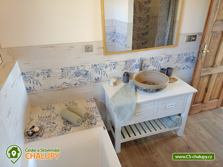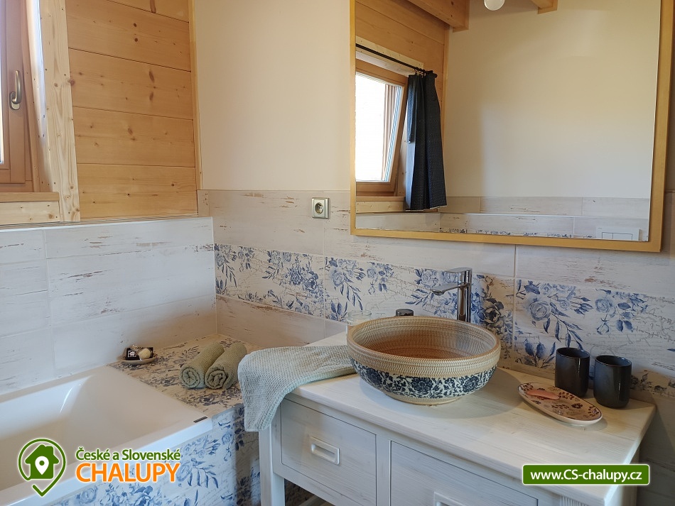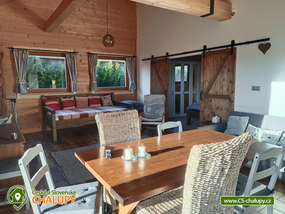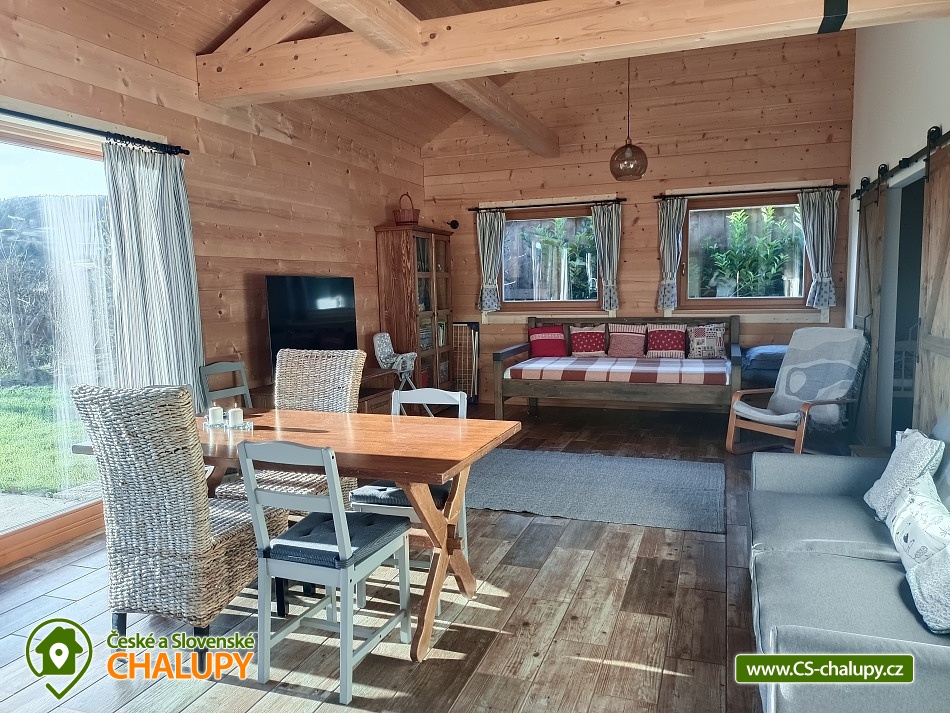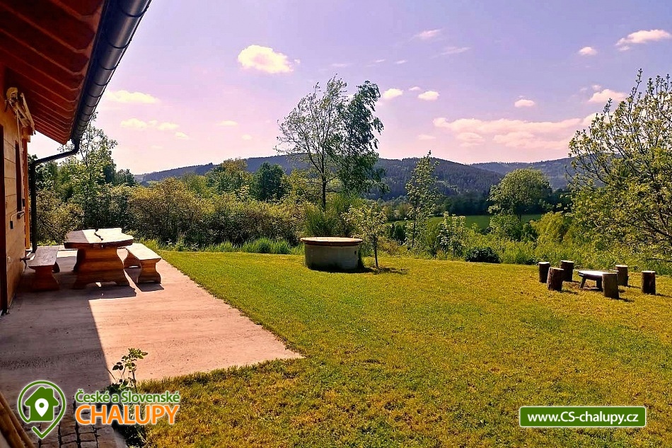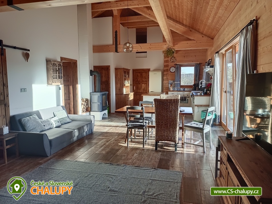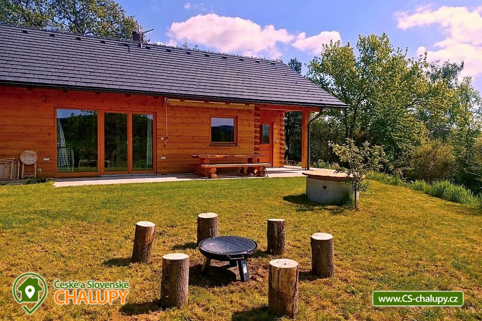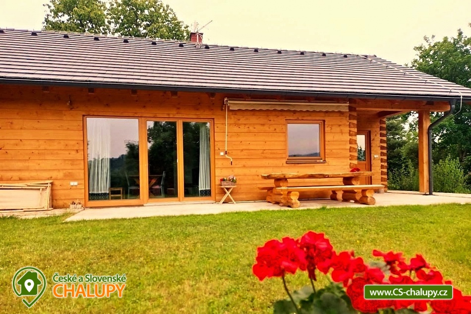The log cabin Kopretina - Malenice - Strakonice is located near the picturesque village of Malenice in South Bohemia, near the Šumava Protected Landscape Area. Treat yourself to a breathtaking view of the landscape, absolute peace and relaxation in nature. The log cabin offers accommodation for 6 people in two bedrooms (1 double and 1 triple) and one extra bed in the living room. Cots are available in the bedrooms. The log cabin also has a large living room that connects the kitchen and living room, a bathroom and an entrance hall. The fully equipped kitchen with a dining table includes dishes, an oven, an induction hob, a fridge with freezer, a microwave, a coffee machine for coffee beans and Nespresso capsules. The kitchen is directly connected to the living room with a fireplace, where you can relax on a comfortable couch or an additional sofa and a flat screen TV. The bathroom is equipped with a shower, bathtub, sink and toilet. The building is heated by electricity and a fireplace. Wi-Fi connection available. Parking is possible directly at the building. The log cabin has a spacious terrace (entrance to the terrace from the living room) with a table and benches made of solid wood and a garden with a fireplace and a garden swing. Sun loungers are also available. From the log cabin and the terrace in front of the log cabin there is an absolutely amazing view of the surrounding landscape, sitting here with plenty of sun and beautiful nature all around is perfect relaxation! For trips in the area, the Crocodile Zoo Protivín, the Celtic hillfort on the Věnec hill, the Krušlovský apiary, Helfenburk Castle, the State Chateau Vimperk, the Hluboká nad Vltavou chateau or the city of České Budějovice attract visitors. Swimming options: Volyně swimming pool, Vlachovo Březí swimming pool, Vimperk swimming pool, Mléčná Dráha - Račov swimming pool, Skály swimming pool. In winter you can ski in the Kubova Huť Ski Resort or in Javorník. We look forward to seeing you there.