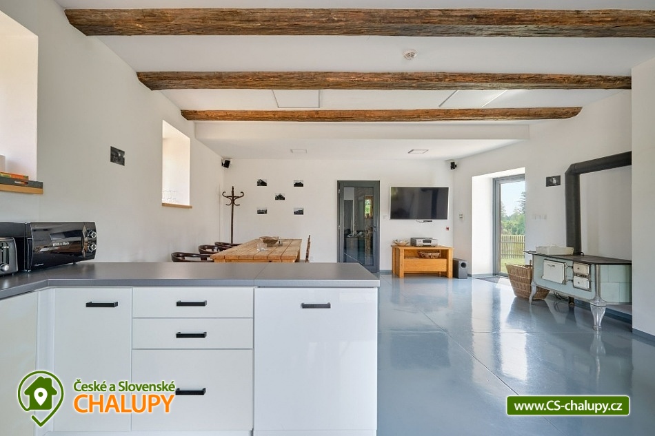 Roubenka s wellness (sauna a vířivka) se nachází uprostřed přírody Ašského výběžku a zároveň nedaleko historických měst Cheb a Františkovy Lázně. Jedná se o komfortní historicky cennou roubenku, jejíž staří je odhadováno na 200 – 250 let. Těšit se můžete na příjemný pobyt v romantickém historickém stavení s moderními prvky a možností využití privátního wellness. Roubenka poskytuje ubytování pro až 10 osob ve třech samostatných apartmánech s vlastní koupelnou. K dispozici jsou: APARTMÁN ROYAL - Kapacita 4 osoby (manželská postel + patrové spaní s matracemi na zemi). Jedná se o apartmán s kuchyňským koutem, terasou a krbovými kamny. K dispozici je koupelna s vanou pro 2 osoby. APARTMÁN SMART – Kapacita 4 osoby (manželská postel + patrové spaní s matracemi na zemi). Apartmán disponuje koupelnu s rohovou vanou. Oba apartmány se nachází v 1. patře. APARTMÁN AUTENTIC - Kapacita 2 osoby (2x jednolůžko). Jedná se o selskou světnici vybavenou historickým dobovým nábytkem a kachlovými kamny. K dispozici je koupelna s otevřeným sprchovým koutem. Světnice se nachází v přízemí. Všechny apartmány disponují LED TV a audiosystémem. Pro hosty jsou připraveny lůžkoviny a ručníky. V přízemí budovy ke společným chvílím slouží společenská místnost s krbovými kamny, prostorným jídelním stolem, pohovkou a LED TV. Součástí místnosti je plně vybavená kuchyň (elektrická trouba, indukční deska, mikrovlnná trouba, lednice, rychlovarná konvice, topinkovač, kávovar Nespresso a přístroj na přípravu překapávané kávy). V přízemí je k dispozici 1 samostatné WC. V celém objektu WIFI připojení na internet. Vytápění je řešeno centrálně skrze podlahové topení. Dále si lze zatopit v kamnech ve společenské místnosti, v apartmánu Royal a apartmánu Autentic. Kolem roubenky se rozléhá zahrada, kde lze posedět na terase. K dispozici je gril a ohniště. Děti se mohou těšit na malé dětské pískoviště s posezením. Parkovat lze přímo u objektu. Po domluvě a za poplatek můžete relaxovat v privátním wellness (sauna + vířivka) umístěném v přilehlé budově stodoly a vyhrazeném pouze pro ubytované hosty Roubenky a sousedící chalupy (Objekt č. 3C-132). Z prostor je výhled do přilehlého údolí. Voda ve vířivce se mění po každém použití, je načerpávána z vlastního hlubinného vrtu a není nijak chemicky upravována. V okolí roubenky možnost turistiky, cykloturistiky, koupání, houbaření, rybaření a lyžování. V blízkosti je golfové hřiště, jízdárna a tenisové kurty. Mezi možnosti koupání patří např.: přehrada Jesenice, krytý bazén Aš, aquapark Aquaforum - Františkovy Lázně, vodní nádrž Skalka, přehrada Bílý Halštrov, plavecký bazén Cheb, atd. K výletům lákají Františkovy Lázně, Komorní Hůrka - původní sopka, dvě přehradní nádrže Skalka u Chebu a Jesenice, hrad Loket, hrad Seeberg, Chebský hrad, Špalíček, historické centrum Chebu a další. Těšíme se na Vás u nás.