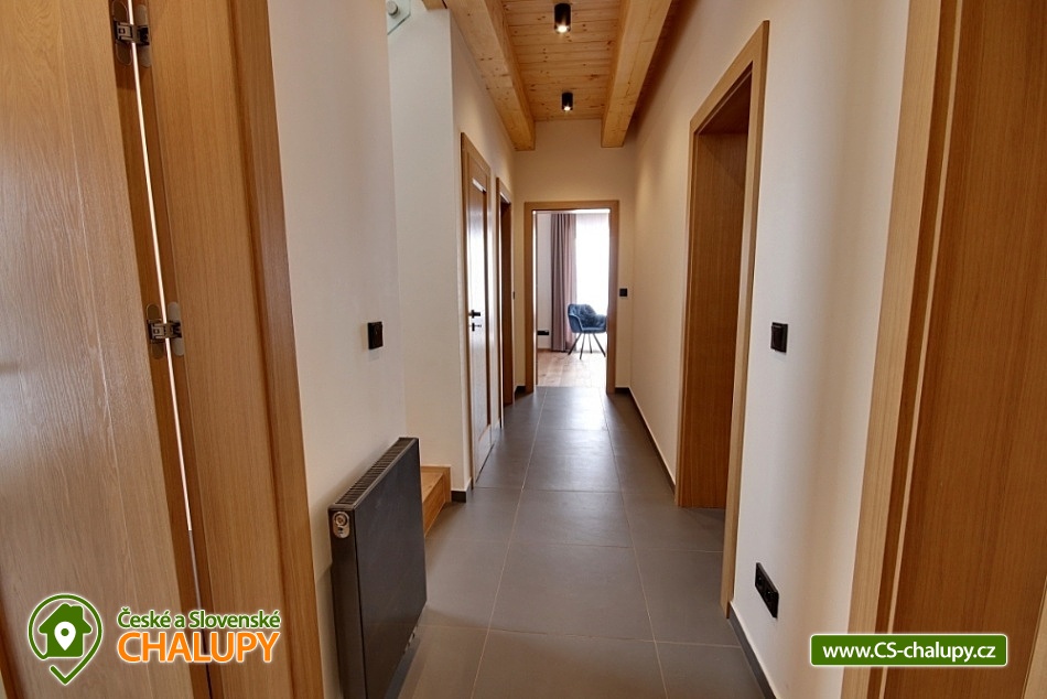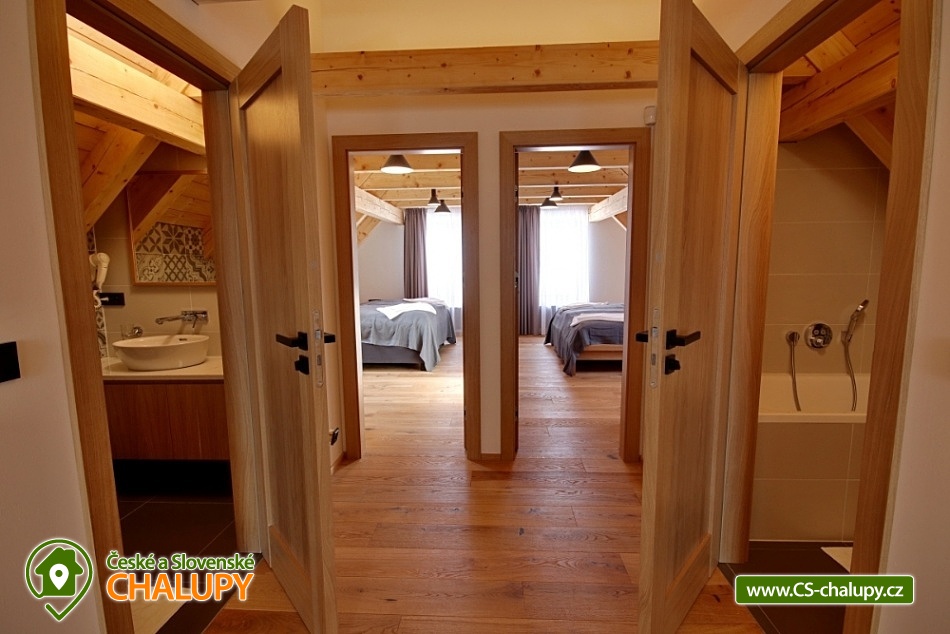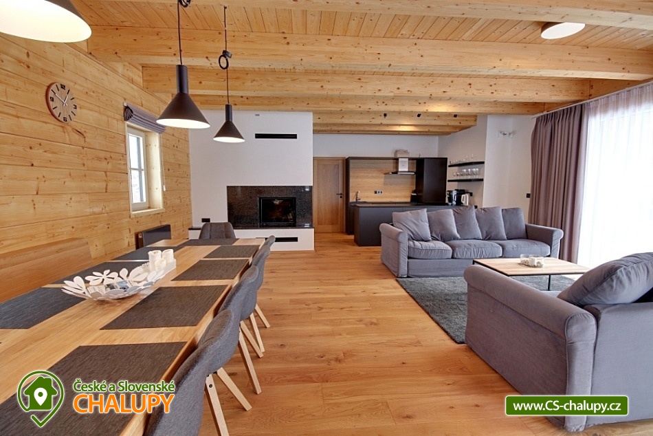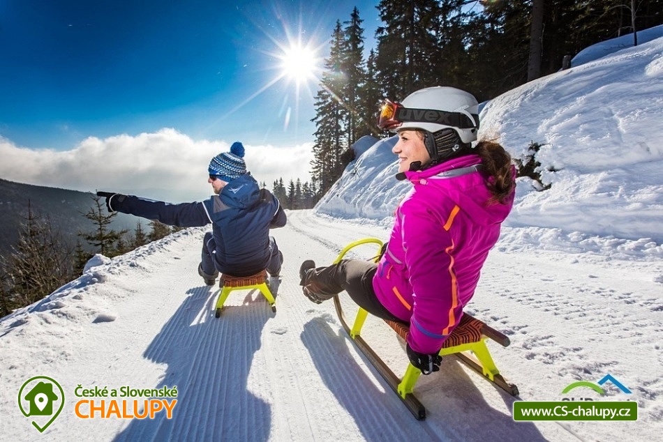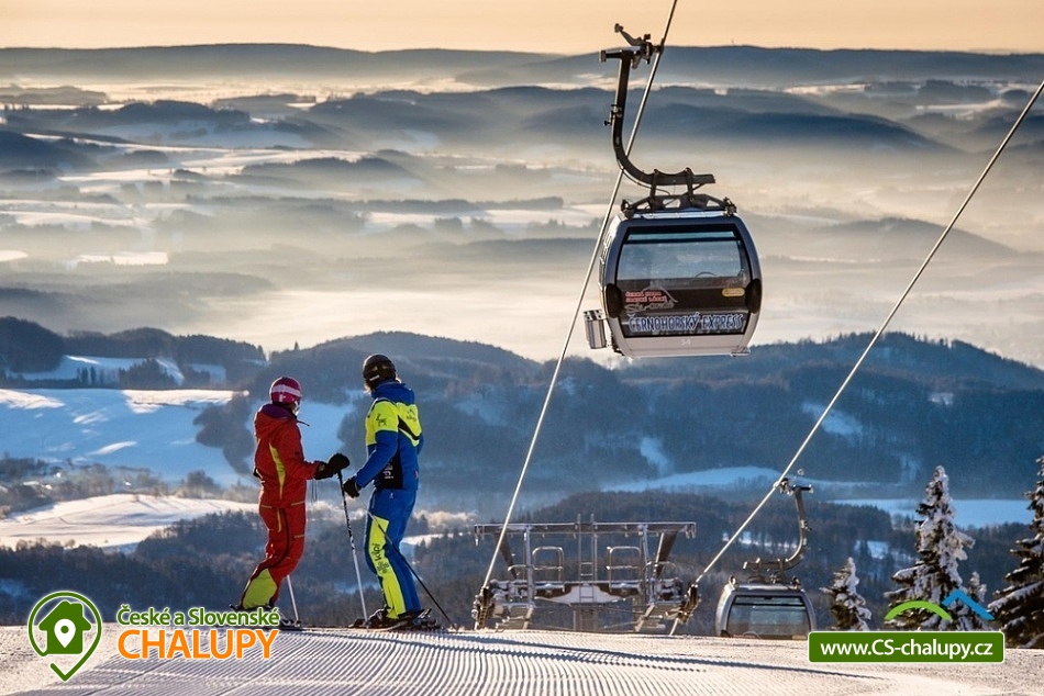 Cottage Cerny Dul - Cerna hora - Giant Mountains. On the ground floor there is a spacious lounge with fireplace, TV, seating area and fully equipped kitchen. On the ground floor is a bedroom with 2 single beds and 2 extra beds. On the ground floor is also a dressing room, bathroom with shower and toilet. On the underground floor of the cottage is a large Finnish sauna with a rest room (table, seating, deck chairs) and 2 showers. On the floor of the cottage there are a total of 4 bedrooms: 2x double, 1x double with cot and 1x double bedroom with 2 single beds. Upstairs there are 2 more bathrooms, 1 with shower, toilet and sink, in the second bathroom is a bath instead of shower. The cottage has an outdoor terrace accessible directly from the common room. Parking is available at the object. In winter, visitors to Cerny Dul SKIPARK Cerny Dul with 7.9 kilometers of ski slopes, with 10 lifts and 1 cable car. Other services include a ski school, a snowboarding school, a ski rental and a skibar. In summer, mountain visitors can walk through kilometers and kilometers of hiking trails with beautiful mountain scenery. The most interesting undemanding hiking trails include the route to Hrnčířská Boudy or Janské Lázně and then the cable car to Černá hora. Mountain bike enthusiasts will also come into their own. There is a dense network of marked cycling routes - such as Janske Lazne, Horni Marsov or Pec pod Snezkou. You can also go to Montenegro. Ski Resort Cerny Dul is characterized by wide ski slopes and modern equipped children's park for teaching skiing. Ski Resort Cerny Dul is a part of SKIRESORT CERNA HORA ie. of the ski region with the validity of the common ticket with the areas Černá hora Janské Lázně, Pec pod Sněžkou and Svoboda nad Úpou.