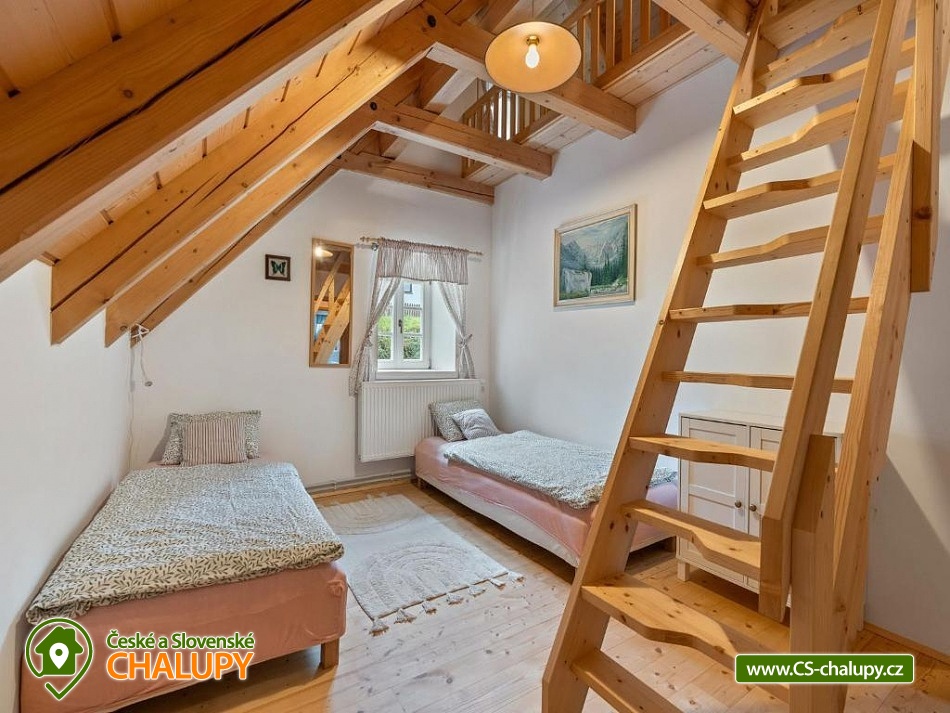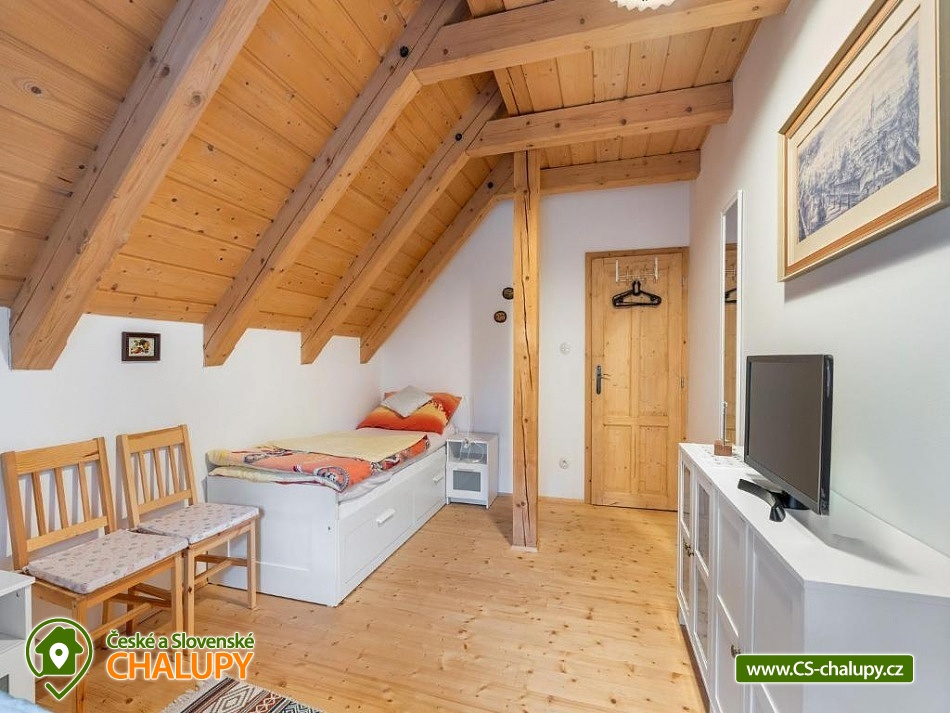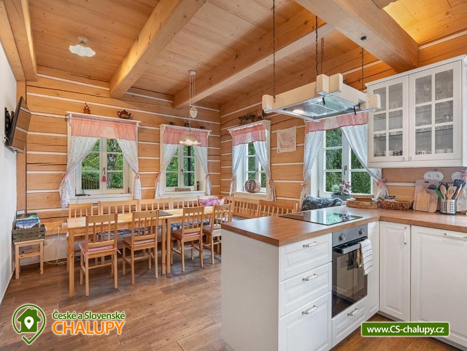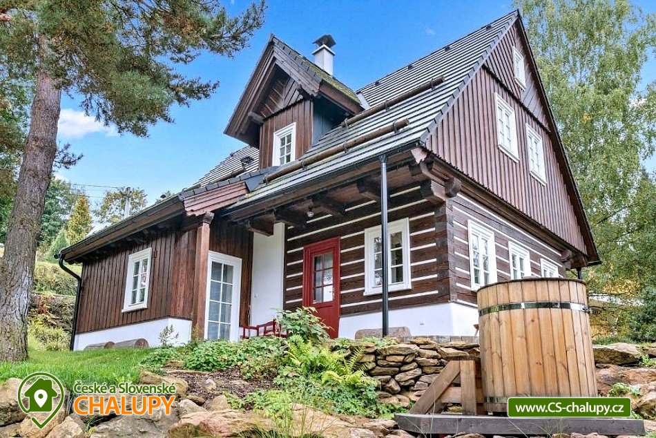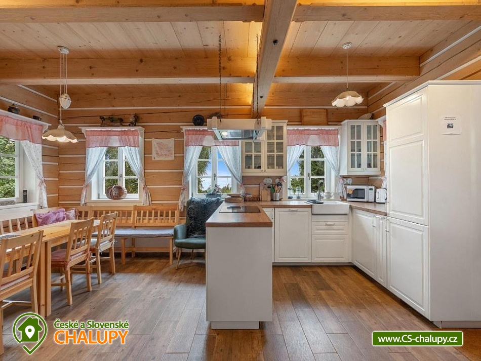Stylová roubenka s wellness (wellness s finskou saunou, ochlazovací sprchou a ochlazovacím venkovním bazénkem) a kachlovými kamny nedaleko lokality Kašperské Hory, poloha u obce Strašín a Nezdice na Šumavě. Chalupa u lesa s pozemkem 1600 m2 poskytuje ubytování pro až 14 osob ve 4 ložnicích. POPIS: 1. ložnice v přízemí (1x manželská postel), 2. Ložnice v patře (1x manželská postel + spaní pro 2 na hambálkách nad ložnicí), 3. Ložnice (2+2 rozkládací postele), 4. Ložnice (2x samostatná postel + 2x spaní na hambálkách nad ložnicí). Světnice v přízemí s plně vybavenou kuchyní (varná deska, trouba, mikrovlnka, kávovar, rychlovarná konvice, myčka, lednice, mrazák) a kachlovými kamny. K dispozici 2x koupena a 2x WC. Wifi internet. U chalupy zahradní domek na uložení kol, lyží apod. a venkovní ohniště. Parkování: 3 auta na pozemku, popř. také parkování u silnice nad chalupou. V okolí doporučujeme: přírodní koupaliště Nezdice na Šumavě, koupaliště Žihobce, Aquapark Sušice a Aquapark Horažďovice. Lanový park a Dětský lanový park Sušice. Půjčovna koloběžek na šumavském Javorníku. Strašínská jeskyně - jeskyně s jezírkem a pozoruhodnými mísovitými a hrncovitými prohlubněmi ve stropu je jediná větší krasová jeskyně v systému Sušicko - Strakonických vápenců. Hrad Kašperk a Stezka lesních her Kašperské Hory. Hrad Rabí, Prášilské jezero - ledovcové jezero. Lyžařské areály: Nezdice na Šumavě, Kašperské Hory, Javorník a Zadov - Churáňov. Těšíme se na Vás u nás.