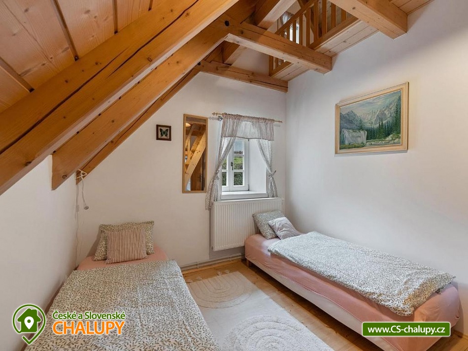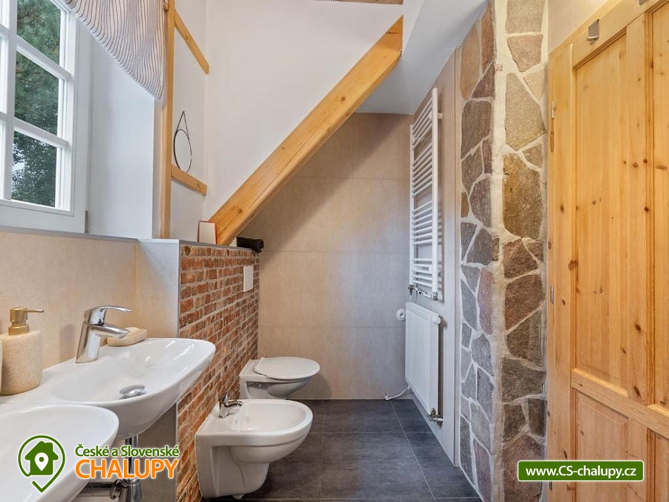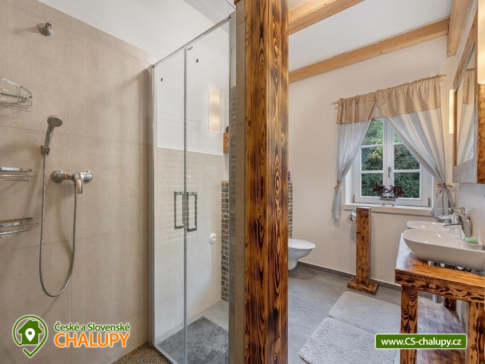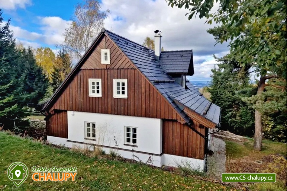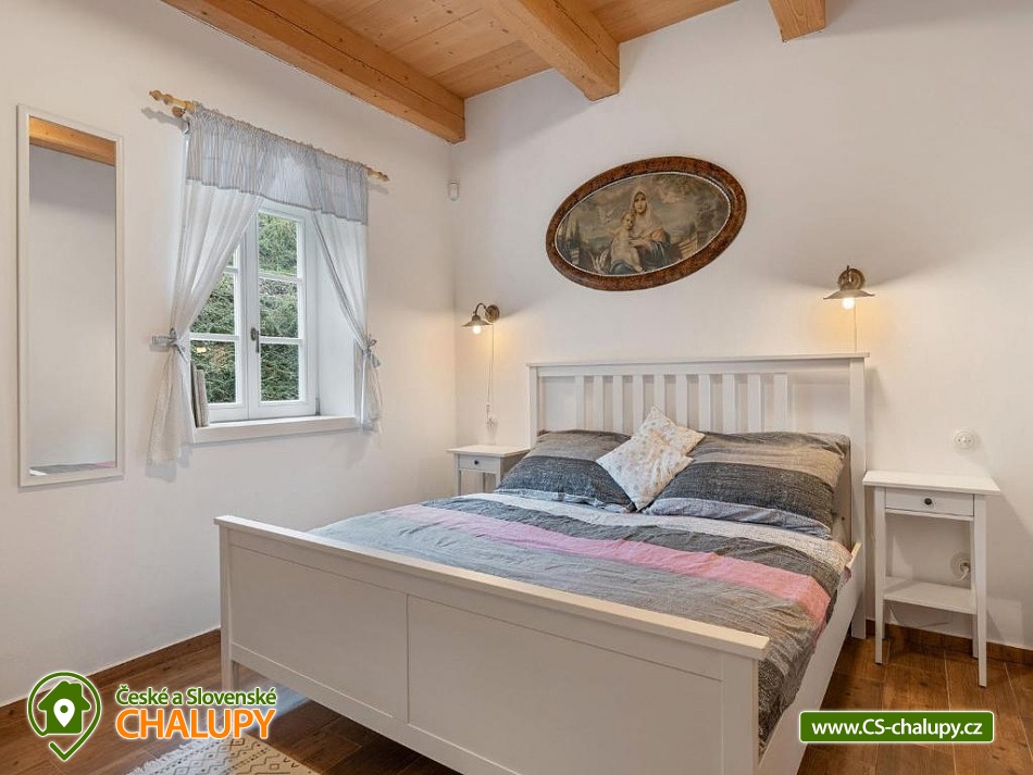 Stylová roubenka s wellness (wellness s finskou saunou, ochlazovací sprchou a ochlazovacím venkovním bazénkem) a kachlovými kamny nedaleko lokality Kašperské Hory, poloha u obce Strašín a Nezdice na Šumavě. Chalupa u lesa s pozemkem 1600 m2 poskytuje ubytování pro až 14 osob ve 4 ložnicích. POPIS: 1. ložnice v přízemí (1x manželská postel), 2. Ložnice v patře (1x manželská postel + spaní pro 2 na hambálkách nad ložnicí), 3. Ložnice (2+2 rozkládací postele), 4. Ložnice (2x samostatná postel + 2x spaní na hambálkách nad ložnicí). Světnice v přízemí s plně vybavenou kuchyní (varná deska, trouba, mikrovlnka, kávovar, rychlovarná konvice, myčka, lednice, mrazák) a kachlovými kamny. K dispozici 2x koupena a 2x WC. Wifi internet. U chalupy zahradní domek na uložení kol, lyží apod. a venkovní ohniště. Parkování: 3 auta na pozemku, popř. také parkování u silnice nad chalupou. V okolí doporučujeme: přírodní koupaliště Nezdice na Šumavě, koupaliště Žihobce, Aquapark Sušice a Aquapark Horažďovice. Lanový park a Dětský lanový park Sušice. Půjčovna koloběžek na šumavském Javorníku. Strašínská jeskyně - jeskyně s jezírkem a pozoruhodnými mísovitými a hrncovitými prohlubněmi ve stropu je jediná větší krasová jeskyně v systému Sušicko - Strakonických vápenců. Hrad Kašperk a Stezka lesních her Kašperské Hory. Hrad Rabí, Prášilské jezero - ledovcové jezero. Lyžařské areály: Nezdice na Šumavě, Kašperské Hory, Javorník a Zadov - Churáňov. Těšíme se na Vás u nás.