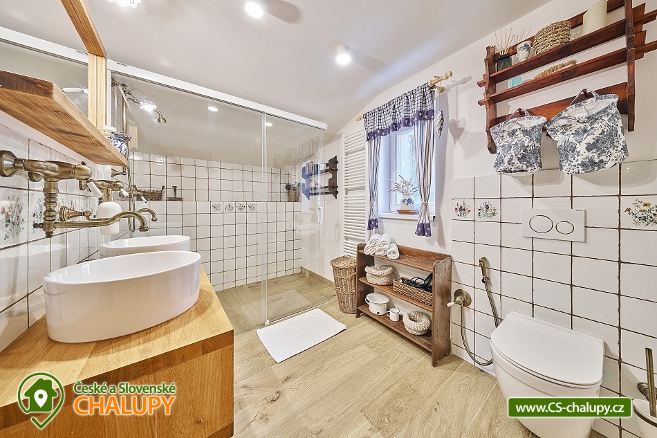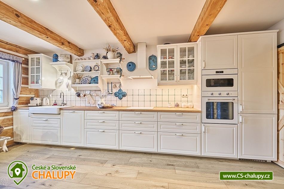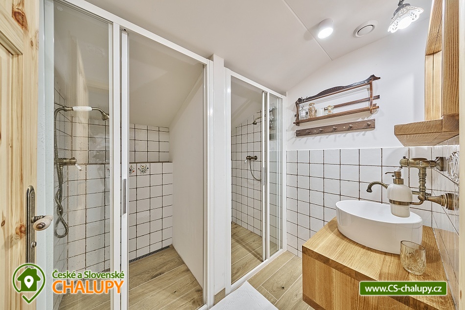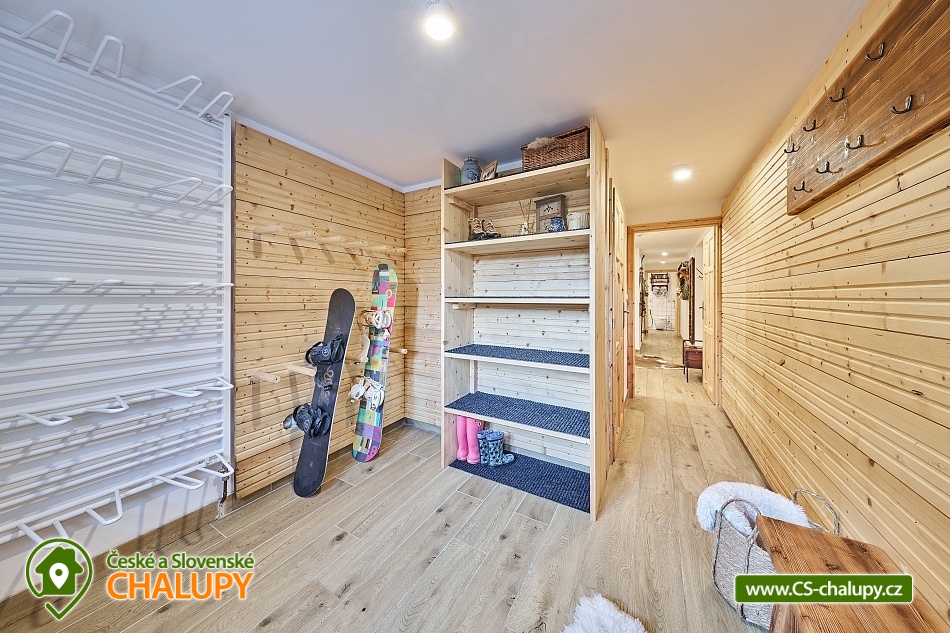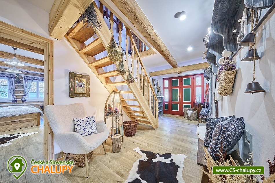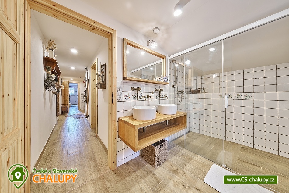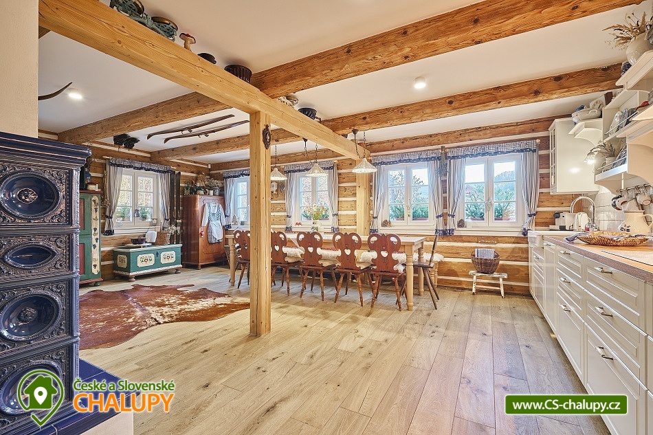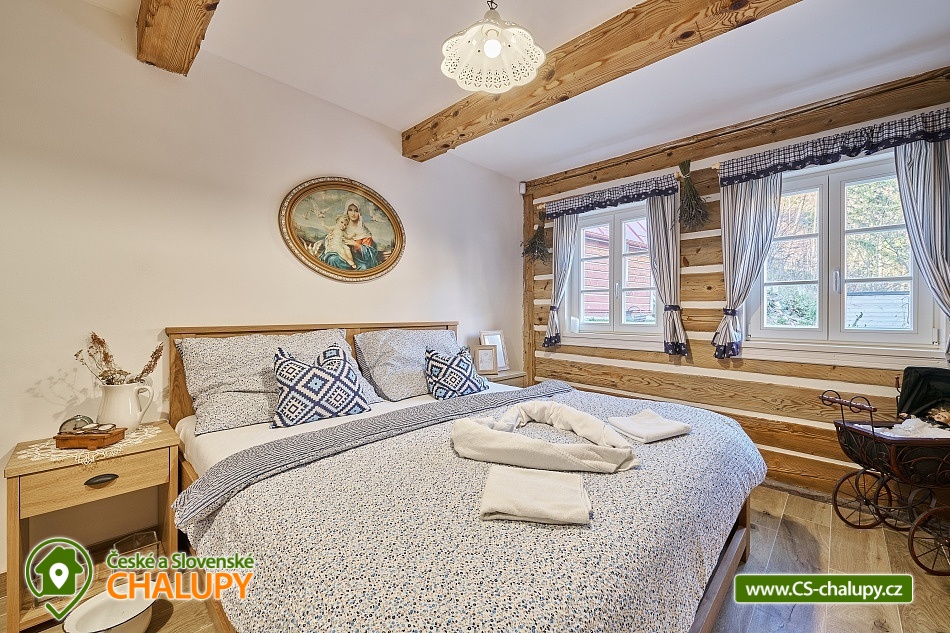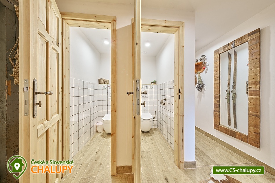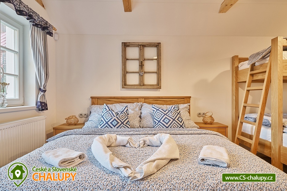 Comfortable log cabin with sauna and tiled stove Horní Maršov - Temný Důl. Rent a luxurious newly renovated cottage for up to 18 people located in the village of Horní Maršov - Temný Důl. The cottage has a fully equipped kitchen: oven, dishwasher, 4-burner ceramic hob, toaster, kettle, microwave, freezer and electric coffee maker. The living room has a TV with a tiled stove and a dining (social) table. On the ground floor there is also a room with 5 beds and a room with 1 double bed and 1 sofa bed. On the upper floor there is an open living room with TV, a room with 2 bunk beds, 1 French bed and 1 double bed. Furthermore, a room with 2 bunk beds, 1 French bed and 1 double bed. There is also a washing machine, dryer, high chair for children, cot and Wi-Fi internet. There are a total of 4 toilets and 2 bathrooms in the log cabin. There is a sauna with a cooling pool, outdoor seating and a fireplace at the cottage. In the area we recommend: SUMMER - Sněžka Cable Car - Pec pod Sněžkou, Černá hora Cable Car - Janské Lázně (hiking, scooters, children's amusement park), Relaxpark - Pec pod Sněžkou (bob-sledding track, Monkey park, slides, trampolines, pulley ride), Treetop Trail in Janské Lázně, Mladé Buky - family area for families with children, Dvůr Králové nad Labem ZOO, Adršpach and Teplice Rocks. WINTER - The largest ski area in the Czech Republic: Černá hora (+ sledding route) - Pec pod Sněžkou (+ bobsledding track) - Velká Úpa - Černý důl - Svoboda n. Úpa. Horní Malá Úpa (ice rink), Mladé Buky (bob-sled track) and the Krkonoše ski route for cross-country skiing enthusiasts. We look forward to seeing you at our place.