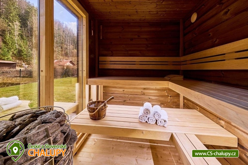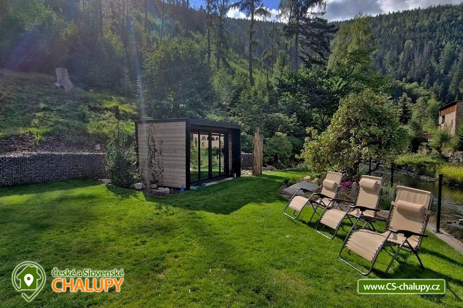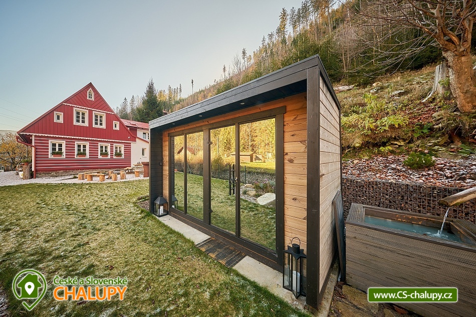 „Log cabin with sauna and tiled stove Horní Maršov.“
