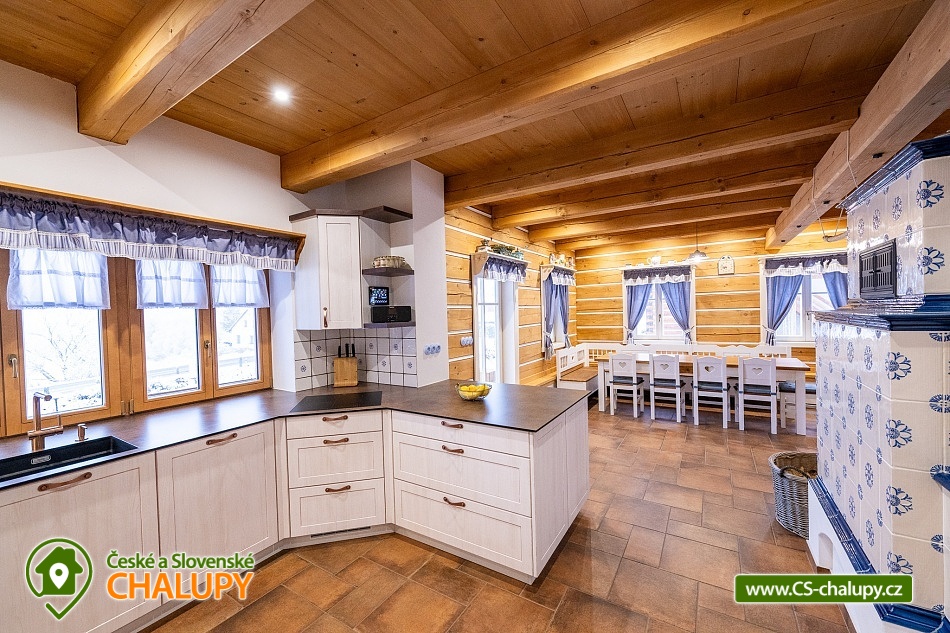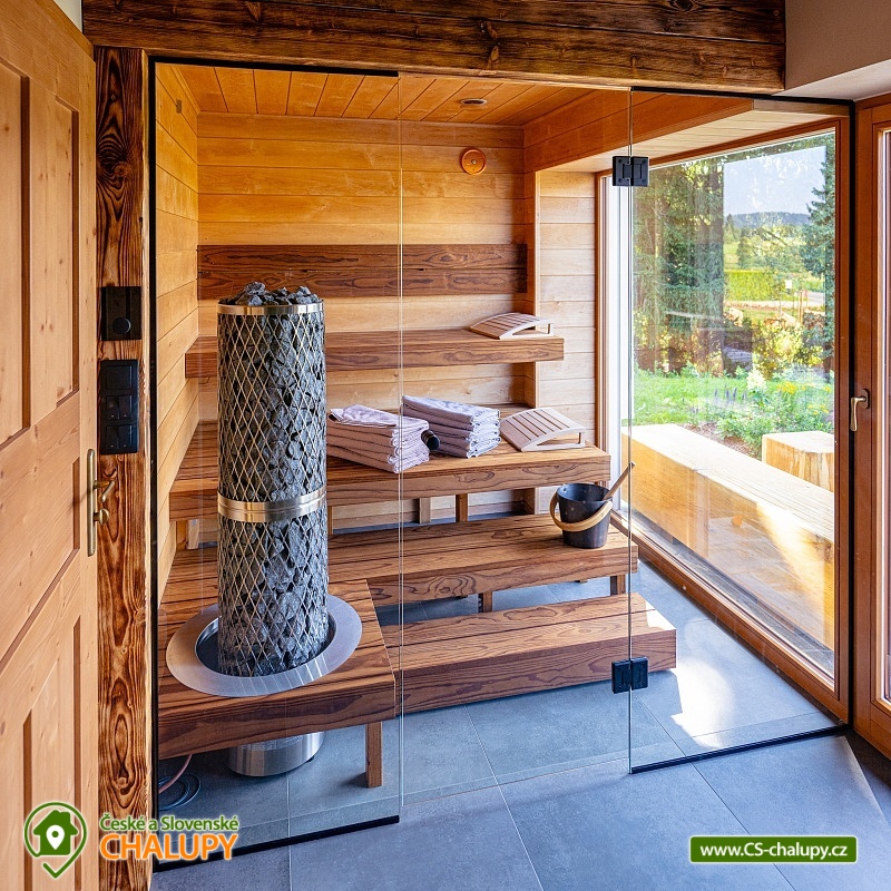 Log cabin with sauna in Šumava - stylish and luxuriously equipped log cabin with tiled stove in a quiet part of Šumava, located near the Boubínský Prales and Bavarian Forest National Nature Reserve. The cottage stands on the edge of the forest, in a place where you can fully enjoy the silence, clean mountain air and closeness to nature. It is an ideal choice for families and groups of friends who are looking for privacy, comfort and quality facilities all year round. The capacity of the log cabin is up to 10 people (8 beds and 2 extra beds). There are three separate bedrooms and three bathrooms with toilets, which ensures high comfort even when the property is fully occupied. The dominant feature of the log cabin is a spacious living area with a dining area and a fully equipped kitchen. A large tiled stove with a bed creates a pleasant atmosphere all year round, which invites you to sit after returning from trips or skiing. For perfect relaxation, guests also have access to a Finnish sauna. The cottage includes a fenced ornamental garden with seating by the fireplace. Right next to the log cabin there is a separate building with a covered seating area and a barbecue, suitable for evening gatherings even in inclement weather. Parking is available directly at the property for 4 cars. There is also a charger for electric cars. Guests can safely store bicycles, skis or other sports equipment in the garage. Surroundings: Houžná and Lenora are an excellent starting point for exploring Šumava - hiking trips, cycling trails, cross-country skiing circuits and quiet corners of deep forests are literally within reach. In the summer months, the Teplá Vltava River, popular with paddlers, also attracts trips. The accommodation includes the aktivCARD Bayerischer Wald, which brings significant savings not only in winter but also in summer. In the winter season, it allows 4 hours of free skiing per day in selected resorts in the Bavarian Forest. In the summer, guests will appreciate free admission to most attractions in the Bavarian Forest, such as cable cars, swimming pools, museums and nature and amusement parks. The log cabin offers a combination of traditional Šumava architecture, a peaceful environment and modern comfort. It is a place where you can relax, slow down and enjoy Šumava and the Bavarian Forest to the fullest - in every season. We look forward to seeing you.