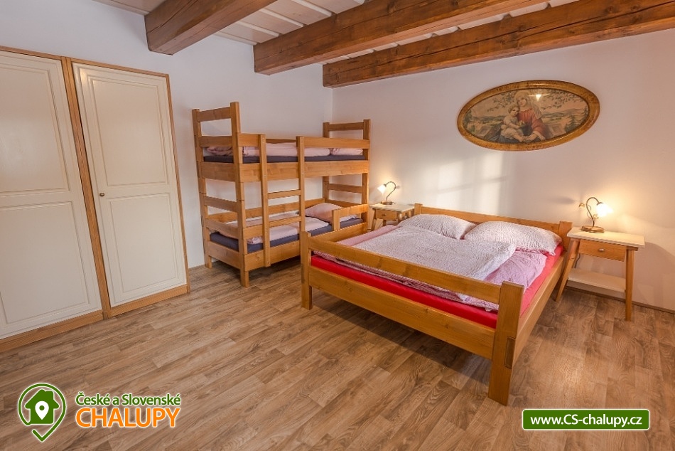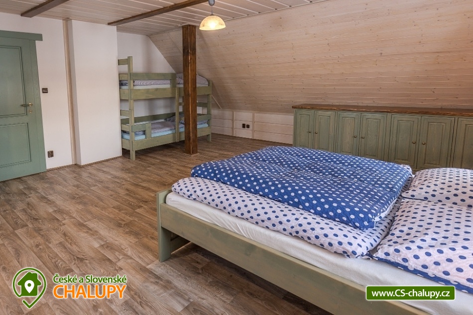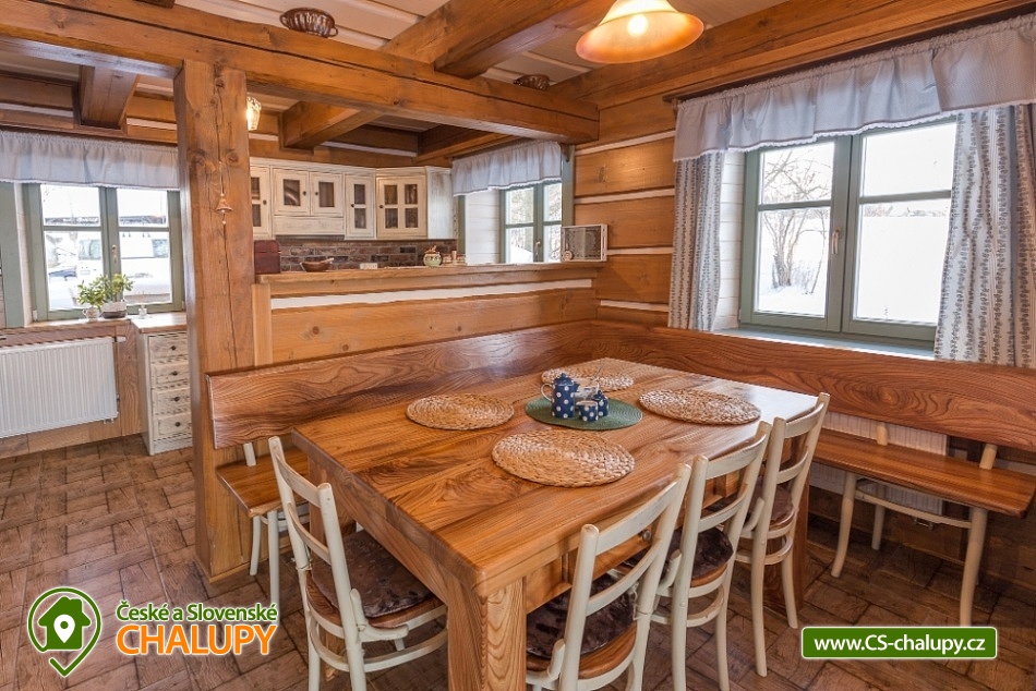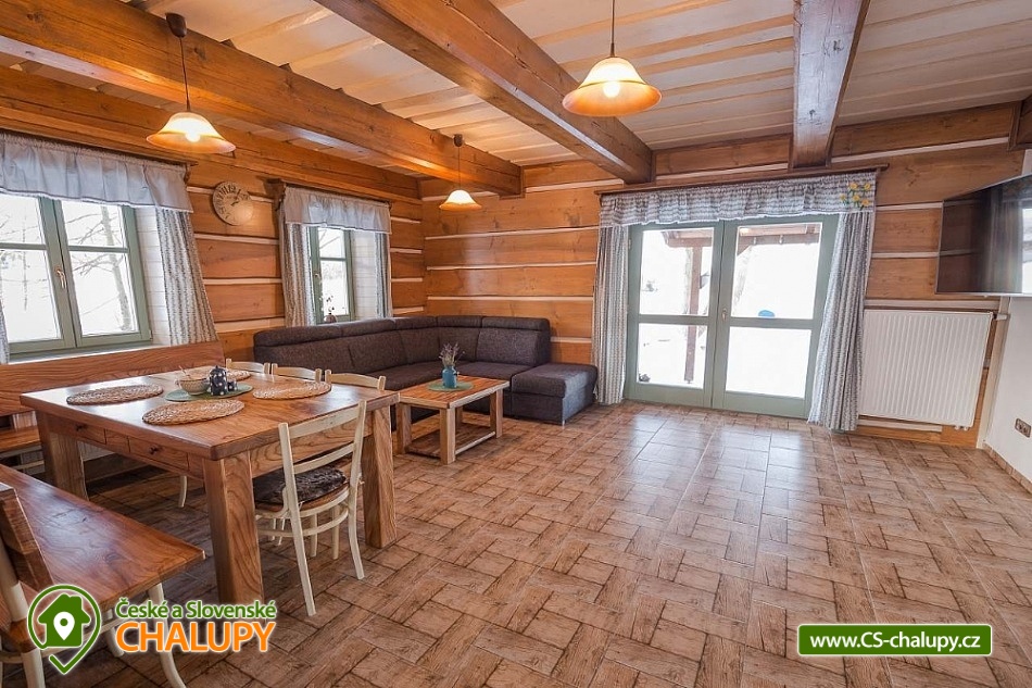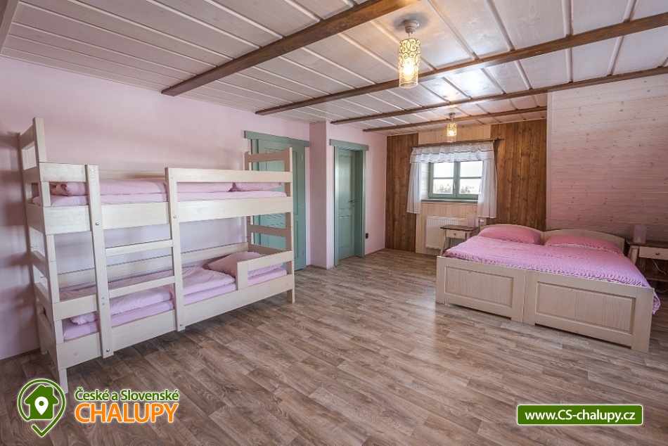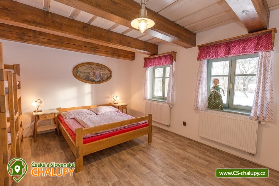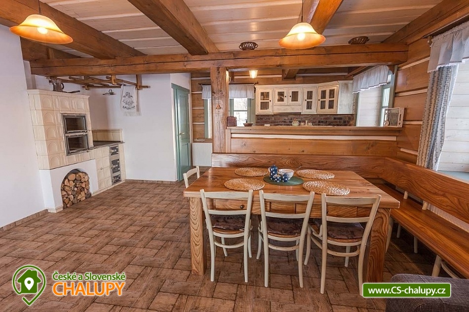 Roubená chalupa Toulovcovy Maštale se saunou a kachlovými kamny se nachází na okraji obce Martinice v krajinné oblasti Železných hor, v severní části Vysočiny obklopena krásami přírody. Chalupa je vzdálena 5 km od přírodní rezervace Maštale - tato přírodní rezervace chrání pískovcové skalní město Toulovcovy Maštale. Chalupa k pronájmu poskytuje ubytování pro až 18 osob ve 3 ložnicích. POPIS: Ložnice: přízemí (manželská postel a dvoupatrová postel), podkroví - 7 lůžek (dvoulůžko, dvoupatrová postel, 1x samostatné lůžko, 2x samostatné výsuvné lůžko), podkroví - 7 lůžek (dvoulůžko, dvoupatrová postel, 1x samostatné lůžko, 2x samostatné výsuvné lůžko) a možnost zajistit dětskou postýlku. Sociální zařízení - Koupelny: přízemí (vana, toaletní stolek s umyvadlem a sauna), patro (sprchový kout + WC v pokoji), patro (sprchový kout + WC v druhém pokoji). Vytápění: elektrokotel + krbová vložka. Součástí roubenky je plně vybavená kuchyň s rychlovarnou konvicí, ledničkou s mrazákem, nádobím, myčkou, sklokeramickou varnou deskou, elektrickou a mikrovlnnou troubou. Světnice je vybavená televizí, krbem a posezením. V létě je možné využít posezení na terase se zahradním nábytkem, ohniště a gril. Pro nejmenší je připravena houpačka, pískoviště, trampolína. V letním období je chalupa jako ideální výchozí bod pro pěší turistiku či cykloturistiku. Na své si přijdou i houbaři. V letním období je chalupa jako ideální výchozí bod pro pěší turistiku či cykloturistiku. Můžete vyšplhat na jednu z blíže situovaných rozhleden, která nese název Terezka. Nedaleko obce se nacházejí 4 lyžařské areály, nabízí lyžařské vleky dětské vleky (tzv. lanové), lyžařskou školu, půjčovnu lyžařského vybavení, občerstvení s útulným posezením. Okolí Martinic nabízí spousty sportovního vyžití. Na kole či pěšky můžete nahlédnou do skalního městečka Toulovcovy Maštale či navštívit celosvětový unikát Peklo čertovina. Zkrátka v našem kraji se nudit nebudete! Těšíme se na Vás u nás.