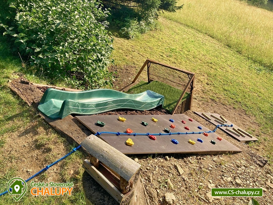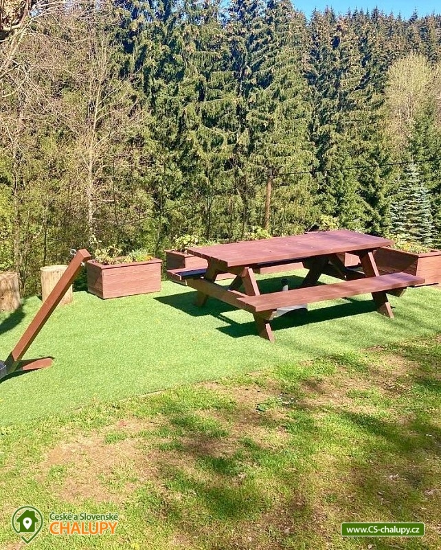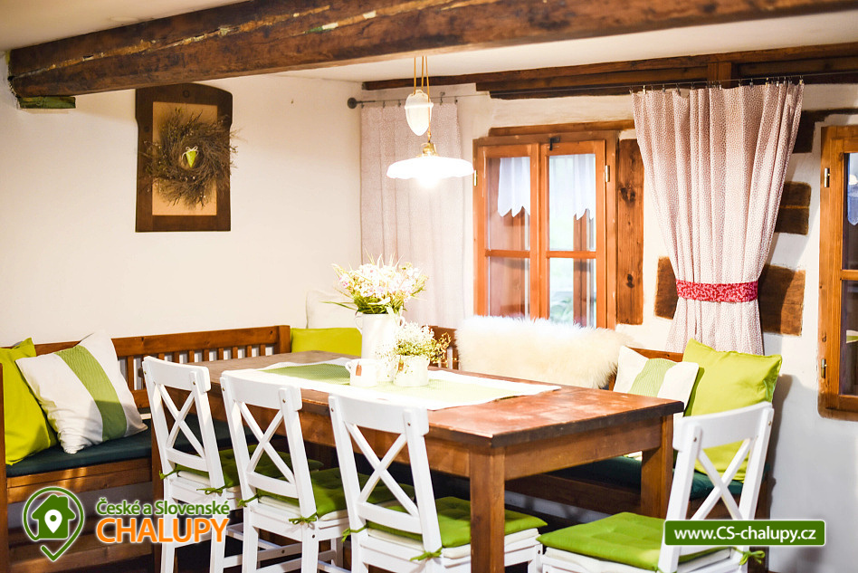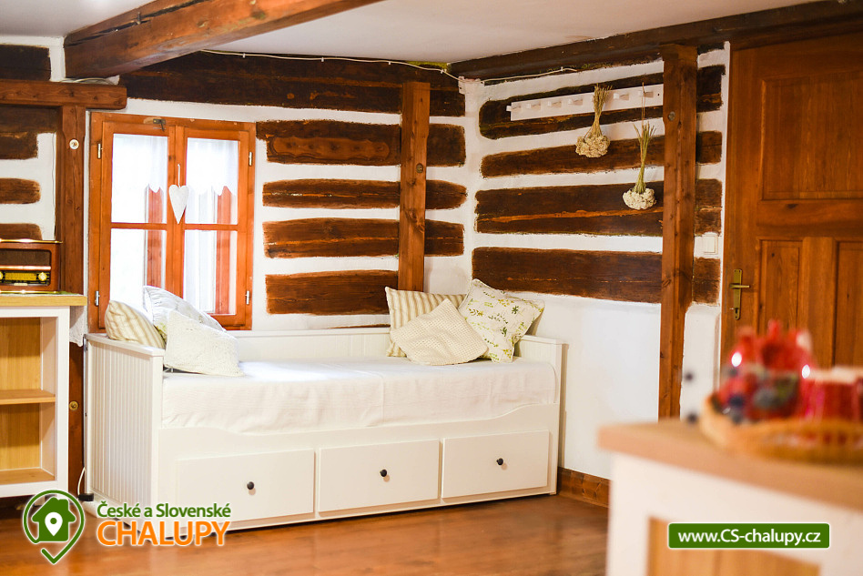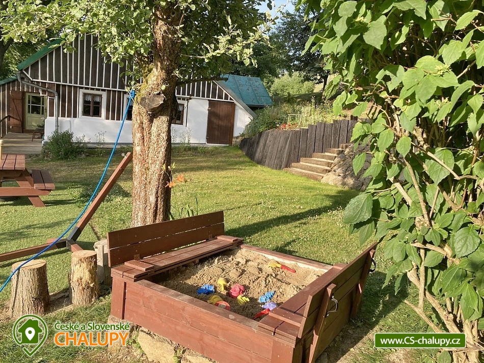 The picturesque Roubenka Jestřabinka is located in the village of Roudnice, in the fairytale landscape of the Giant Mountains, on the ridge between the Jizerka valley and the Roudnické stream. A formerly important road connecting the towns of Jilemnice and Rokytnice nad Jizerou passes through the center of the village, where there used to be a glass factory. Roudnice is an ideal starting point for cycling or hiking tours in the protected landscape of the KRNAP region and also a paradise for cross-country skiers and downhill skiing enthusiasts. Roubenka Jestřabinka offers accommodation for 8 people, a total of 6 fixed beds and 2 extra beds are available. There is a bunk bed and two single beds in a separate four-bed bedroom. A double bed and a sofa bed for two people are available in the adjacent living room, known as the living room. All beds are equipped with quality mattresses and anti-allergic blankets and pillows. The living room also includes a dining table and a fully equipped kitchen, which is dominated by a beautiful tiled stove with hot plate and oven. There is also an electric two-burner stove, microwave oven, fridge, kettle, toaster, coffee percolator, kitchen equipment and washing utensils. Board games are available for rent. The social facilities include one bathroom with shower and toilet. A grassy garden extends around the log cabin, where outdoor seating is available. There is a grill and a fire pit. Children can look forward to the sandpit and climbing frames. A woodshed with a supply of chopped firewood is also available. You can park directly at the building. In the surroundings of the log cabin, hiking, cycling, swimming, mushroom picking, cross-country skiing and skiing are possible. Swimming options include, for example: Jilemnice swimming pool, Poniklá - Homole v Dolích swimming pool, Jablonec nad Jizerou swimming pool, Labská dam, Valteřice swimming pool, Mříčná swimming pool, Jilemnice swimming pool, Vrchlabí aqua center, Špindlerův Mlýn aqua park, Vejsplachy pond, etc. nearby ski resorts are available: Aldrov - Vítkovice with the boarding station of the Prezidentský express cable car, Vurmovka, Janova Hora, Poniklá - Homole, Benecko, Modrá Hvězda - Rokytnice nad Jizerou, Kamenec - Jablonec nad Jizerou, Kozinec - Jilemnice, Krausovy boudy, Majasport Labská and more. The Museum of Krkonoše crafts and Rautis - the production of hand-blown pearls (UNESCO) in the village of Poniklá, the educational trail of the painter František Kaván, the Krkonoše museum in Jilemnice, Harrachov, Vítkovice or Špindlerův Mlýn are alluring for trips in the area. We look forward to seeing you here.