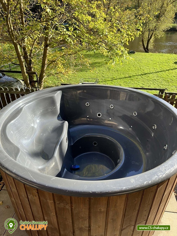 Fishing holiday - wellness cottage South Bohemia. Private wellness (sauna and heated hot tub with jacuzzi) and fishing right under the windows on the Lužnice River (a punt is also available). The cottage can accommodate up to 8 people in 2 bedrooms. A stylish holiday cottage near the village of Dobronice u Bechyně is located in a quiet location just a few steps from the Lužnice River. An ideal combination not only for fishing enthusiasts, couples and small groups of friends who want maximum privacy and their own wellness just for themselves. The dominant feature of the property is an outdoor sauna with a panoramic view of the river, from which you can go straight down to the water. Seating on the terrace, fireplace and barbecue area create a great setting for evenings by the river. Although you are in nature, the cottage offers full facilities for a comfortable stay. DESCRIPTION: In the attic, the first bedroom with a double bed, storage space and a balcony with a view that will take your breath away - the river, forests and peace. In addition, there is a stylish studio with a seating area and beds for four adventurers and another balcony where you can enjoy coffee or wine under the open sky. Upstairs is a second bedroom with separate beds. There is also a living room with a fireplace, where you can watch the blazing fire in the evening, and a kitchen with a terrace that calls for breakfast in the fresh air. On this floor you will also find a toilet with a sink. The entrance to the cottage is via a veranda with outdoor seating. In the basement there is a shower, boiler room and garage. Central heating and a solid fuel boiler ensure that the cottage is pleasantly warm. Parking right next to the cottage for two cars, the driveway is dusty and unpaved. The surroundings of the cottage are ideal for walking and cycling trips, ideal for paddlers and historical expeditions (Bechyně, Tábor). The proximity of the water, privacy and a sauna with a view of the river make the cottage an exceptional place to relax in South Bohemia. In the immediate vicinity of the cottage there is a meadow, ideal for sports activities or ball games. Swimming in the Lužnice River is possible thanks to a bridge with a ladder into the water. You also have a punt for water fun and fishing. Next to the cottage there is a basketball hoop for further entertainment. In the vicinity you can visit the ruins of the castle in the village of Dobronice u Bechyně, a beautiful viewpoint above the river or walk along the marked red tourist route and the Na Onen Svět nature trail. In the wider vicinity there is the Stádlecký Chain Bridge and Bechyně Chateau. We look forward to seeing you there.