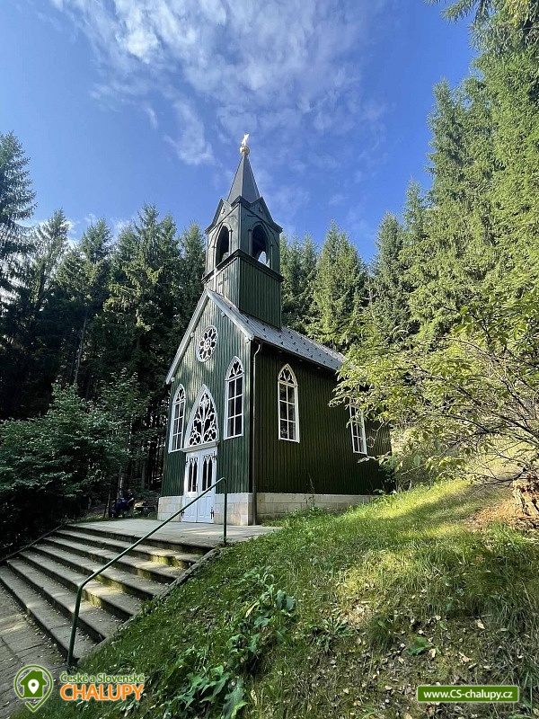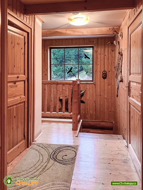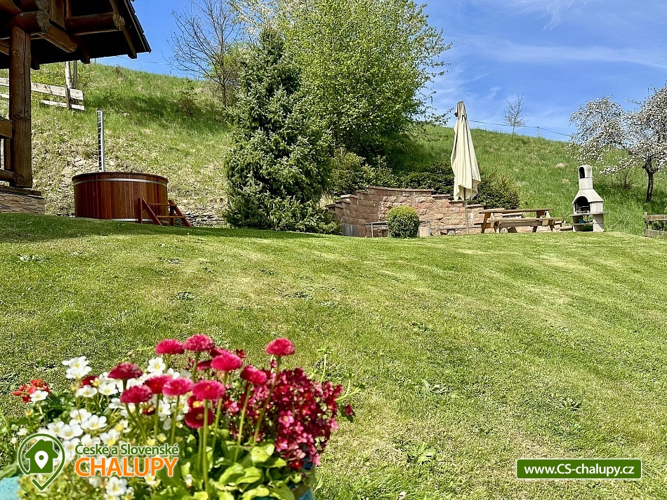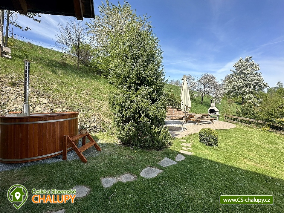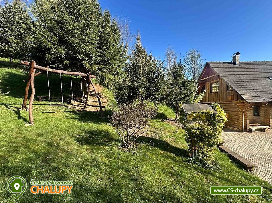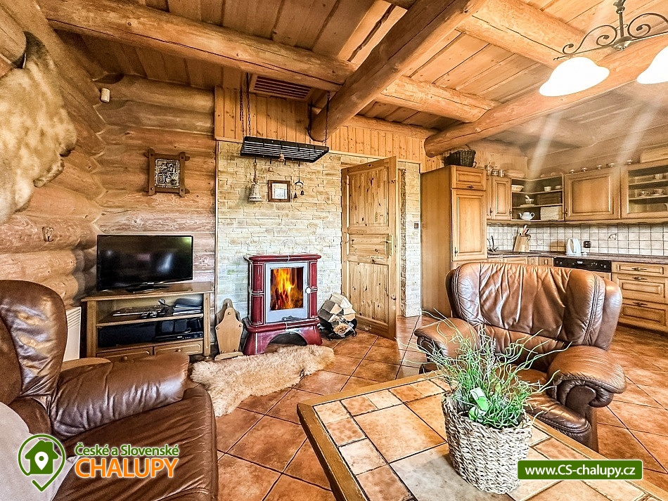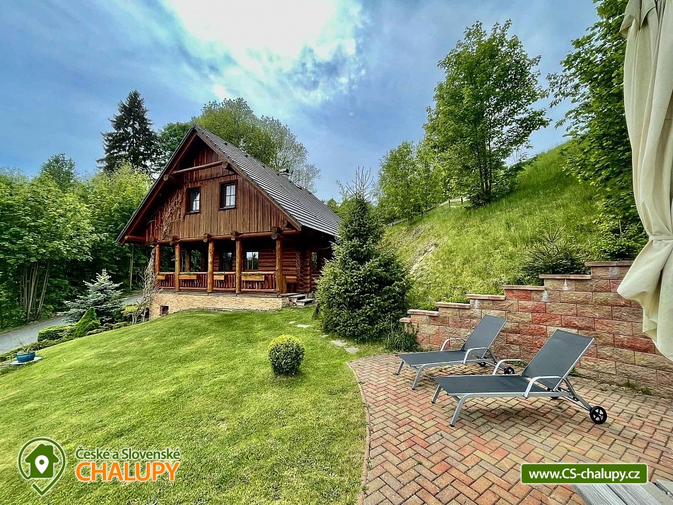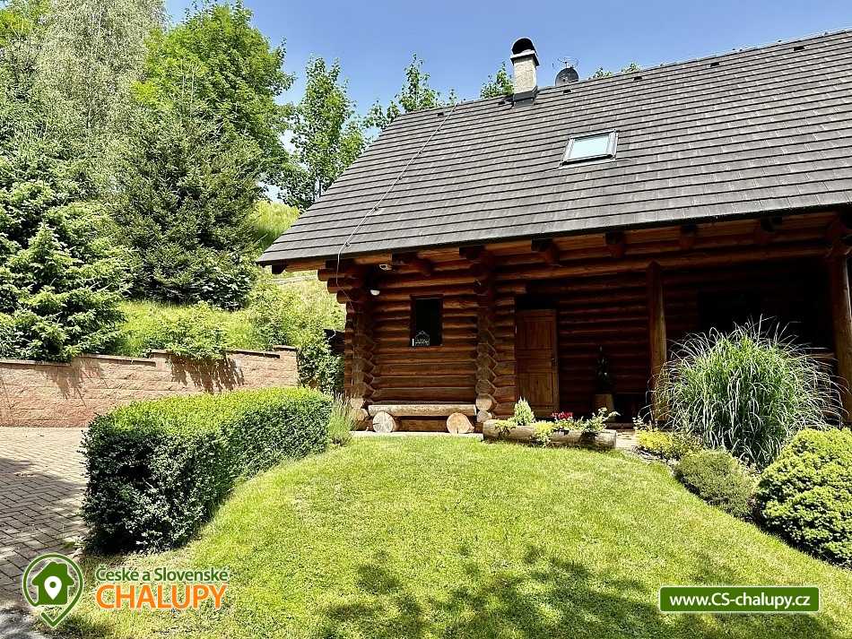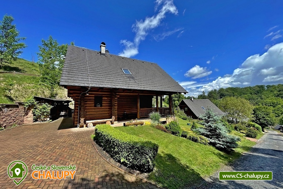 Karolínka log cabin with the scent of wood in a beautiful setting - at the very end of the peaceful village of Maršov nad Metují. The surroundings are ideal for hiking, cycling and mountaineering (Adršpach region, Teplické skály). The log cabin for rent provides accommodation for up to 10 people in 3 bedrooms. DESCRIPTION: main Living room - spacious sofa, fireplace, TV, SAT, DVD + home cinema, WIFI. Kitchenette - fully equipped with dishes, refrigerator, freezer, dishwasher, microwave, electric hob, hot air oven and dining area with corner bench. Lower bathroom - toilet, shower box. Upper bathroom - toilet. Rooms - upstairs there are two four-bed rooms and one double room. Heating - fireplace stove with hot air and electric heaters. Outdoor seating - covered terrace with benches and tables, outdoor fireplace with table and benches plus children's corner with swings. Cellar - for storing bicycles, etc. Parking - 3 x spaces on the property near the cabin. The cabin is furnished to meet all comfort and convenience for all guests. Experience for yourself the feeling of pleasant coolness on hot summer days, and on the contrary, on frosty winter days the feeling of an amazing warm atmosphere, real comfort in a real cabin. An evening sitting by the fireplace, perhaps with a bottle of good red wine, will warm you up and conjure up an unforgettable moment for all romantics. Surroundings: The near and far surroundings of the cabin offer great opportunities for hiking, cycling, mountaineering, horse riding, fishing and in winter skiing. There is a cycle path 200 m above the cabin, which can also be used for in-line skating. Trips - Adršpach region - Teplice rocks, Broumovské rocks, Jiráskovy rocks, Ostaš table mountain with rock towns, etc. It is also possible to go for cheap shopping to Poland - Kudowa Zdroj. Adršpach region - Teplice rocks (18 km), Jiráskovy rocks with Bischofstein castle (8 km), Křížový vrch (8 km), Rozkoš water reservoir (22 km), Stárkov viewpoint (1 km), Ostaš table mountain (3 km), Jiráskův Hronov (7 km) and Grandma's Valley - Ratibořice (27 km). We look forward to seeing you.