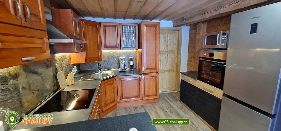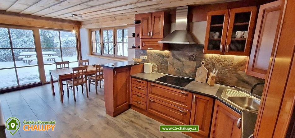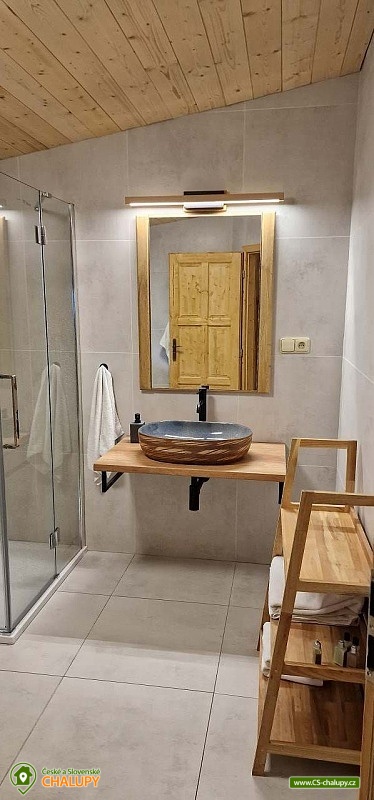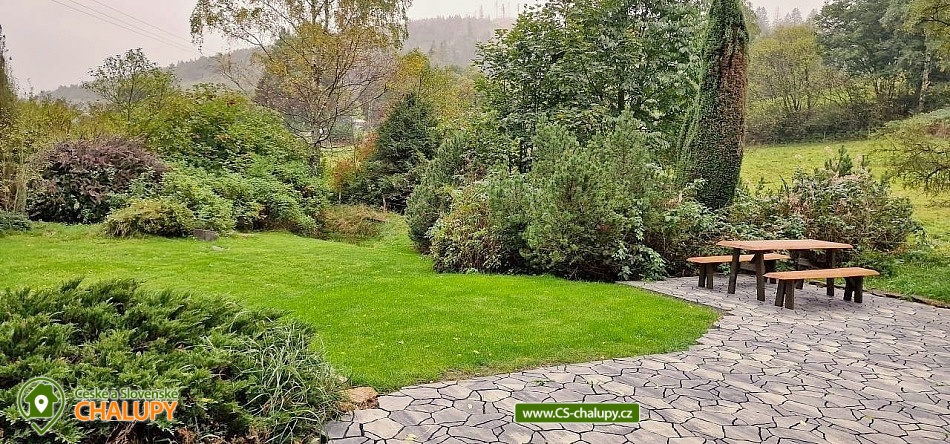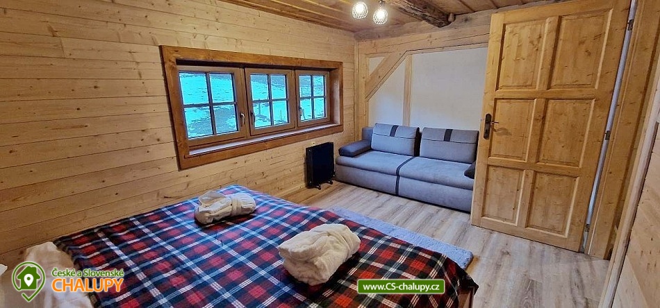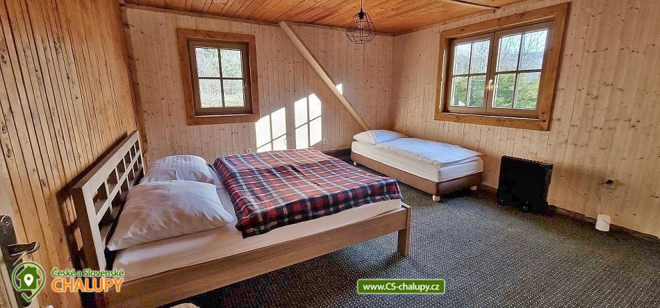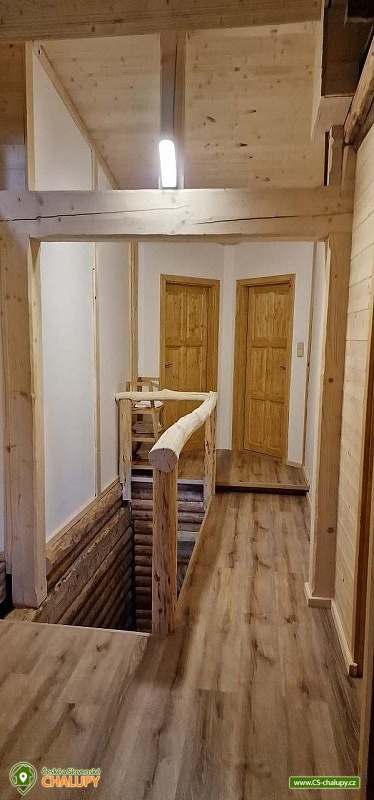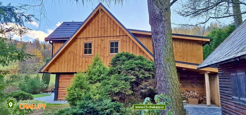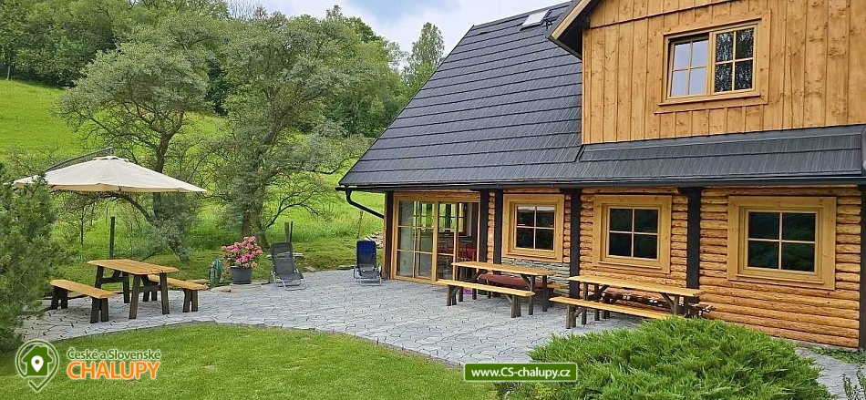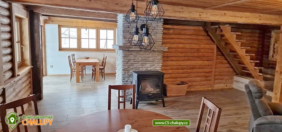 The modernly renovated Tis Log Cabin with a swimming pool and sauna is located in the lower part of the village of Heřmanovice in the beautiful surroundings of the Jeseníky Mountains. The land consists of an ornamental garden with a natural pond, and is surrounded by mature shrubs and trees forming a quiet relaxation zone with a feeling of semi-solitude. You can look forward to beautiful views of the surrounding pastures and hills. The log cabin offers accommodation for 12 people in 4 bedrooms. The first two bedrooms have a double bed. An extra bed or a children's wooden cot can be arranged in both upon request. The other two bedrooms are equipped with a double bed with the possibility of separating the beds from each other and a bunk bed. You can spend time together in the living room with a fireplace and a sofa. The room is connected to a fully equipped kitchen (induction hob, oven, microwave, dishwasher, fridge with freezer, kettle, lever coffee maker, electric coffee grinder, toaster and vacuum cleaner) with a dining table. There is a TV - magenta + HDMI for connecting multimedia (in the room) and a Bose SoundLink Bluetooth speaker can be borrowed for listening to music. The sanitary facilities include one separate toilet and one bathroom with a Finnish sauna, shower, designer sink and exit to the quiet area of the outdoor terrace on the ground floor. Upstairs there is a bathroom equipped with a designer sink, shower, bidet and toilet. The Finnish sauna is designed for 3 people and bathrobes and towels are available. Heating is provided by modern fireplace stoves with side heating connected to a stone chimney with heat accumulation. Underfloor heating is installed in the kitchen with dining room, in the hall, in the sauna with a lower bathroom and in the upper bathroom. The rooms have electric oil radiators with independent regulation. WIFI internet connection is available throughout the building. The cottage stands on a flat plot and is surrounded on two sunny sides by a tastefully paved terrace with two outdoor seating areas, one of which includes a relaxation area with an exit from the sauna. Blankets, a gas infrared heater, a fireplace with barbecue equipment and a portable grill are available. In the summer months, you can enjoy a circular above-ground pool 5.5 m x 1.2 m with water heating. The building includes a storage room for bicycles and skis. Parking is available directly at the building. In the vicinity of the log cabin, there is the possibility of hiking, cycling, swimming, mushroom picking, fishing, skiing and cross-country skiing. There is a riding stable nearby. Swimming options include: Karlova Studánka swimming pool, Vrbno pod Pradědem - ponds, Albrechtice swimming pool, Zlaté Jezero, Jeseník swimming pool - Priessnitz, etc. Nearby ski resorts are available: Horní Údolí, Zlaté hory - Příčná, U Pekina - Dolní Údolí and others. There are also machine-maintained cross-country trails in the vicinity: Rejvíz, Vrbno pod Pradědem - circuits, Karlova Studánka, Hvězda or Suchá Rudná, etc. For trips in the vicinity, Karlova Studánka, Zlaté Hory - gold panning, the African Deer Museum, the bobsleigh track or the Vrbno pod Pradědem Skate Park, Linhartovy Chateau or Praděd are attractive. We look forward to seeing you there.