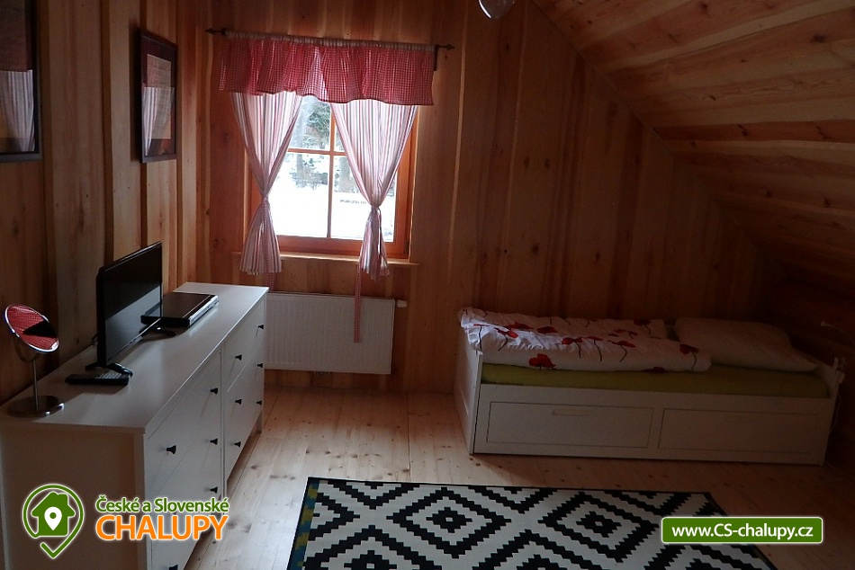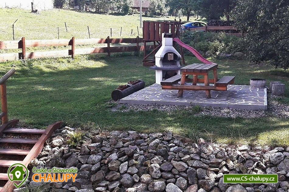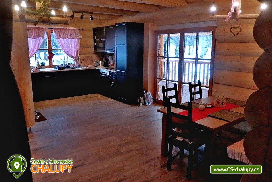 Log house Lazny - Strašín - Kašperské Hory. Rental of log cabins - village Strašín, part of village Lazny. The cabin has a large living room with a kitchen and a dining room and an adjoining summer terrace, 4 bedrooms with 9 fixed beds, where 2 beds are folding, the maximum number of people that can accommodate them is 11. Then we have two bathrooms with shower cubicles, WC with bidets. The living room has a TV with satellite and DVD. Each bedroom has a TV with DVD player. The kitchen is equipped with all the conveniences: glass-ceramic plate, microwave, normal oven with grill and hot-air, refrigerator, freezer, dishwasher, presser, etc. Heating is throughout the ground floor. On the first floor there are heating units. Everything is heated by an electric boiler. There is a seating area with outdoor barbecue and open fire in the garden. It is also possible to keep skiing in winter and skiing, or other things in winter, in a lockable spacious garden house. Parking is possible in the area in front of the house, where 3 cars will land comfortably and 1 car in front of the plot. In the garden there is also a jungle with a children's slide. Location in a beautiful location at the end of the village by the forest. One boundary of the plot is formed by a brook. The municipality of Strašín is located on the border of Šumava Protected Landscape Area, about 10 km southeast of Sušice and 6 km northeast of Kašperské Hory in the Klatovy district at an altitude of 605 m. Strašín and the surrounding area is a very picturesque place with a long history dating back to the Celtic settlement. Nowadays, it is a quiet, beautiful place, suitable for walks in the surroundings, but also for cycling and cross-country skiing, but the slopes of Churáňov and Javor are also available. We recommend visiting the town of Kašperské Hory, which is a rich town with a rich history in the Šumava region. This mountain resort is the center of year-round tourism and is located near the upper reaches of the golden-flooded Otava River. Above the city there is a well-known region dominator - Castle Kašperk built on the orders of Charles IV. to the surveillance of the land border, the trade routes and the golden mines. The town of Kašperské Hory lies at an altitude of 730 meters in the Pilsen Region, with almost 1600 inhabitants.