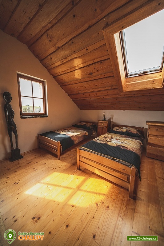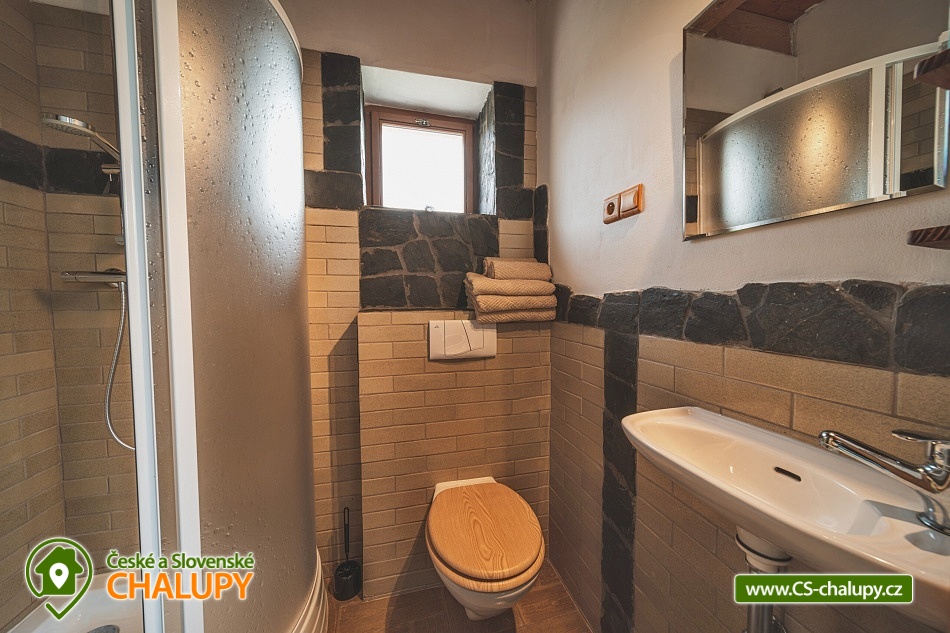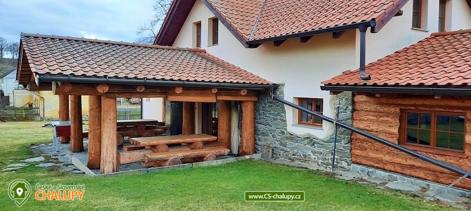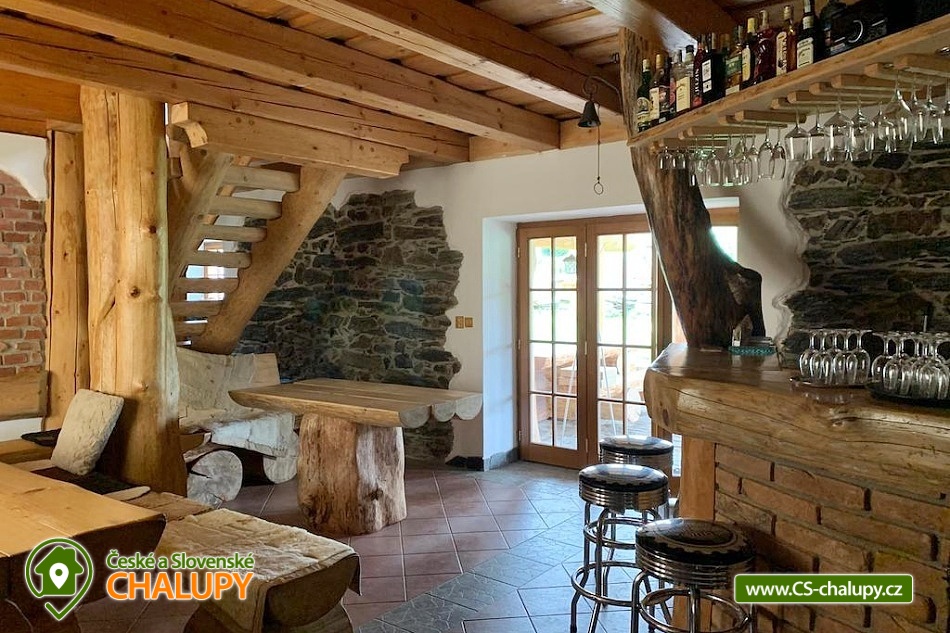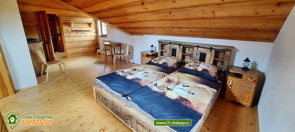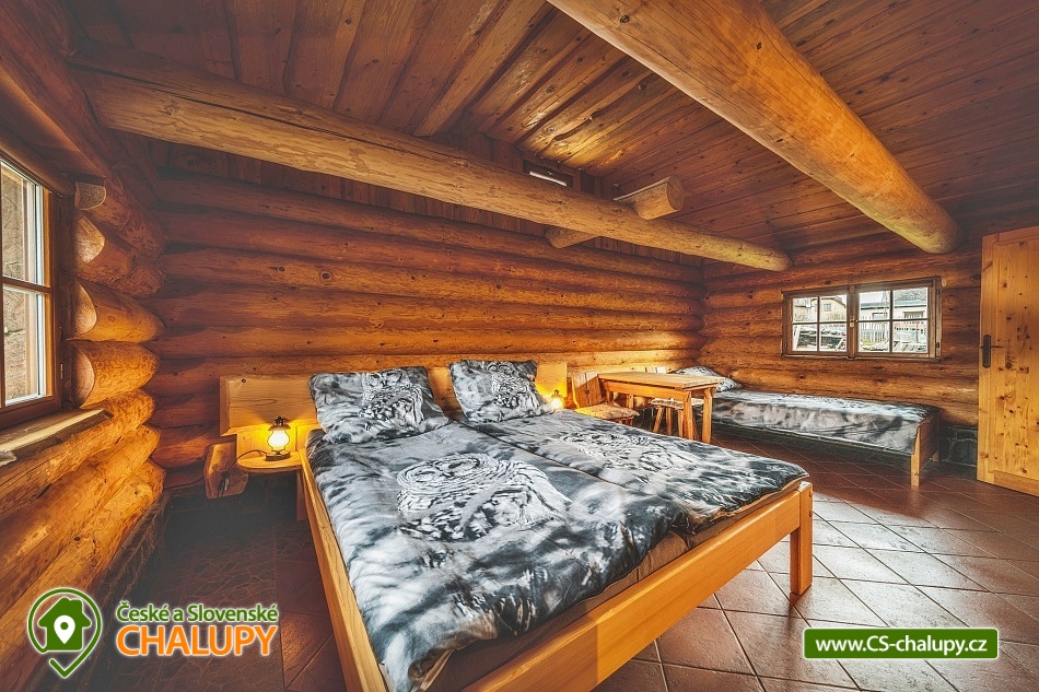 A cozy log cabin by the riding school in a beautiful natural landscape on the border of Manětínsko and Rabštejnsko in the village of Pláně near the town of Plasy. An ideal stay for families with children, friends and small groups. Location in the border area of absolute darkness. The log cabin offers accommodation for up to 14 people in four separately rented rooms. By arrangement, the property can also be rented as a whole. There are 2 triple rooms and 2 quadruple rooms in total. Each room has its own bathroom with a shower and toilet. Bed linen and towels are included. You can rent a cot with a mattress (your own bed linen). You can look forward to a very stylish interior with wood and stone elements. A spacious common room with a fireplace, dining area and bar is available for all guests. The log cabin also includes a fully equipped kitchenette (kettle, hob, fridge and microwave). By arrangement, we can provide keg or bottled beer from Pilsen Prazdroj or quality bottled Moravian wines. WIFI internet access is available throughout the property. There is a covered pergola for outdoor seating. Garden furniture, a fireplace and a grill are available. Pleasant moments can also be spent in the adjacent grassy garden. Next to the property, there is a publicly accessible children's playground on the adjacent land. Parking is available directly at the property. Hiking, cycling, swimming and mushroom picking are possible in the surroundings of the log cabin. There are tennis courts nearby. Swimming options include: Plasy Natural Swimming Pool, Kralovice Sports and Recreation Area, Manětín Swimming Pool, Jesenice Large Pond, Lochotín Pool, Rakovník Aquapark, etc. Excursions in the surrounding area include the city of Baroque sculptures Manětín with its castle, Rabštejn nad Střelou Castle, Plasy - the first Cistercian monastery, ZOO, minigolf and the Museum of Architecture and Brewery, as well as Mariánská Týnice, Chyše Castle and Brewery, Hracholusky Reservoir, Bečov nad Teplou Castle and Chateau or the historical center of Pilsen. We look forward to seeing you there.