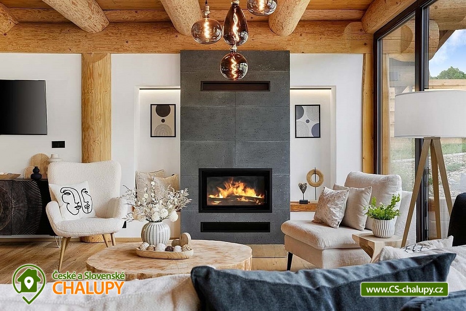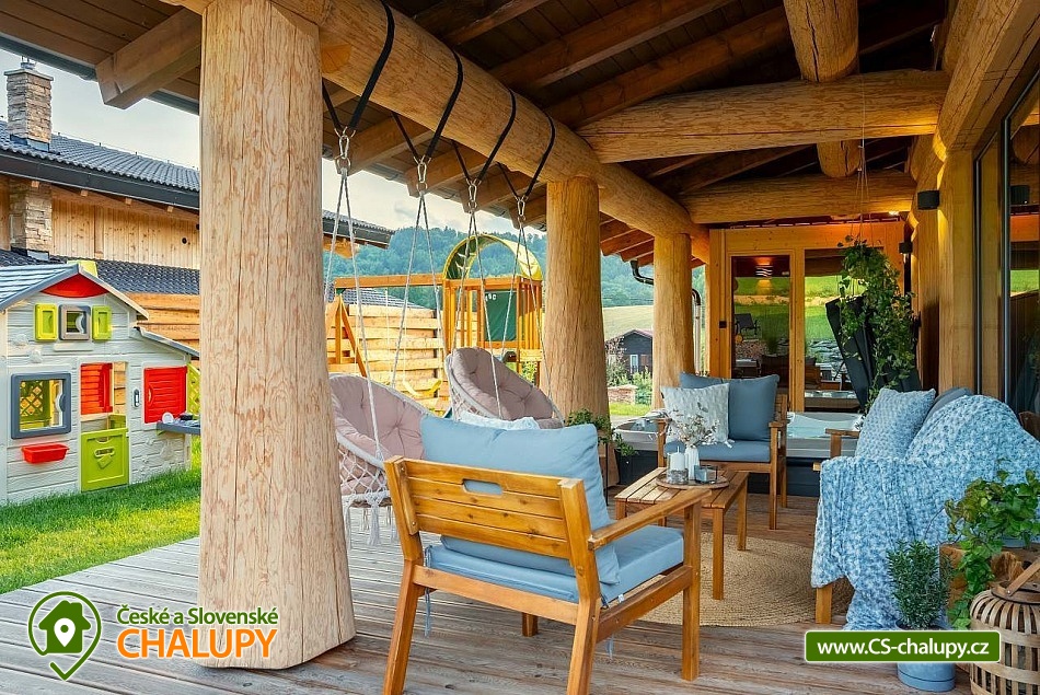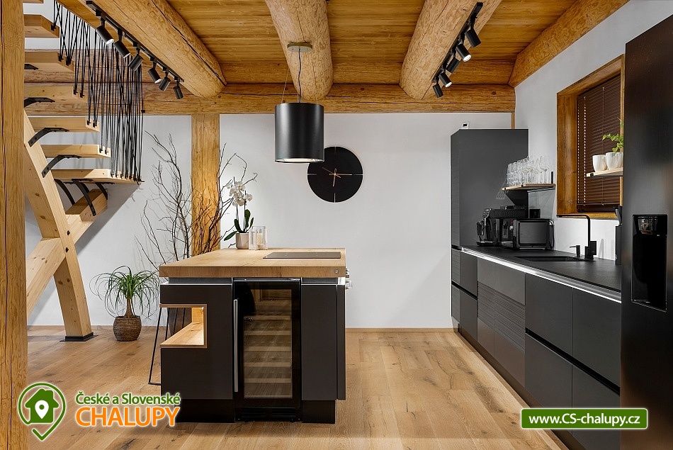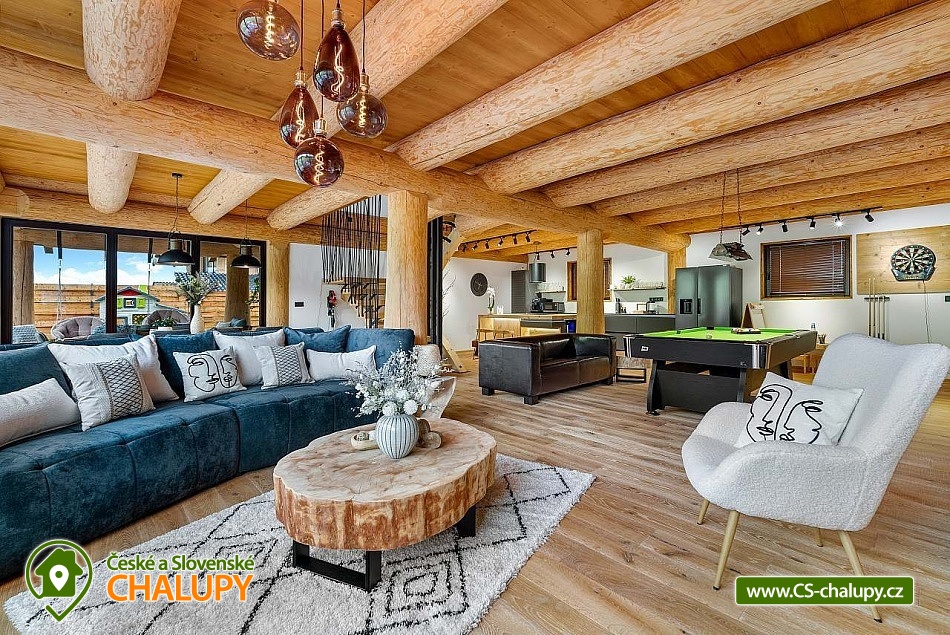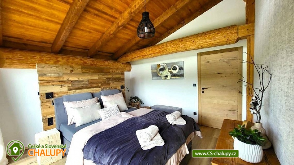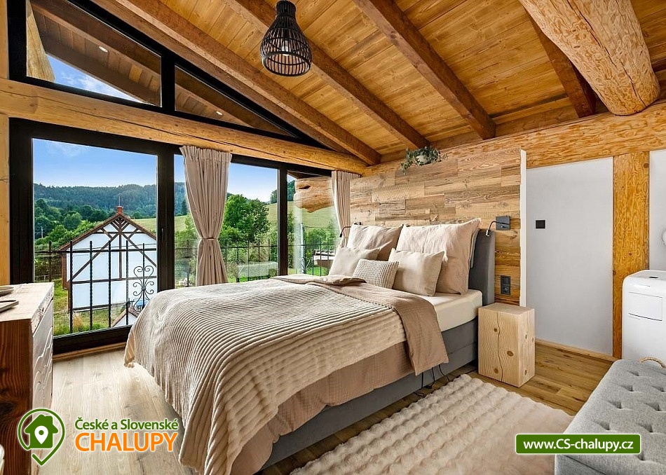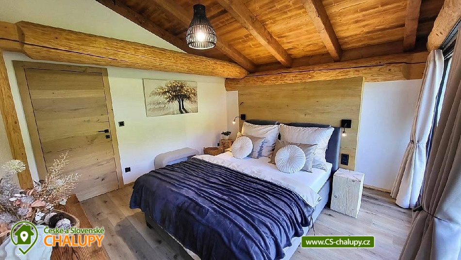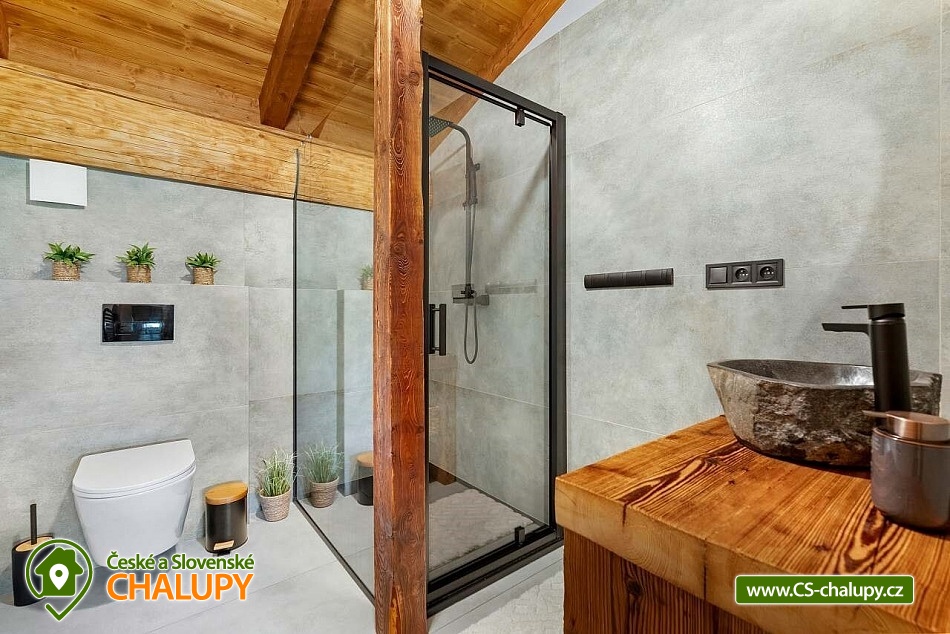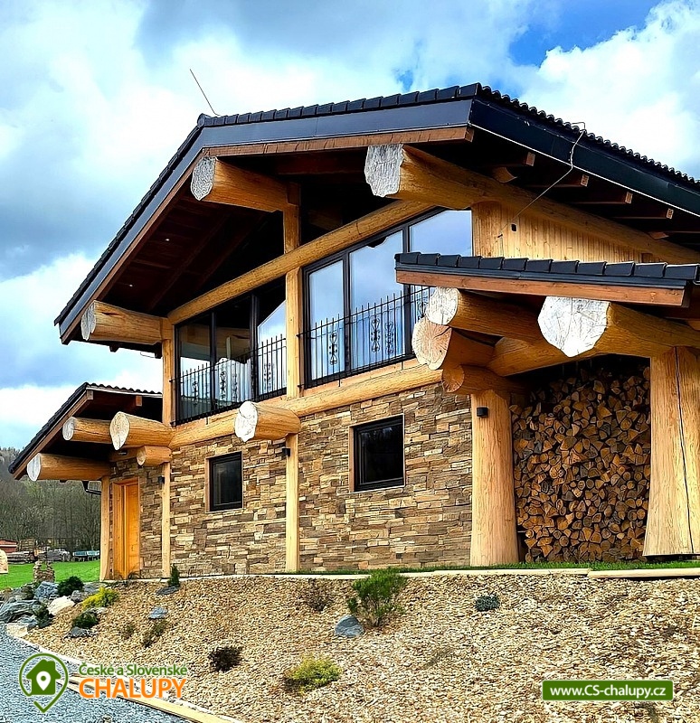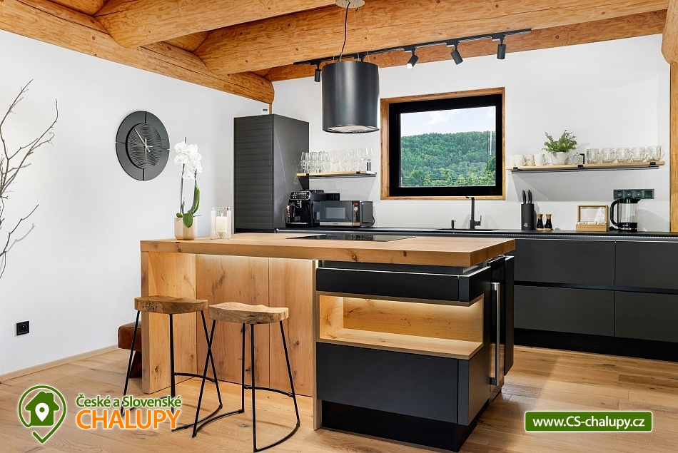 Wellness cabin Velké Losiny - Jeseníky Mountains - Finnish sauna, whirlpool and heated pool. Welcome to the wellness cabin, where the deepest swimming pool SWIM SPA Nautilus XXL for 7 people with countercurrent awaits you. In the beautiful landscape of the Jeseníky Mountains, in the popular destination of Velké Losiny, there is a newly built modern cabin, which is the ideal place for your next relaxing or sporting holiday. Imagine a mountain cabin smelling of wood, cozy, pleasing to the eye of every lover of modern design. Glass panes over two floors invite light and sunlight inside, offering a magical view of the surroundings. The Velké Losiny cabin offers accommodation for up to 10 people in 4 bedrooms. GROUND FLOOR: entrance hall with storage spaces (wardrobe, hangers, shoe rack), utility room for storing sports equipment, main living room with spacious kitchen with island, large dining table and seating for 10 people, two comfortable sofas for pleasant sitting by the fireplace, also a pool table and electronic darts for long winter evenings, so even in case of bad weather you will definitely not be bored with us. Upstairs there are 4 bedrooms, each with a glass gable which offers a magical view of the surroundings, 3 double bedrooms with a double bed, 1 quadruple bedroom. High-quality continental beds, anti-allergic blankets and storage space for your clothes are a matter of course. Upon agreement, we will lend you a cot, a bath tub, a potty. Heating is provided by a modern fireplace in the living room, underfloor heating throughout the building, heating ladders in the bathrooms, an electric ski boot dryer in the technical room. Excellent accessibility by car all year round, parking on the private fenced plot for 4 cars. After a challenging ski trip or a day trip, you will certainly appreciate the possibility of an outdoor Finnish sauna and relaxation in the jacuzzi, both as part of the spacious terrace surrounding the building in the back, with seating and a rocking chair, followed by a large illuminated fireplace with comfortable seating and a built-in grill. A magical place for all those looking for peace, quiet and fresh air. Accommodation suitable for families with children, meetings of friends, couples longing for romance and corporate teambuildings. The surroundings offer excellent skiing and cross-country skiing terrain. In summer, you can use a large number of cycling routes and hiking trails, sports activities and historical monuments. Swimming lovers will find their place in the popular thermal spa - Velké Losiny. Do you want to experience romantic moments, peace and quiet with the scent of wood, gain new energy and relax your mind? Then come to us, we look forward to seeing you.