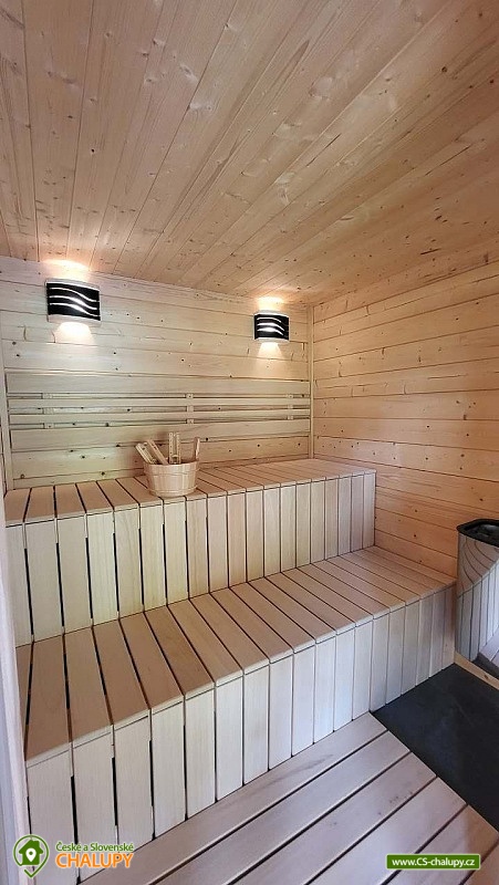„Wellness cabin Velké Losiny - Finnish sauna, jacuzzi and heated pool.“