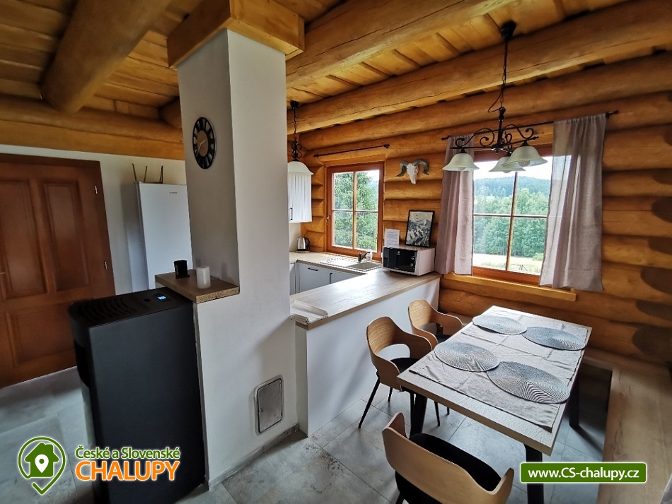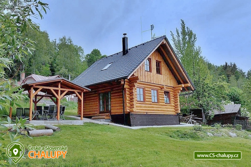 Log cabin Nejdek - accommodation Ore Mountains - Karlovy Vary. A beautiful and brand new log cabin, the preparation of which is in the final stage. The building will be ready for rent from September 2021. We offer you a pleasant stay in our new cabin, which is located just 15 minutes by car from the spa town of Karlovy Vary. The cabin is located at an altitude of 640 m, about halfway between Karlovy Vary and Boží dar / Klínovec. On the ground floor of the cabin you will find a living room combined with a kitchen and a dining room. The sofa offers sleeping for up to 2 people. The living room has a large Smart TV with many programs and HBO GO, Wi-Fi internet is available. The kitchen is fully equipped. The bathroom and utility room can also be found on the ground floor. In the attic there are 2 rooms - the first with a double bed and the second 2 sofa beds (160x200cm). The main source of heat in the living room is a pellet stove with distribution to the attic. This source is also combined with underfloor heating on the ground floor. Pellet bags are ready for you and their consumption depends on the set power. The garden is large (over 2000m2), you will find a terrace, fireplace, barbecue, but also plenty of space for entertainment or sports. Below our garden are undeveloped spaces where deer live, which come to show almost every day. Parking space for several cars is part of the land, but it is not fenced. The nearest supermarket (Penny) is a 10-minute walk or a 2-minute drive away. In the center of Nejdek, of course, you will also find several alternatives to lunch or dinner. The cabin is close to the spa town of Karlovy Vary, which offers a tasting of healthy healing springs, a walk through the colonnade with a warm wafer in hand and amazing views of this spa gem. On the other hand, it is not far to the Ore Mountains. Pernink, Abertamy, Horní Blatná offers incredible hiking trails for both pedestrians and cyclists. Do not hesitate to load your skis in winter. There is a choice of several ski resorts: Pernink, Plešivec, Boží Dar and Klínovec.