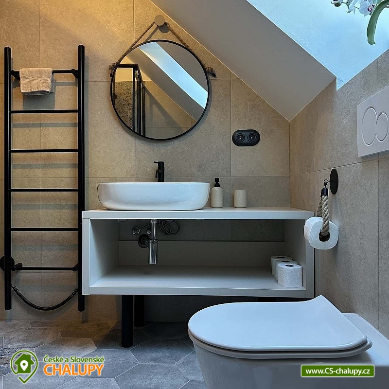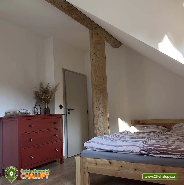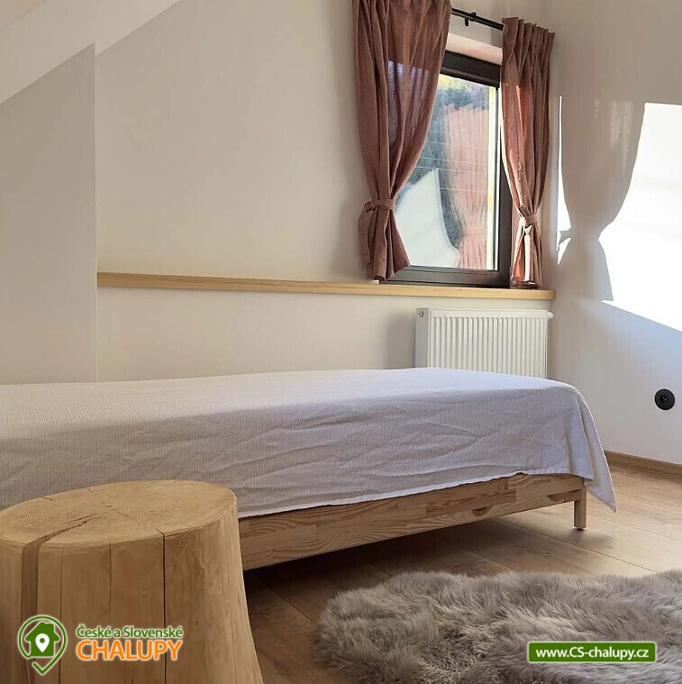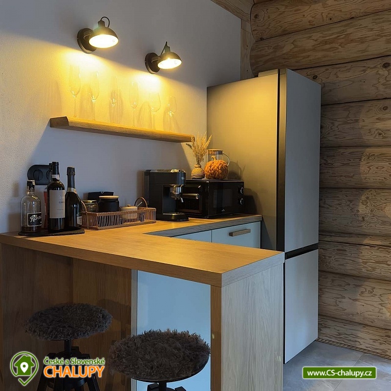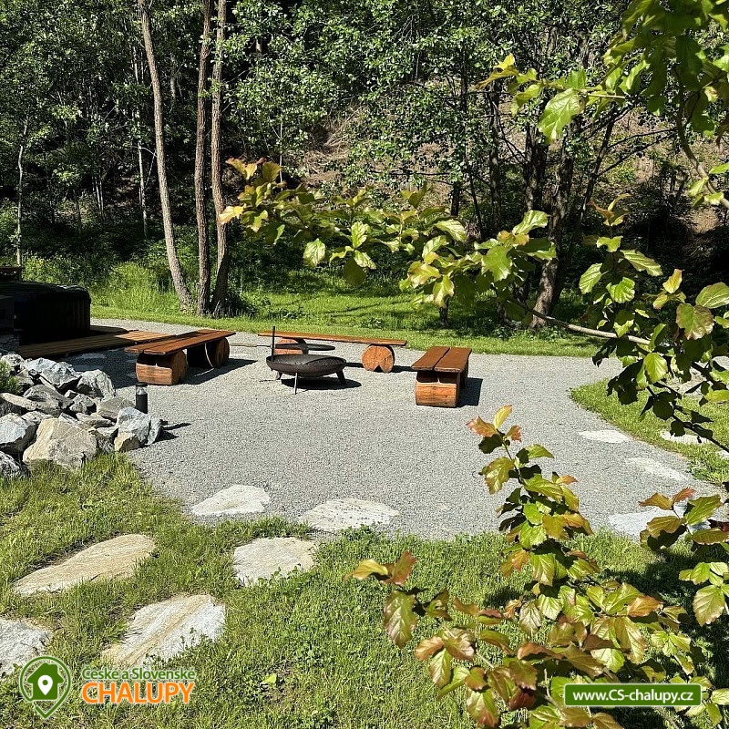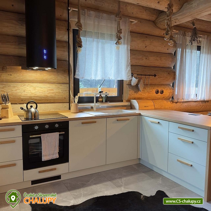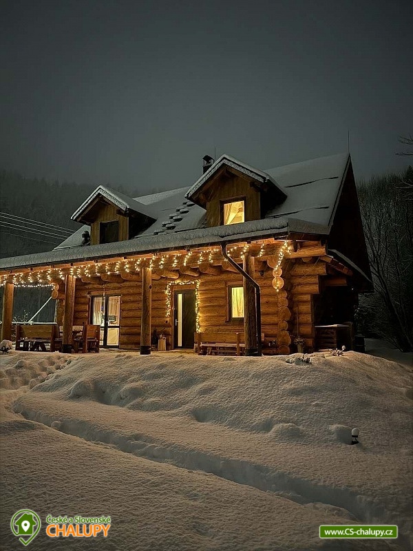 Log cabin with wellness (hot tub, sauna and hot tub) under Kozí hřbet in the foothills of the Jeseníky Mountains. The capacity of the cabin is up to 10 people in 3 bedrooms. Whether you are looking for a relaxing holiday or want to organize a celebration or a small family gathering, our log cabin will offer you facilities exactly according to your wishes. Its location makes it an ideal place for well-deserved rest, cycling trips, hiking, cross-country skiing or skiing. The log cabin provides accommodation for 10 people in 3 bedrooms: a four-bed bedroom (1x bunk bed, 1x double bed), a four-bed bedroom (1x double bed, 2x extra beds in the form of a pull-out bed) and a double bedroom (1x double bed). A cot is also available. There is also a fully equipped kitchenette (electric oven, induction hob, microwave, kettle, fridge, coffee maker, dishwasher and dishes), which is connected to the living room with a sofa, large dining table, fireplace and children's corner with toys. The sanitary facilities include a bathroom with a free-standing bathtub, spacious shower, sink and washing machine, as well as a separate toilet with a urinal on the ground floor. There is a second bathroom with a shower and toilet in the attic. The cabin is heated by underfloor heating and a fireplace. The property offers free WI-FI internet access. The cabin is surrounded by a garden with parking directly at the property (max. 5 cars). The garden includes an outdoor sauna for 6 people, a cooling barrel for 2 people, a covered terrace with seating, a fireplace, a grill and a hammock. During the summer season, a hot tub for 6 people is available. In the vicinity of the cabin there are opportunities for hiking, cycling, swimming, skiing, cross-country skiing, fishing and mushroom picking. Swimming options include: Žulová quarry, Vápenná quarry or Losiny thermal baths. In winter, nearby ski resorts are an advantage, for example: X-Park Františkov ski area, Lázeňský vrch ski area, Přemyslov ski area or Kareš ski area. Trips in the surrounding area include: Čertovy kameny, the lookout tower on Medvědí hora, Adrenalin Park Jeseníky, the Vincenz Priessnitz Trail and the Kamenné okno rock formation. We look forward to seeing you.