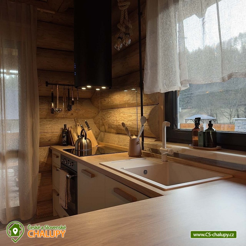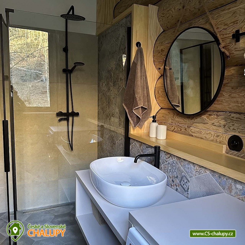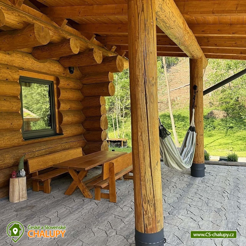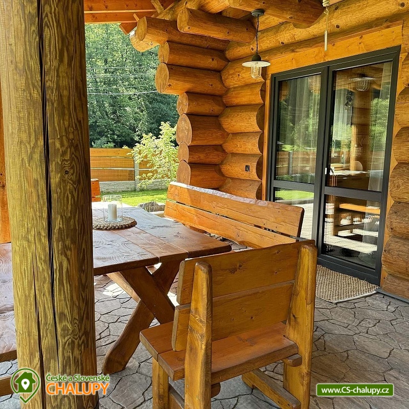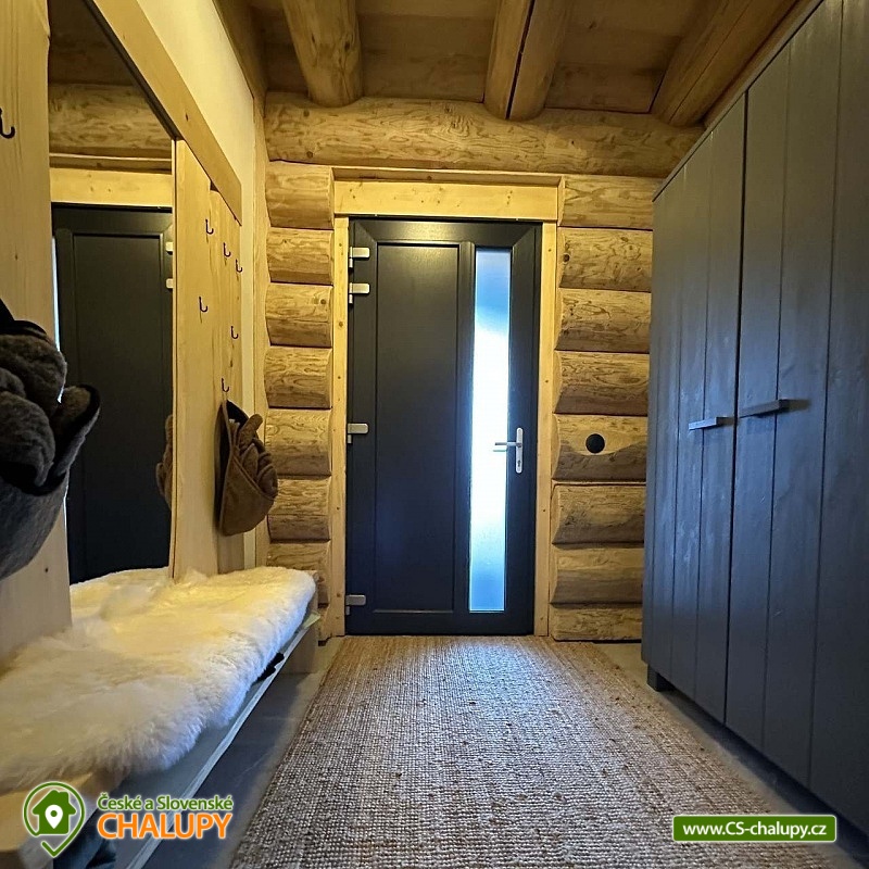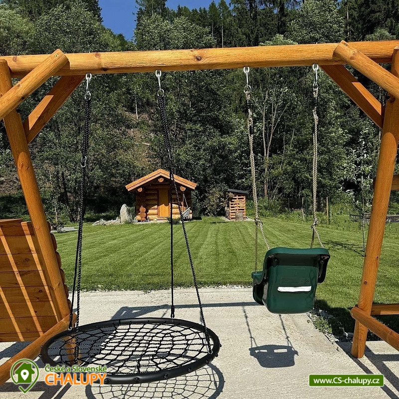 Log cabin with wellness (hot tub, sauna and hot tub) under Kozí hřbet in the foothills of the Jeseníky Mountains. The capacity of the cabin is up to 10 people in 3 bedrooms. Whether you are looking for a relaxing holiday or want to organize a celebration or a small family gathering, our log cabin will offer you facilities exactly according to your wishes. Its location makes it an ideal place for well-deserved rest, cycling trips, hiking, cross-country skiing or skiing. The log cabin provides accommodation for 10 people in 3 bedrooms: a four-bed bedroom (1x bunk bed, 1x double bed), a four-bed bedroom (1x double bed, 2x extra beds in the form of a pull-out bed) and a double bedroom (1x double bed). A cot is also available. There is also a fully equipped kitchenette (electric oven, induction hob, microwave, kettle, fridge, coffee maker, dishwasher and dishes), which is connected to the living room with a sofa, large dining table, fireplace and children's corner with toys. The sanitary facilities include a bathroom with a free-standing bathtub, spacious shower, sink and washing machine, as well as a separate toilet with a urinal on the ground floor. There is a second bathroom with a shower and toilet in the attic. The cabin is heated by underfloor heating and a fireplace. The property offers free WI-FI internet access. The cabin is surrounded by a garden with parking directly at the property (max. 5 cars). The garden includes an outdoor sauna for 6 people, a cooling barrel for 2 people, a covered terrace with seating, a fireplace, a grill and a hammock. During the summer season, a hot tub for 6 people is available. In the vicinity of the cabin there are opportunities for hiking, cycling, swimming, skiing, cross-country skiing, fishing and mushroom picking. Swimming options include: Žulová quarry, Vápenná quarry or Losiny thermal baths. In winter, nearby ski resorts are an advantage, for example: X-Park Františkov ski area, Lázeňský vrch ski area, Přemyslov ski area or Kareš ski area. Trips in the surrounding area include: Čertovy kameny, the lookout tower on Medvědí hora, Adrenalin Park Jeseníky, the Vincenz Priessnitz Trail and the Kamenné okno rock formation. We look forward to seeing you.