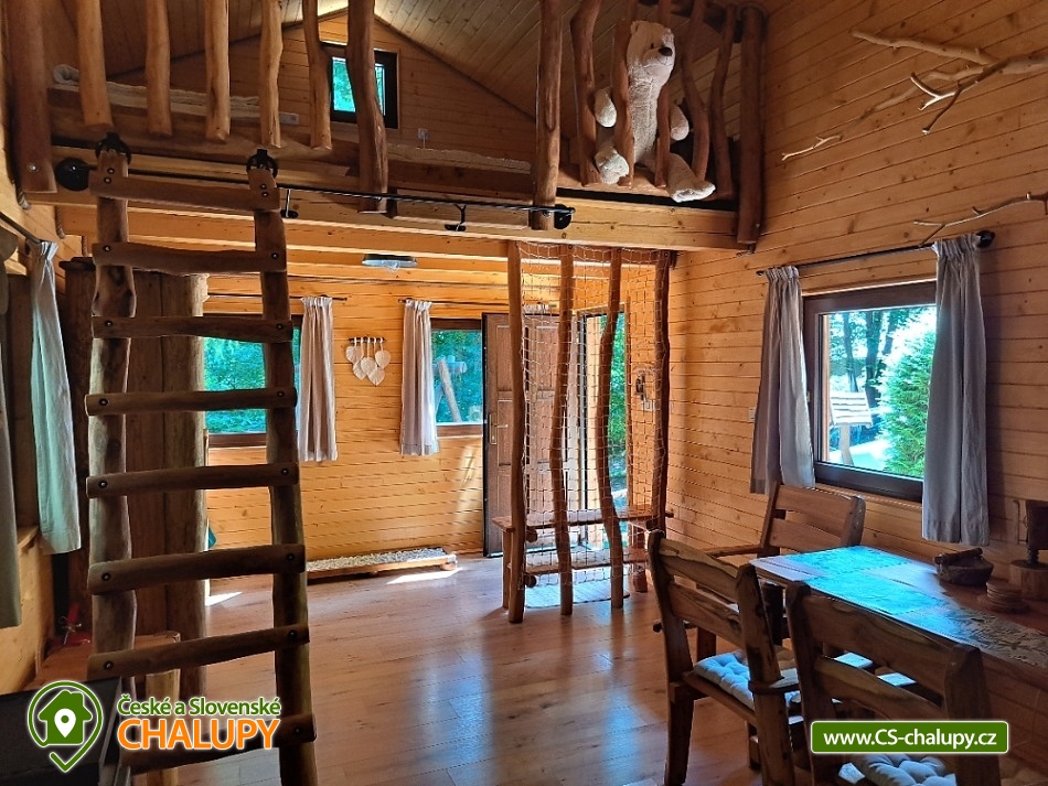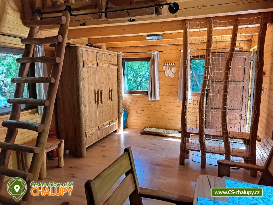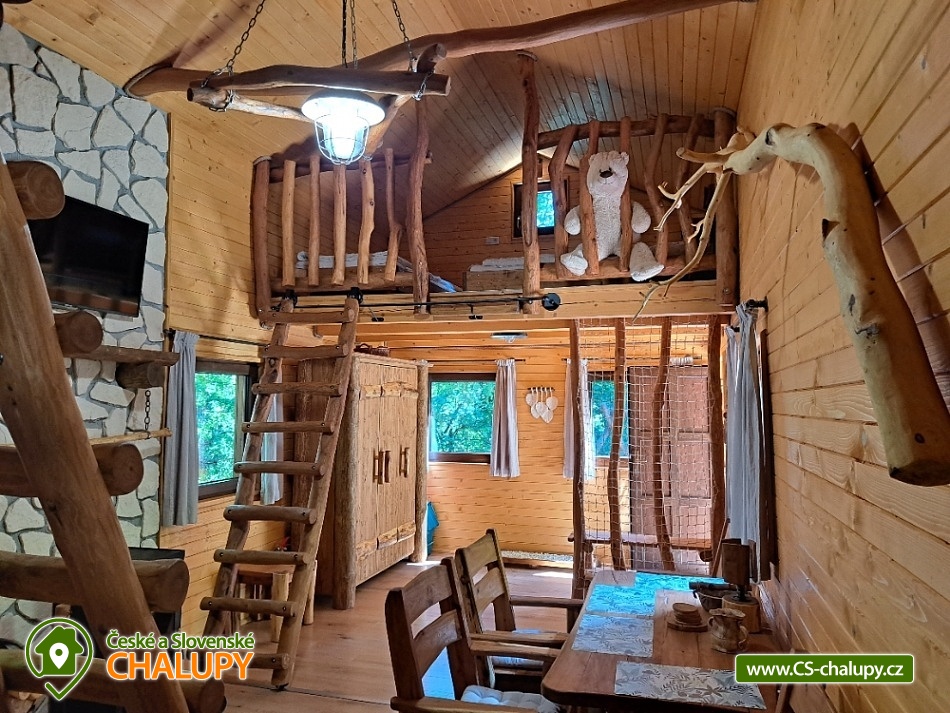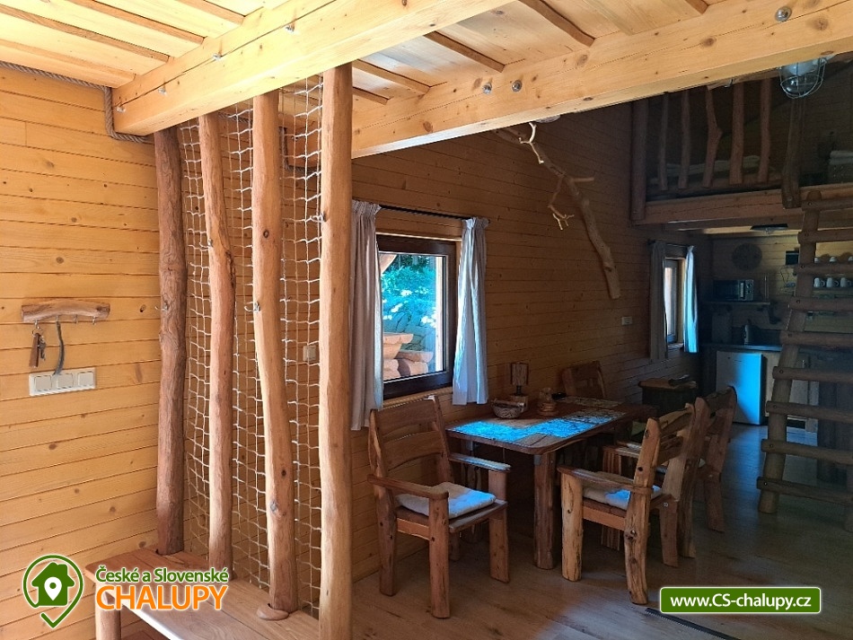 Srubová chata u přehrady Vranov - Stříbrná zátoka. Rádi Vám nabídneme luxusní chatu vonící dřevem, navrhnutou v přírodním stylu s interiérem v kombinaci smrkového a akátového dřeva a s ručně vyráběným nábytkem. Prožijte Vaši rodinnou dovolenou s dětmi nebo přáteli na břehu přehrady obklopenou krásnou přírodou a možností odpočinku, relaxace a sportovního vyžití. U chaty je postavena srubová pergola s posezením a s velkým zahradním krbem, kde můžete trávit den ve stínu a večery při vychlazené Plzni nebo s dobrým vínem. Stříbrná zátoka má po celé léto čistou vodu ke koupání a k rybolovu. Do zátoky pramení potok, kde je také studánka s pitnou vodou. Chata k pronájmu poskytuje ubytování pro 1 až 6 osob ve 2 ložnicích. Spaní v chatě bylo navrženou tak, aby bylo vzdušné a poskytovalo i odpočinkovou zónu. Každá strana chaty má na mansardě manželskou postel a 1x lůžko pro jednu osobu. Kuchyň je plně vybavena nádobím, indukční plotýnkou, lednice s mrazákem celkem (90L), mikrovlnná trouba, sendvičovač, rychlovarná konvice. Dále k dispozici Televize LCD, rádio a internetové připojení Wi-Fi. Koupelna je vybavena sprchovým boxem, umyvadlem, studenou a teplou vodou, kterou ohřívá el. boiler. Splachovací WC s originálním nábytkem a vybavením z akátového dřeva. V chladnějším počasí lze přitopit krbovými kamny. Příjezdová cesta je po polní a lesní cestě s příjezdem až k chatě, která slouží pouze pro vyložení nebo naložení věcí k rekreaci. Poté je nutné auto přeparkovat na parkoviště vzdálené od chaty cca 100m. V případě nepříznivého počasí (vytrvalého deště) je příjezd k chatě zakázán z důvodu uvíznutí nebo zablokování cesty místním chatařům. U chaty jsou dvě parkovací místa. V okolí Vranovské přehrady se nachází spousta turistických cílů jako je hlavní písčitá pláž se všemi atrakcemi. Výlety do okolí: Zámek Vranov nad Dyjí, Hrad Bítov s malou ZOO a pivovarem, Zřícenina hradu Cornštejn s rytířskými turnaji a ohňostrojem, Muzeum motocyklů Lesná, Národní park Podyjí, Vranovská pláž s množstvím restaurací a sportovního vyžití. Hardeggská vyhlídka do údolí Dyje s návštěvou hradu Hardegg, Vinné sklepy po obou stranách česko - rakouské hranice a Lodní doprava s možností využití speciální plavby s ochutnávkou vín a sýrů. Těšíme se na Vás u nás.