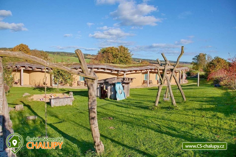 Stylové sruby a apartmány v malebné přírodě Orlického Podhůří a hradu Potštejn nedaleko měst Ústí nad Orlicí a Letohrad. Kapacita areálu je 57 osob v samostatně pronajímaných apartmánech, srubech a ložnicích. Celkem je k dispozici 8x apartmán pro 3 až 5 osob, 4x menší srub pro 2 až 3 osoby a 2x ložnice (Sluneční a Břízová) pro 15 a 5 osob. Těšit se můžete na originální architekturu odrážející tvary okolní krajiny a příjemný design, kterému dominuje masivní dřevo. Všechny sruby mají také střešní světlík, který přes den prosvětluje celou místnost a večer vám poskytne výhled na hvězdy. Každý apartmán a srub má vlastní vlastní sociální zařízení (sprchový kout, WC, umyvadlo a zrcadlo, elektrický žebřík) a plně vybavený kuchyňský kout (sklokeramická varná deska, mikrovlnná trouba, varná konvice, lednice s minibarem, základní kuchyňské nádobí a vybavení na vaření). Podkrovní ložnice Sluneční a Břízová jsou vhodné pro rodinné pobyty a mají společné dvě velké koupelny, kuchyňku a zastřešené venkovní posezení. Po domluvě možnost pobytu se snídaní s donáškou až do postele. K zapůjčení je dětská postýlka, dětská jídelní židlička, vanička a nočník. V celém areálu je k dispozici WIFI připojení na internet. Apartmány i sruby jsou vytápěny centrálně. Ve společenských prostorách jsou také krbová kamna. Pro všechny ubytované je dispozici rozlehlý areál ve stylu permakulturní zahrady. Využívat lze přístřešek s výčepem a grilem sousedícím se společenskou místností (Duběnka) a jurtu s kávovarem a dětským koutkem s nabídkou nanuků. K dispozici jsou také turistické mapy a informační materiály. Ke grilování je možné si zdarma zapůjčit grilovací sadu a zakoupit si zde dřevěné uhlí. Po celé travnaté zahradě je rozmístěno několik dětských hřišť. Velké hřiště s dřevěnými prvky, houpačkami, prolézačkami a pískovištěm se nachází přímo nad apartmány. Součástí areálu je uzamykatelná kolárna pro úschovu kol a kočárků. Parkovat lze přímo u areálu s objekty. V okolí areálu možnost turistiky, cykloturistiky, koupání, lyžování, běžkování a houbaření. V blízkosti jsou tenisové kurty a jízdárna. Mezi možnosti koupání patří např.: Aquapark Ústí nad Orlicí, Bazén Ústí nad Orlicí, Koupaliště Brandýs nad Orlicí, Koupaliště Písečná, Koupaliště Letohrad, Aquapark Žamberk atd. K dispozici jsou blízká lyžařská střediska: Na Dlouhých Honech - Dlouhoňovice, Přívrat, Kunčice u Letohradu - Umbule a další. K výletům v okolí láká Zámek Letohrad, Zřícenina hradu Kyšperk, Zámek a Hrad Potštejn, Muzeum krajky Vamberk, Rozhledna Andrlův Chlum, Přírodní bludiště Brandýs nad Orlicí nebo Zámek Litomyšl. Těšíme se na Vás u nás.