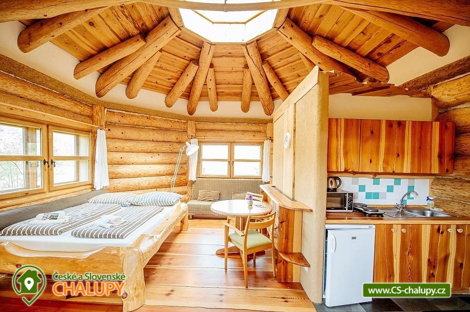 Stylové sruby a apartmány v malebné přírodě Orlického Podhůří, poloha nedaleko Ústí nad Orlicí, Letohradu a hradu Potštejn. Kapacita ubytování je až 57 osob v samostatně pronajímaných srubech a apartmánech. Celkem je k dispozici 8x apartmán pro 3 až 5 osob, 4x menší srub pro 2 až 3 osoby a 2x ložnice (Sluneční a Břízová) pro 15 a 5 osob. Těšit se můžete na originální architekturu odrážející tvary okolní krajiny a příjemný design, kterému dominuje masivní dřevo. Všechny sruby mají také střešní světlík, který přes den prosvětluje celou místnost a večer vám poskytne výhled na hvězdy. Každý apartmán a srub má vlastní vlastní sociální zařízení (sprchový kout, WC, umyvadlo a zrcadlo, elektrický žebřík) a plně vybavený kuchyňský kout (sklokeramická varná deska, mikrovlnná trouba, varná konvice, lednice s minibarem, základní kuchyňské nádobí a vybavení na vaření). Podkrovní ložnice Sluneční a Břízová jsou vhodné pro rodinné pobyty a mají společné dvě velké koupelny, kuchyňku a zastřešené venkovní posezení. Po domluvě možnost pobytu se snídaní s donáškou až do postele. K zapůjčení je dětská postýlka, dětská jídelní židlička, vanička a nočník. V celém areálu je k dispozici WIFI připojení na internet. Apartmány i sruby jsou vytápěny centrálně. Ve společenských prostorách jsou také krbová kamna. Pro všechny ubytované je dispozici rozlehlý areál ve stylu permakulturní zahrady. Využívat lze přístřešek s výčepem a grilem sousedícím se společenskou místností (Duběnka) a jurtu s kávovarem a dětským koutkem s nabídkou nanuků. K dispozici jsou také turistické mapy a informační materiály. Ke grilování je možné si zdarma zapůjčit grilovací sadu a zakoupit si zde dřevěné uhlí. Po celé travnaté zahradě je rozmístěno několik dětských hřišť. Velké hřiště s dřevěnými prvky, houpačkami, prolézačkami a pískovištěm se nachází přímo nad apartmány. Součástí areálu je uzamykatelná kolárna pro úschovu kol a kočárků. Parkovat lze přímo u areálu s objekty. V okolí areálu možnost turistiky, cykloturistiky, koupání, lyžování, běžkování a houbaření. V blízkosti jsou tenisové kurty a jízdárna. Mezi možnosti koupání patří např.: Aquapark Ústí nad Orlicí, Bazén Ústí nad Orlicí, Koupaliště Brandýs nad Orlicí, Koupaliště Písečná, Koupaliště Letohrad, Aquapark Žamberk atd. K dispozici jsou blízká lyžařská střediska: Na Dlouhých Honech - Dlouhoňovice, Přívrat, Kunčice u Letohradu - Umbule a další. K výletům v okolí láká Zámek Letohrad, Zřícenina hradu Kyšperk, Zámek a Hrad Potštejn, Muzeum krajky Vamberk, Rozhledna Andrlův Chlum, Přírodní bludiště Brandýs nad Orlicí nebo Zámek Litomyšl. Těšíme se na Vás u nás.