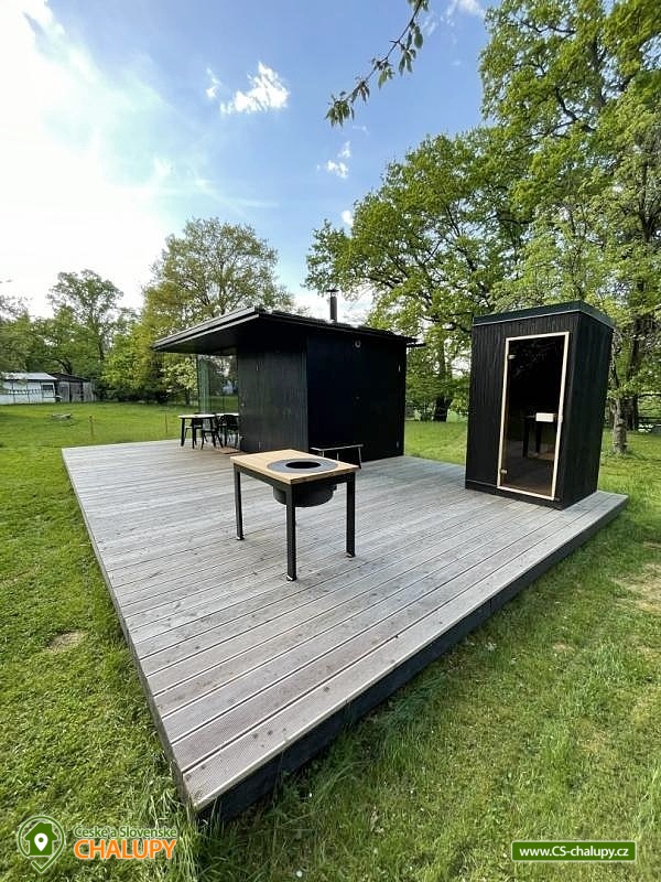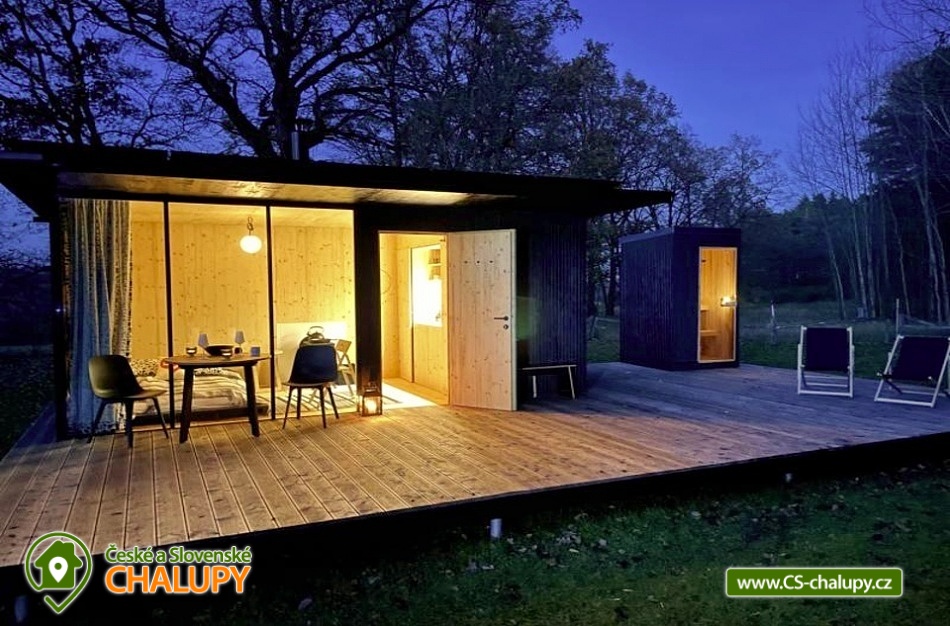 Středočeský glamping se saunou - poloha nedaleko Sedlčan a Suchdola. Tiny house pro 2 osoby s venkovní saunou pro milovníky přírody, klidu a soukromí. Netradiční minimalistický domek nacházející se pod lesní strání kopce Sychrov pár kilometrů od středočeských Sedlčan. Kousek od domku se lze projít k zatopenému lomu s přírodním koupáním. Glamping poskytuje veškerý komfort moderního ubytování, přesto je naprosto šetrný k přírodě. Domek sice není připojen na žádné inženýrské sítě, ale díky solárním panelům a bioplynové stanici je energeticky soběstačný. V tomto celoročně obyvatelném tiny house inspirovaném japonským stylem se pohodlně ubytují 2 osoby. Spaní je připraveno na pohodlných futonových matracích. Domek tvoří obývací ložnice, které dominují velká okna skýtající krásný výhled na louku a do lesa. Dále je k dispozici kuchyňská část (rychlovarná konvice, lednice, topinkovač, kuchyňské náčiní i přichystané koření, dochucovadla, káva nebo čaj). Nechybí dostatek úložných prostor a hudbu vám přehraje přenosný reproduktor. Teplo vám zajistí krbová kamínka. Dřevo do kamen je započtené v ceně ubytování. Součástí domku je koupelna (sprcha, umyvadlo, WC). Ohřev vody v kuchyňce i ve sprše společně s bojlerem zajišťuje bioplynová stanice, ta z odpadů na wc, které je v tiny house umístěné, generuje plyn a tímto je ohřívána voda v průběhu chladných měsíců. Relaxovat můžete v sauně s výhledem do okolních lesů. Odpočívat lze také na terase, kterou obklopuje slunná zahrada s ovocnými stromy, poskytující stín i prostor pro hry. Po louce kolem vás budou pobíhat ovce a kozy sousedního farmáře, které po domluvě můžete také krmit. Během pobytu můžete využít speciálního stolu z lávového kamene, který ve svém středu ohřívá a griluje cokoliv si přivezete. Pokud se budete chtít osvěžit, ve sklípku naleznete výběr exkluzivních Italských vín a prosecca. Parkovat lze přímo u objektu. Přesnou adresa objektu předáváme klientům před příjezdem. Okolí - Doporučujeme výlet k vodní nádrži Slapy. Těšíme se na Vás u nás.