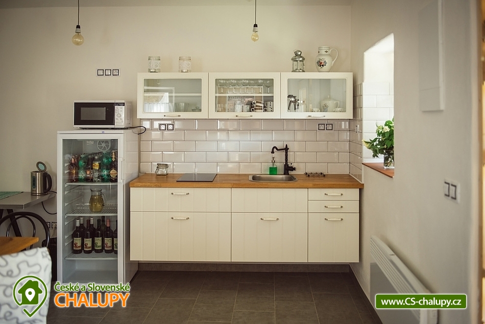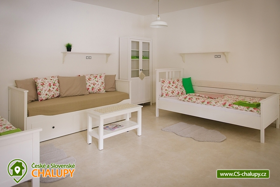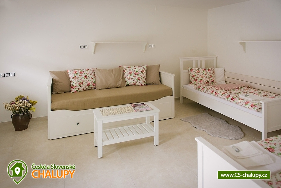 Stylová chalupa - Přijeďte si odpočinout mezi vinohrady do nejstylovějšího ubytování v soukromí v srdci jižní Moravy. Poloha chalupy u cyklostezek - Modré hory, Krajem André a Moravskou vinnou cyklostezkou. Chalupa k pronajmutí má kapacitu až 9 osob. K dispozici budete mít privátní sklep ručně vykopaný v pískovci, kde se budete moci zchladit a vychutnat si naše vína v soukromí. U nás na dvorku si budete připadat jak v jiném světě a do lesa můžete vyrazit přímo ze zahrady. pronajímáme buď celou chalupu nebo si vyberte jeden ze tří pokojů, každý má svou koupelnu a WC. Všechny vás nadchnou jednoduchým, ale funkčním zařízením. Dominantní barvou všech je bílá, kterou doplňuje krémová podlaha a květinové polštáře a přehozy. V žádném pokoji nejsou manželské postele, všude jednolůžkové, které doplňují rozkládací pohovky. Hostům slouží i společenská místnost, ve které najdete vybavený kuchyňský kout a posezení pro 9 lidí. Celá místnost je stylově osvětlená žárovkami. Pro zpříjemnění chladných večerů jsou zde i krbová kamna. V blízkosti chalupy najdete lyžařský svah a koupaliště. Za vyzkoušení určitě stojí letecký simulátor ve vinném sklepě. A pokud budete chtít vyrazit jen na krátkou procházku, zamiřte na vycházkový chodník Němčičky či vyhlídku U Větřáka. Delší výlet budete mít, když vyrazíte na jednu ze čtyř rozhleden z okolí, či do některého z vinařství v oblasti. Na velký výlet pak zajeďte do Mikulova, do Klentnice nebo do Lednicko-Valtického areálu. Zaparkovat můžete na vjezdu. Kouření je povoleno na dvorku. Pobyt se zvířaty není povolen. Wifi zdarma v celém objektu. Těšíme se na Vaší návštěvu.