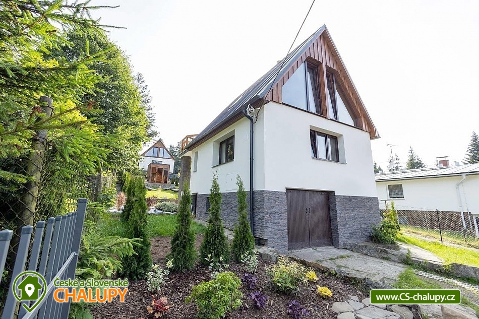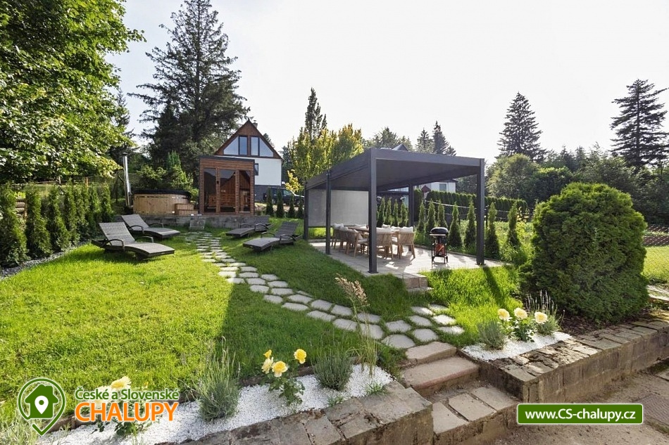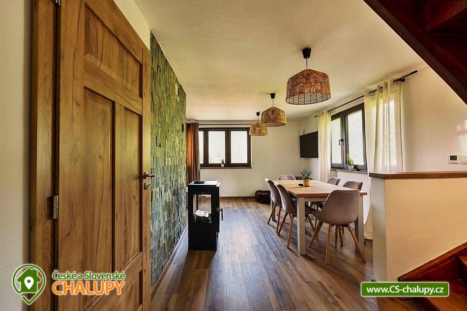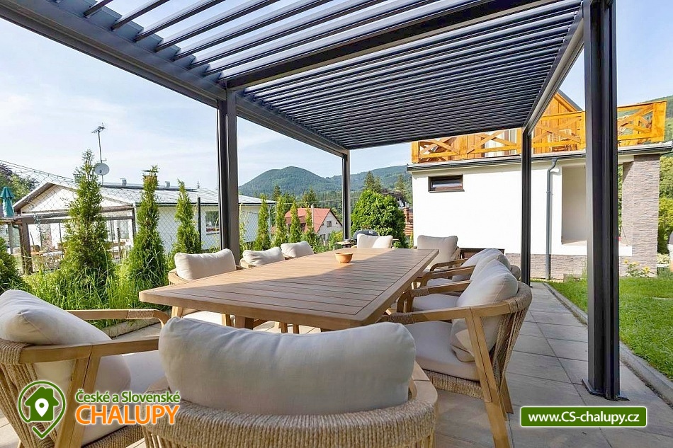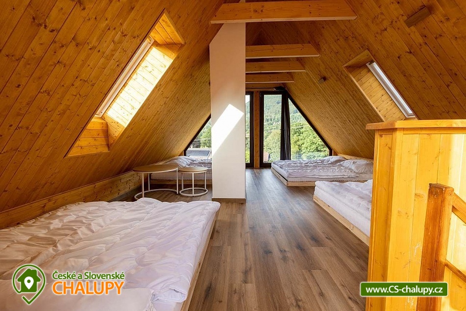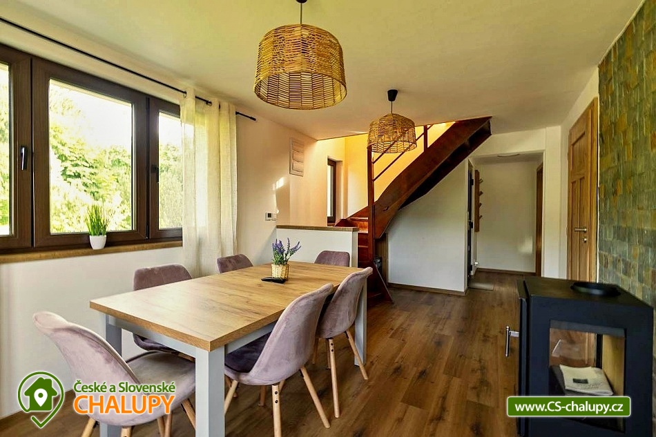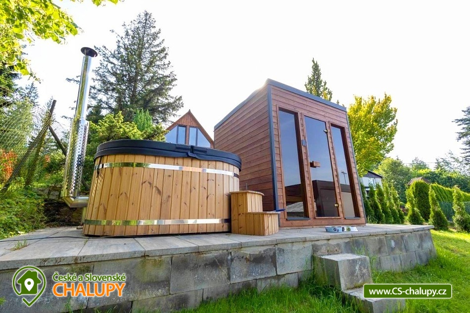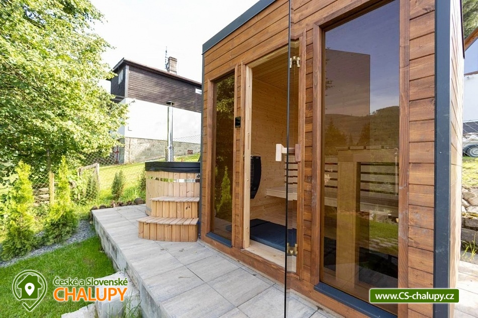 The stylishly furnished wellness cottage under Bučacím is located in the picturesque village of Ostravice, which lies in the very heart of the Moravian-Silesian Beskydy Mountains. The surrounding landscape is ideal for lovers of nature, tourism and active recreation. The cottage is located in close proximity to the 3M-284 object. You can look forward to relaxing in the outdoor jacuzzi or sauna. The cottage offers accommodation for 8 people (4x double bed) in one large attic bedroom with a balcony. On the ground floor you will find a spacious common room equipped with a comfortable couch, coffee table, Smart O2 TV and fireplace, which loosely connects to the dining area. In another separate room you will find a fully equipped kitchen (hob, oven, refrigerator, freezer, microwave, kettle, coffee maker, dishwasher and dishes). The sanitary facilities include a bathroom with a walk-in shower, sink and toilet. Heating is provided by underfloor heating (possibly with the possibility of using an indoor fireplace). There is free WiFi internet access throughout the property. The cottage is surrounded by a fenced garden with a grassy area. You can spend your free time in the pergola equipped with garden furniture and a barbecue. There is an outdoor sauna and a hot tub. You can relax on the garden loungers. Parking is available directly at the property (max. 3 cars). In the vicinity of the cottage, there is the possibility of hiking, cycling, swimming, mushroom picking, fishing, skiing and cross-country skiing. Swimming options include, for example: Ostravice - Sepetná swimming pool, Frýdlant nad Ostravicí swimming pool, Frenštát pod Radhoštěm swimming pool, Baška dam, Frenštát pod Radhoštěm aquapark, Horní Bečva dam, Bečva biotope swimming pool, Olešná dam or Frýdek Místek - Olešná aquapark. Fishing is possible in the nearby Baška reservoir. Nearby ski resorts include, for example: Malenovice - P.O.M.A. – Hutě, Malenovice, Opálená, SKI Park Gruň, Zlatník - Fela, Biocel Zlatník, Kocianka, TJ Radegast, Visalaje, Pustevny. The surrounding area attracts visitors with its: PLA Beskydy, Lysá hora, Pustevny, Radhošť, open-air museum Rožnov pod Radhoštěm, Hukvaldy castle, Štramberská Trůba, paragliding on Ondřejník, Frýdek - Místek chateau, golf courses - Ostravice, Čeladná, etc. We look forward to seeing you there.